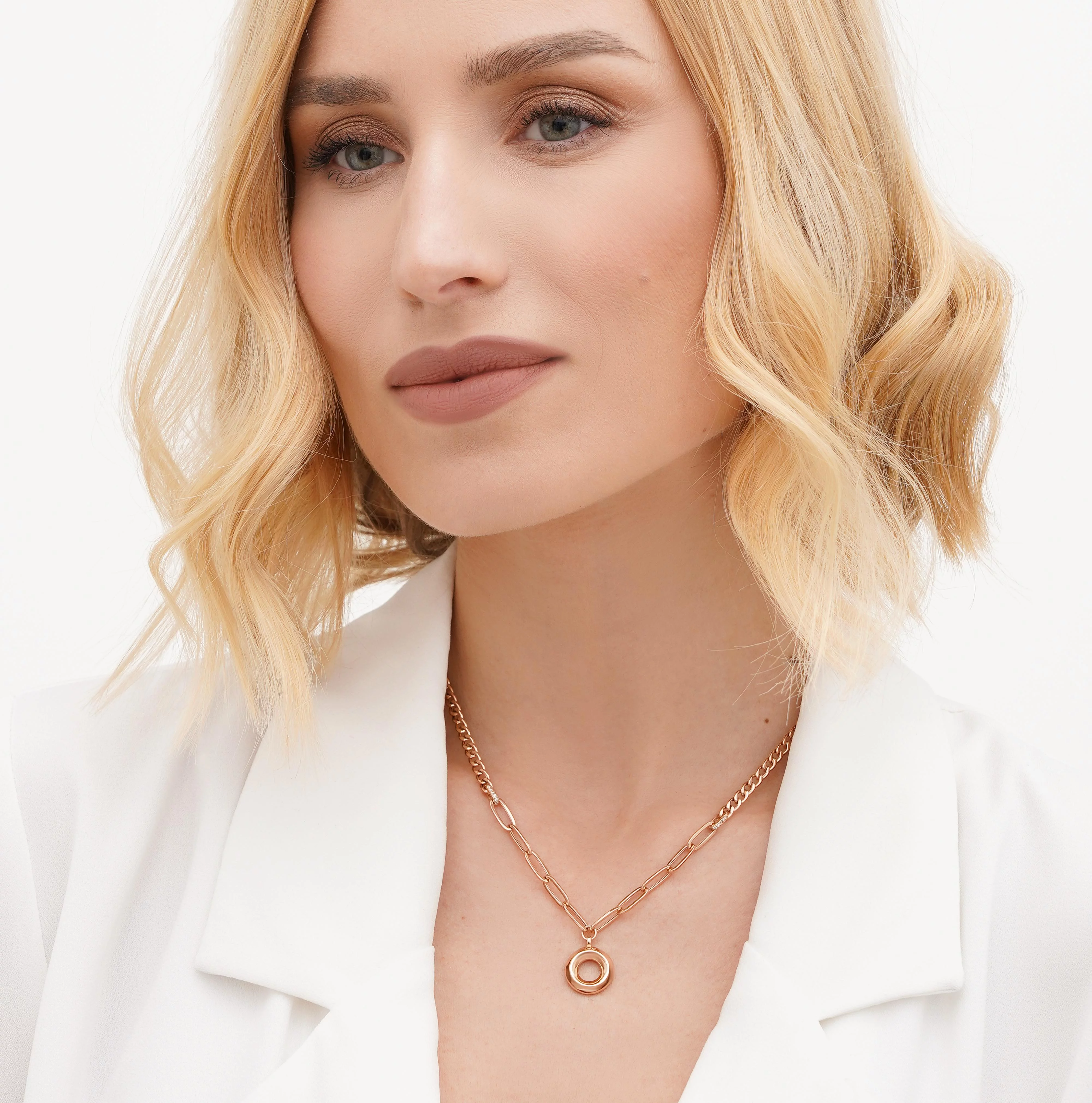 Стильний ланцюжок з підвісом "Конюшина" у червоному золоті та якірним плетінням - 1941303