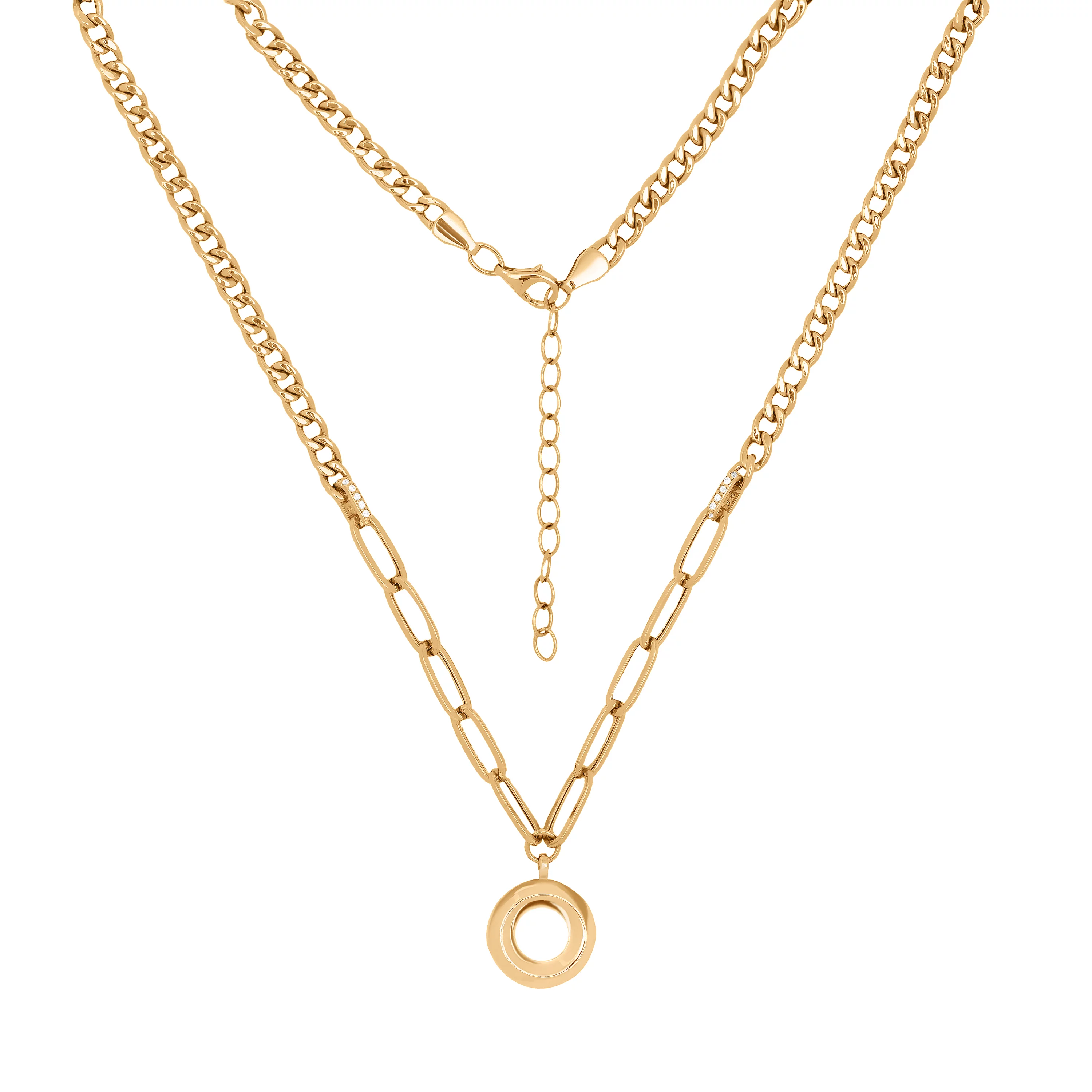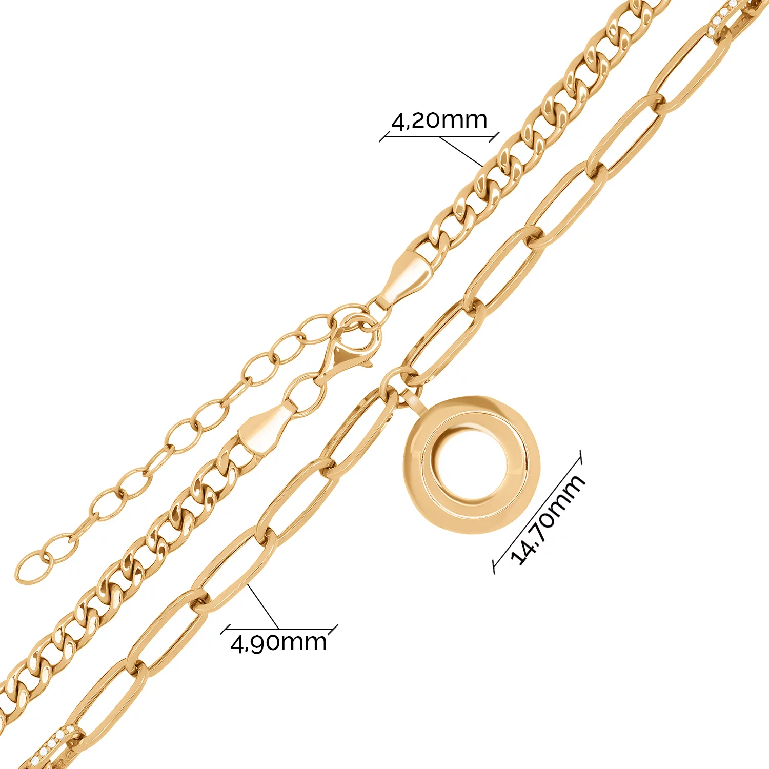 Ланцюжок з підвісом з жовтого золота з фіанітом якірне плетіння - 1688581