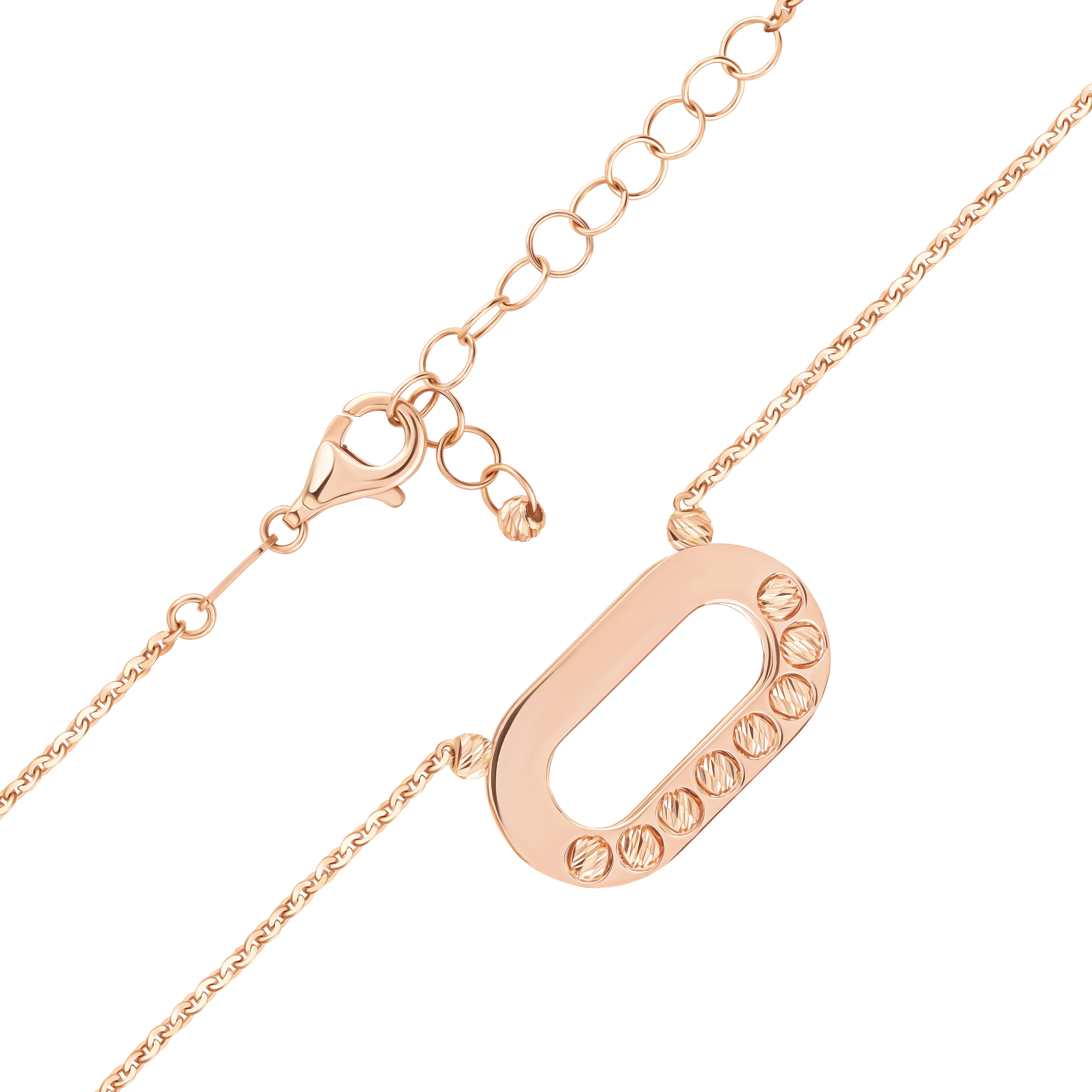 Стильний ланцюжок з підвісом "Коло" із червоного золота з фіанітами в якірному плетінні - 1878748