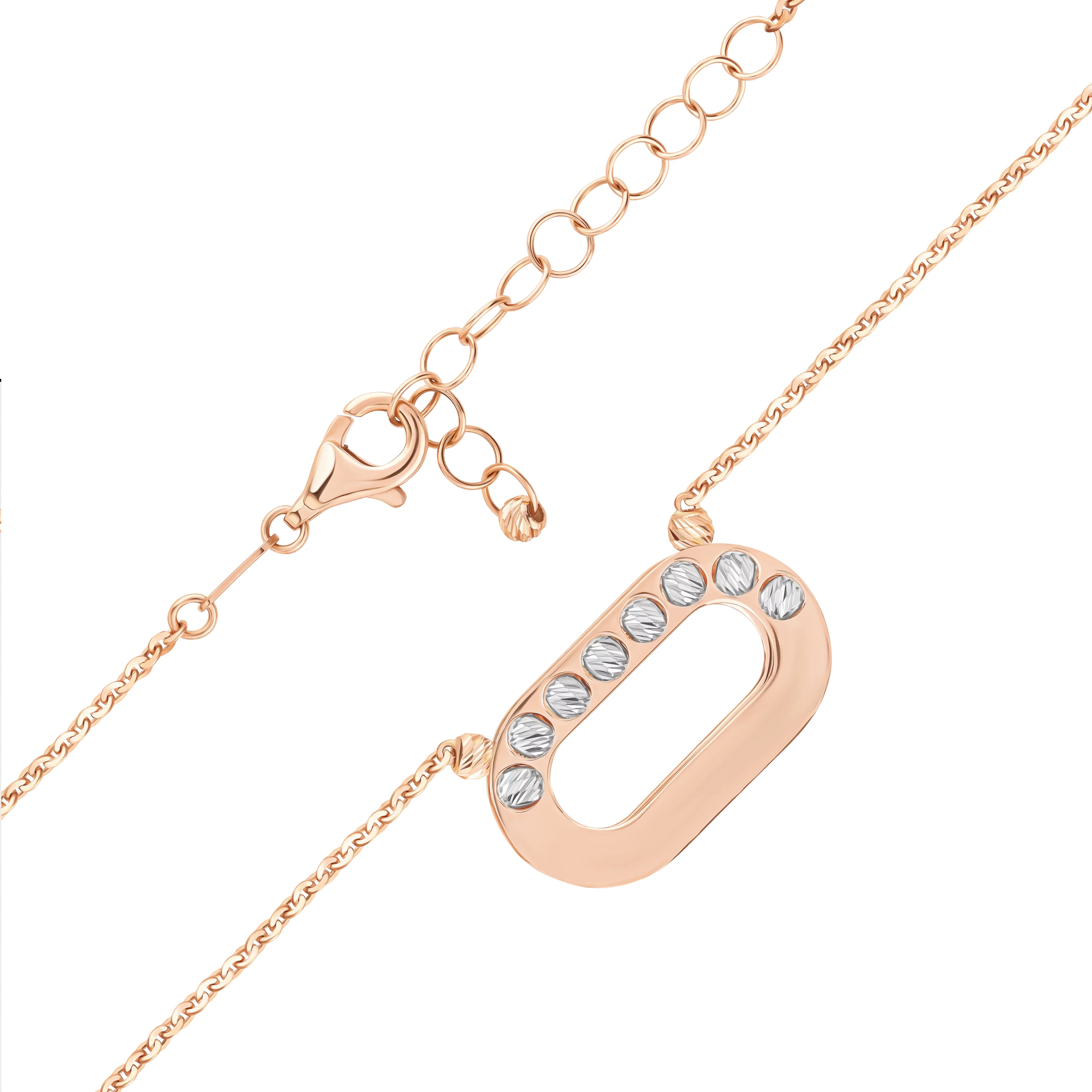 Елегантний ланцюжок із підвісом "Трикутник" у комбінованому золоті з алмазною гранню - 1870022