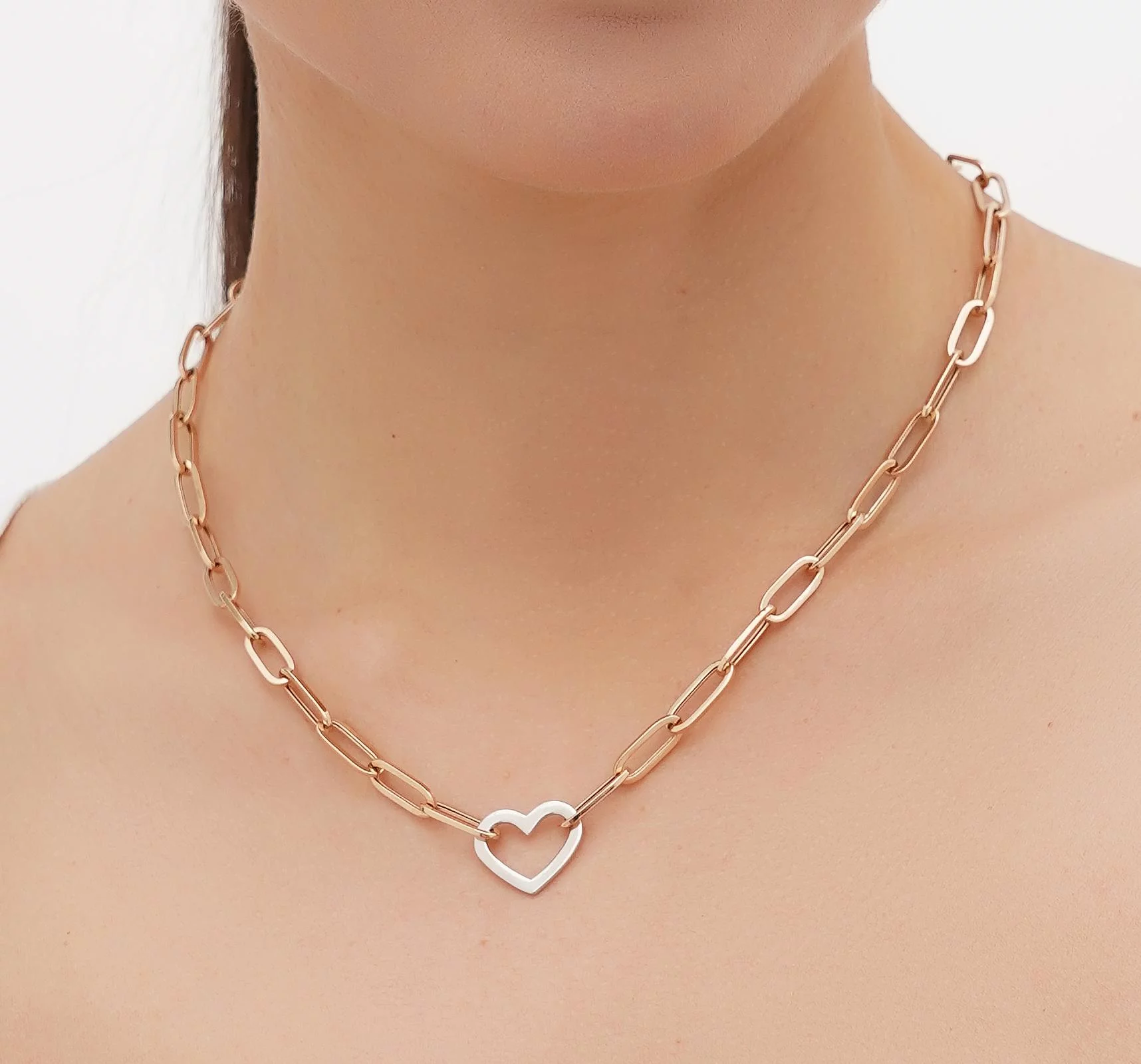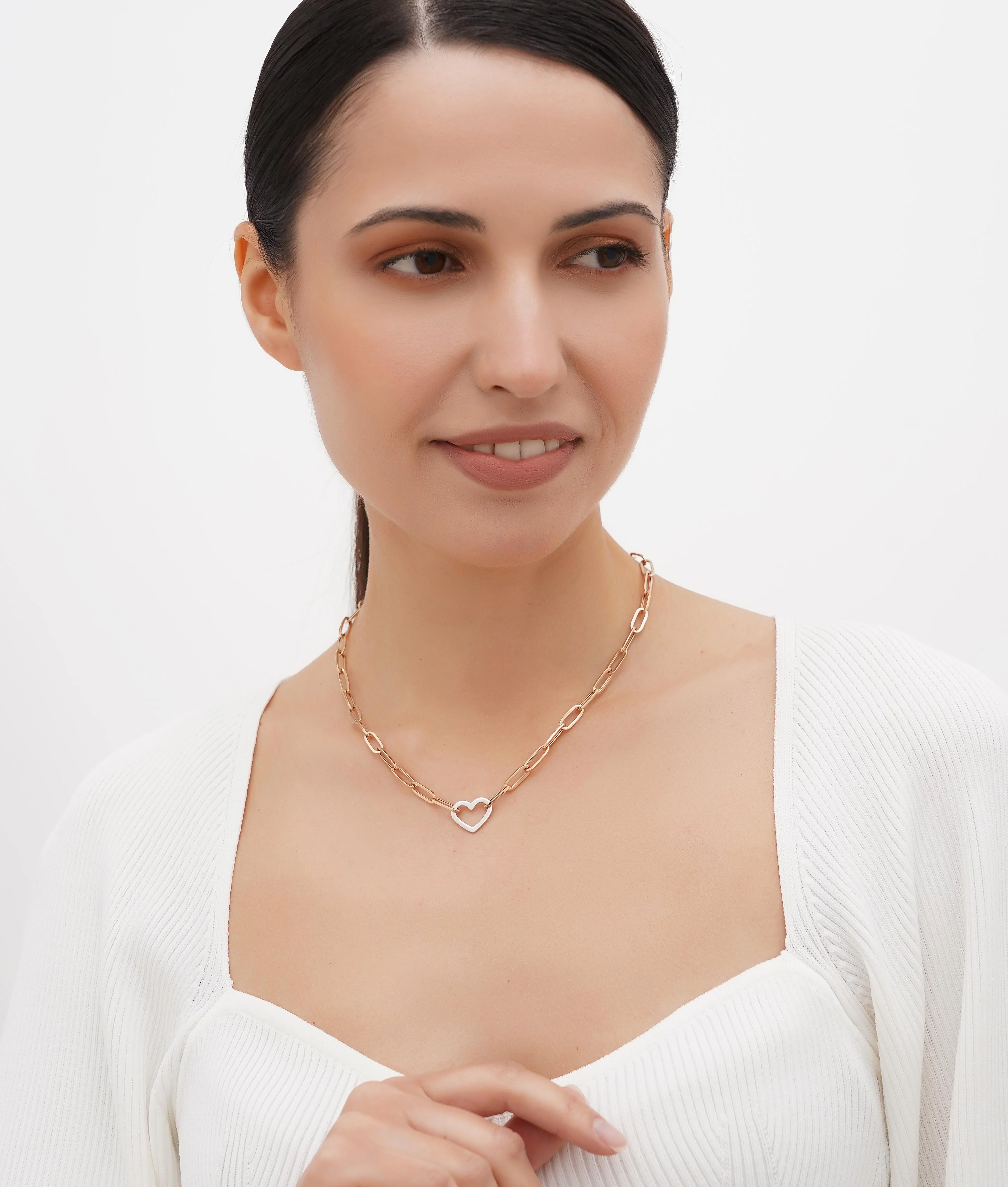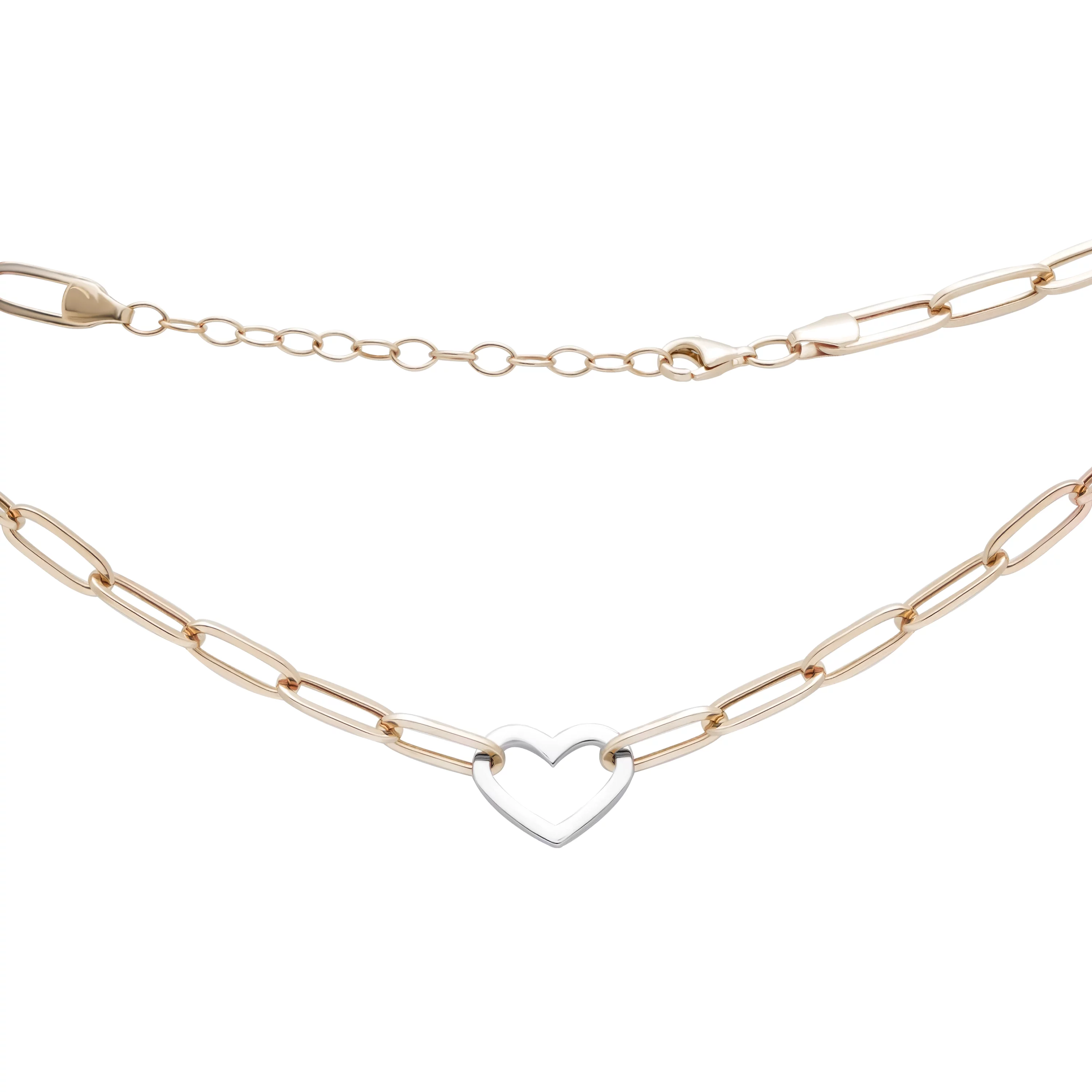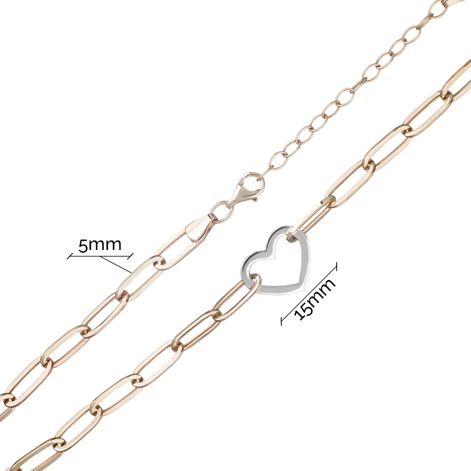 Романтичне кольє "Серце" з комбінованого золота в якірному плетінні - 1858809