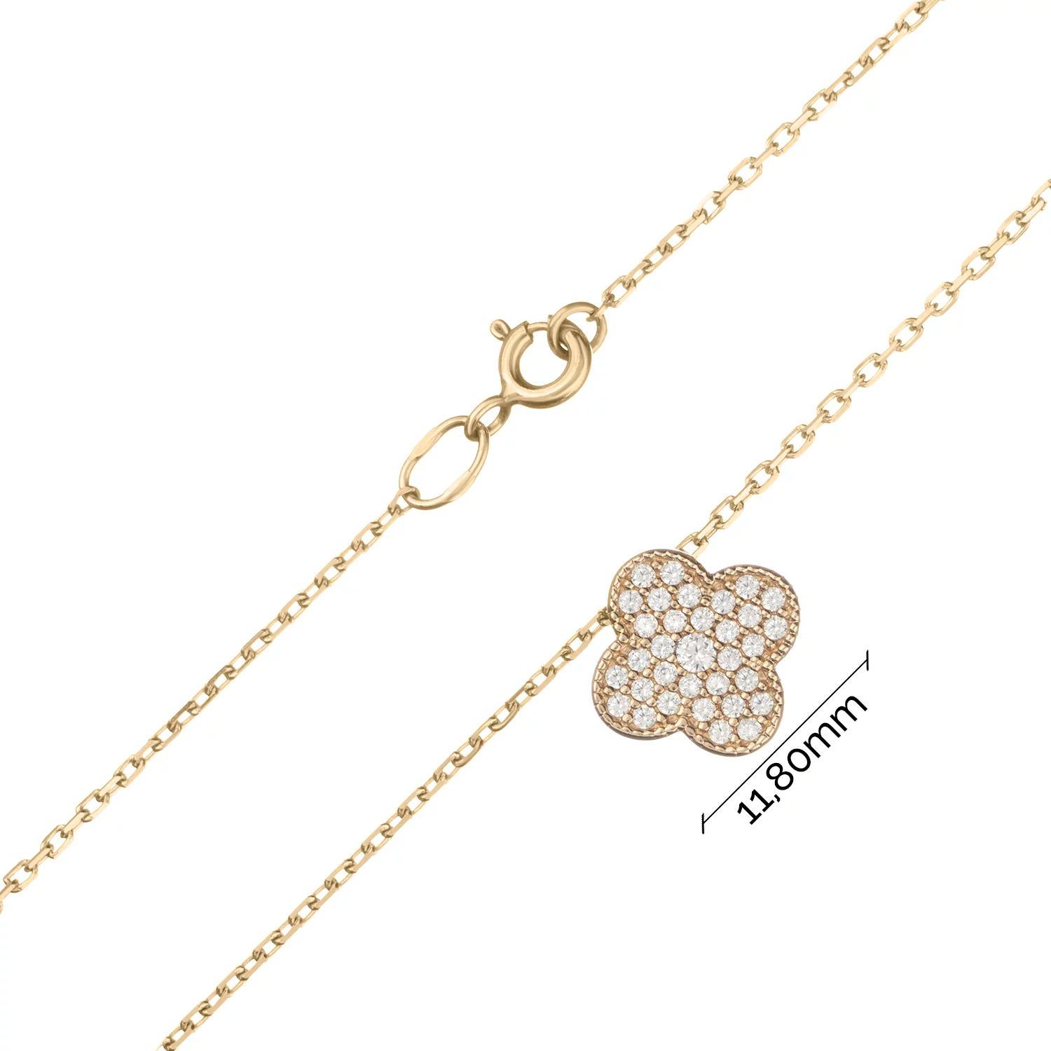 Елегантний ланцюжок з підвісом "Квітка" з жовтого золота з фіанітом і якірним плетінням з фіанітом - 1951623