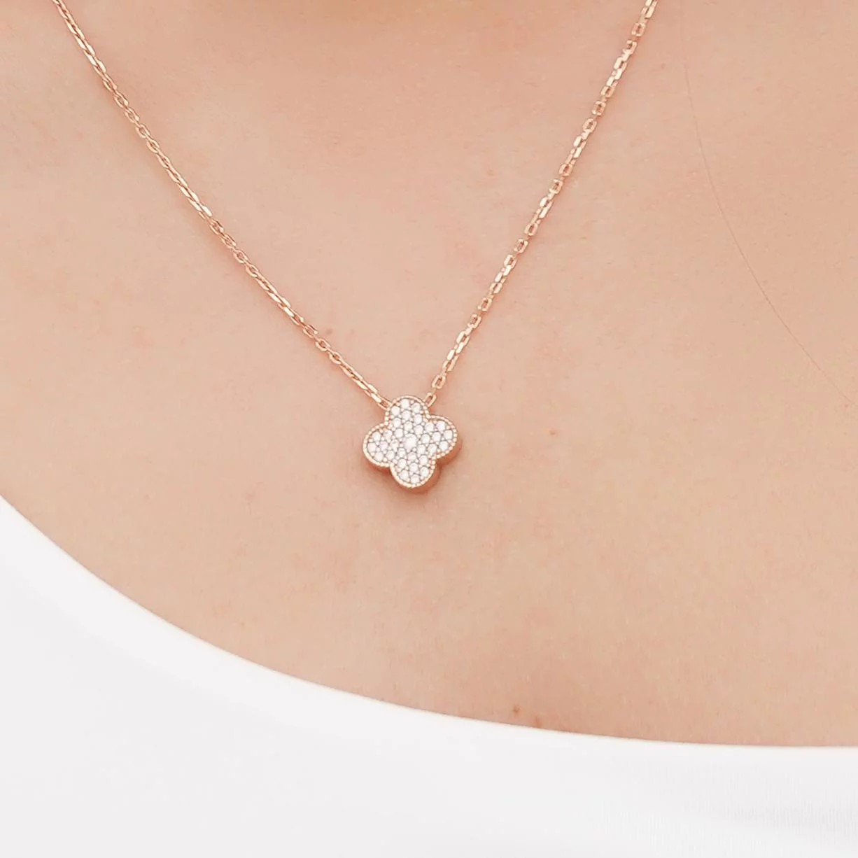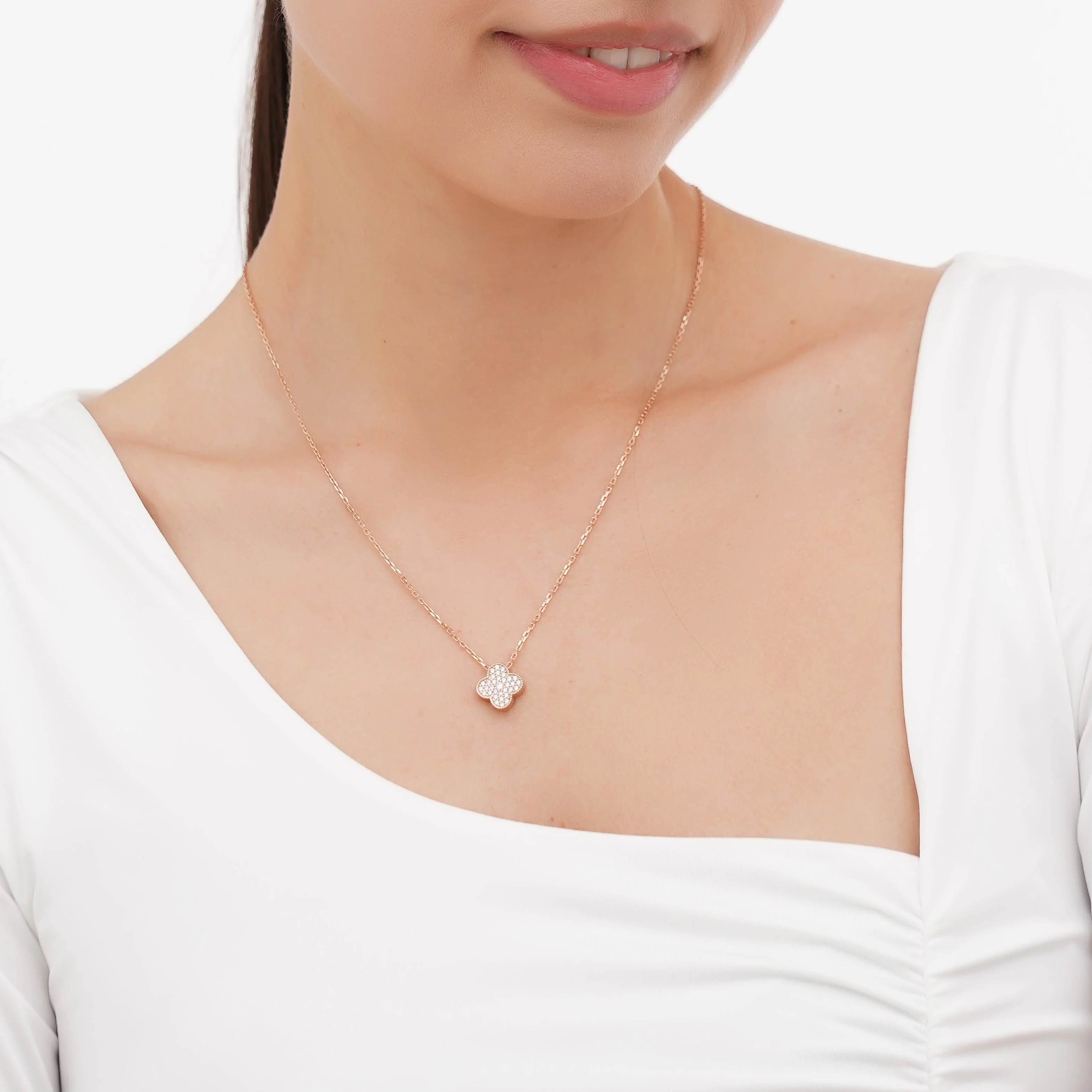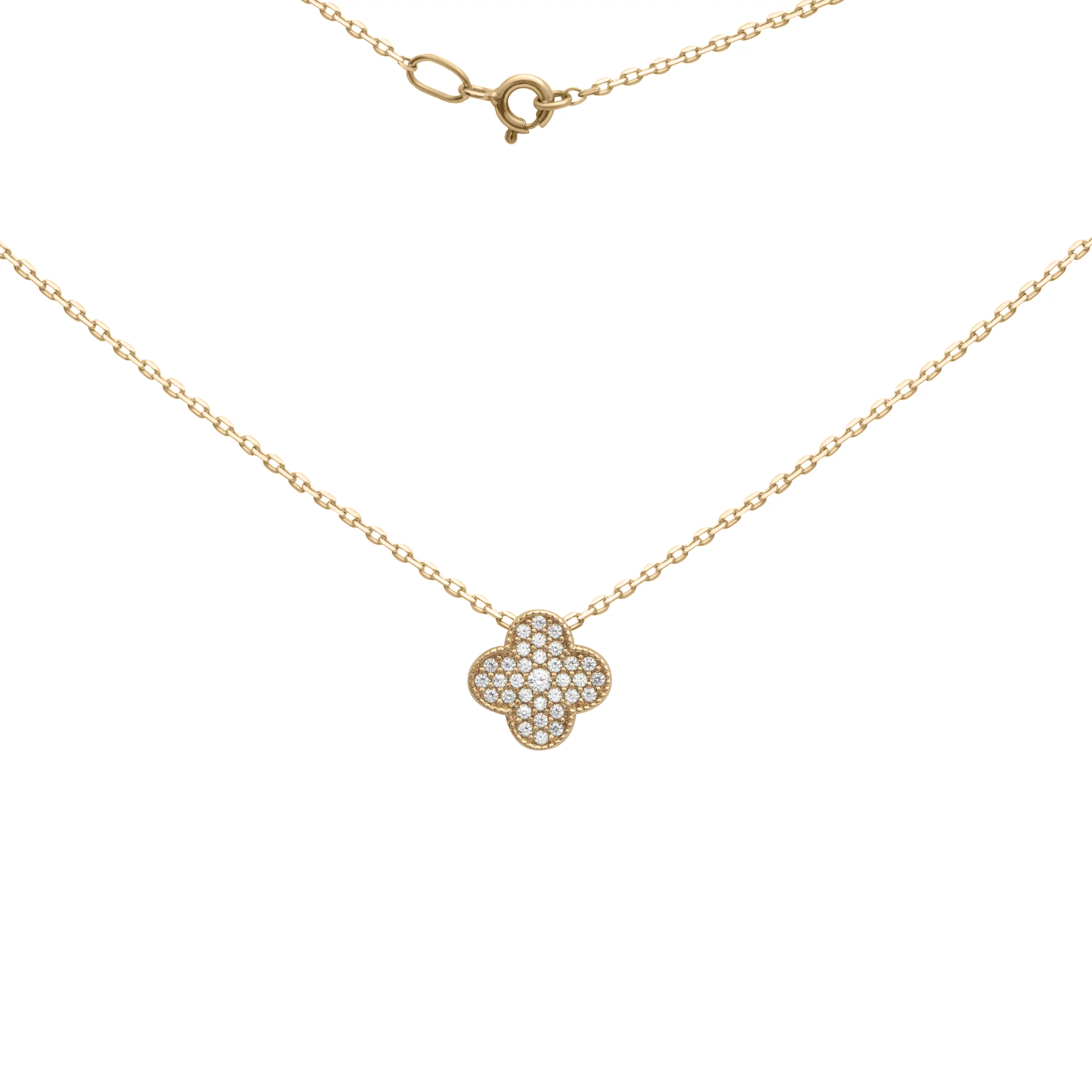 Модне кольє з підвісом "Конюшина" з червоного золота з фіанітами та якірним плетінням - 1918231