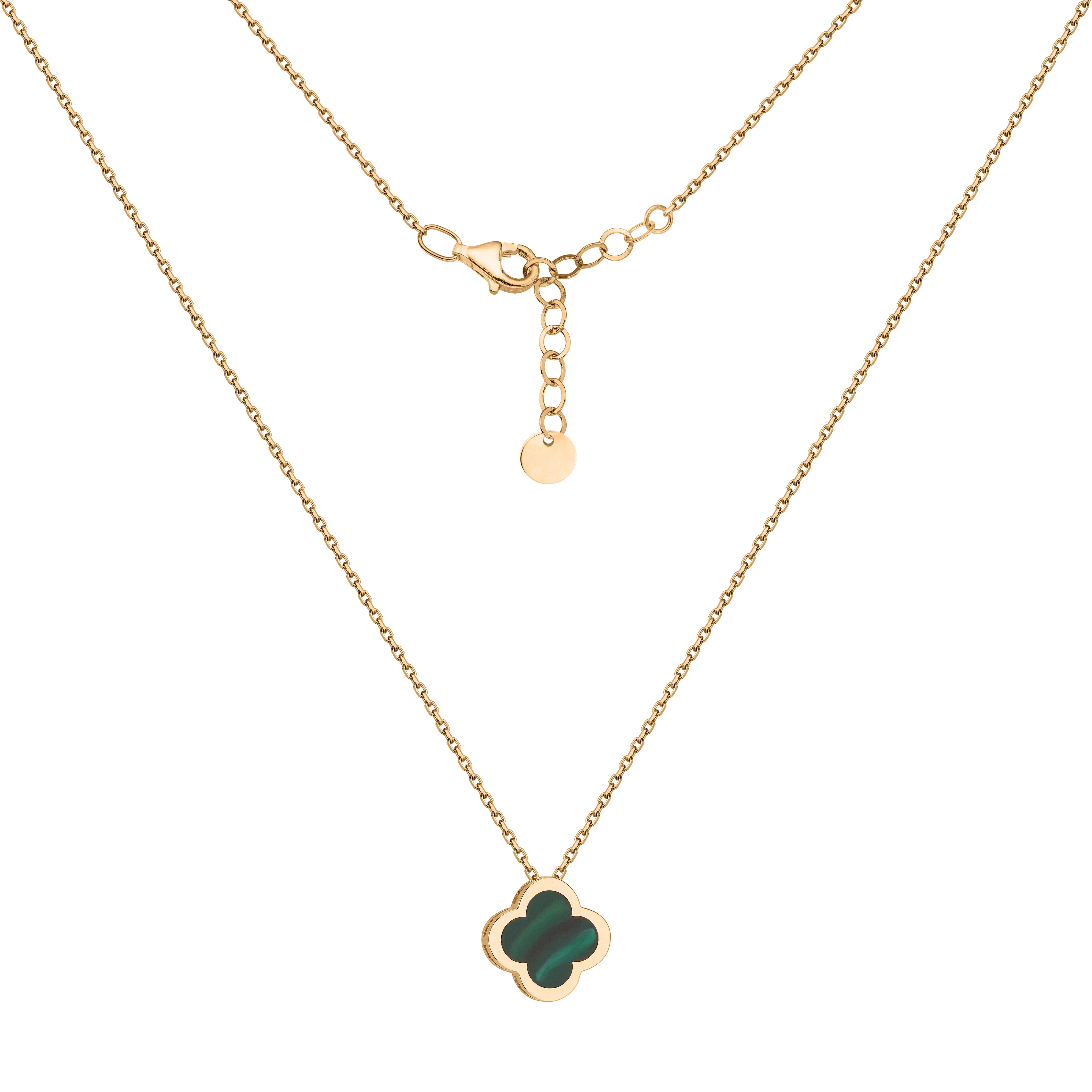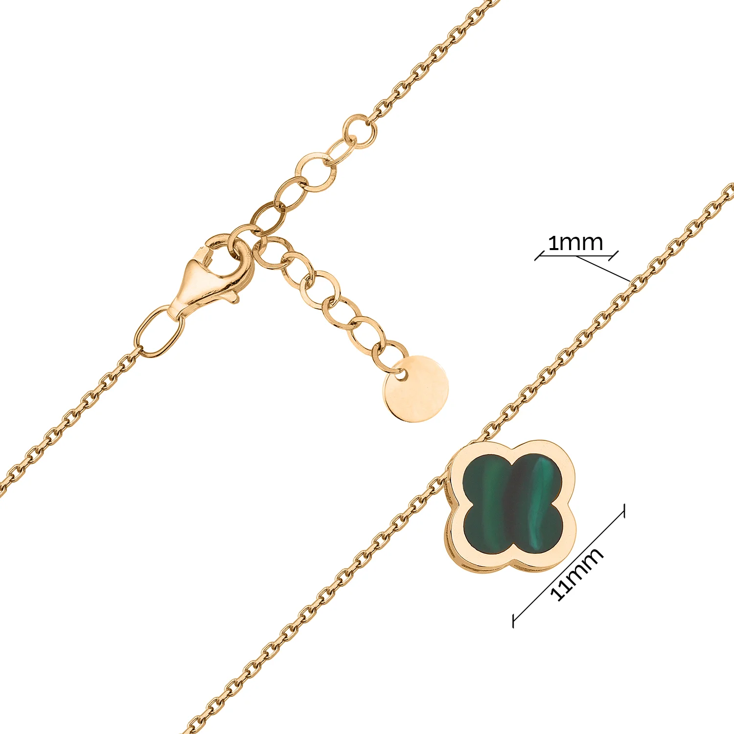 Кольє з підвісом "Конюшина" із жовтого золота з агатом якірне плетіння - 1511201
