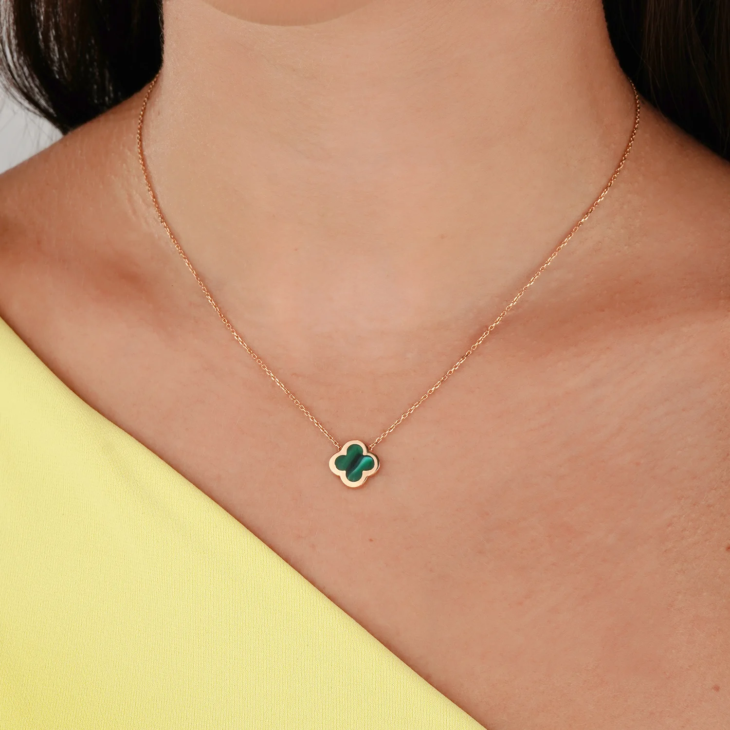 Модне кольє з підвісом "Конюшина" з червоного золота з фіанітами та якірним плетінням - 1918231