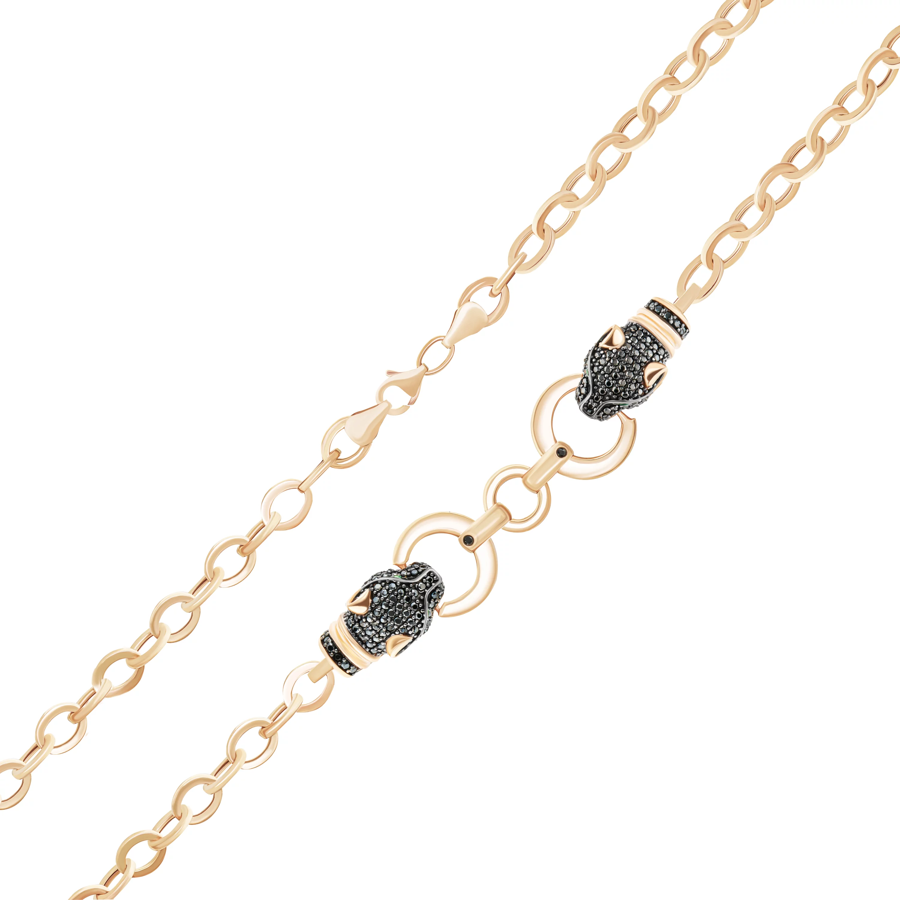 Кольє з підвісом "Пантера" з червоного золота з фіанітами плетіння якір - 1615115