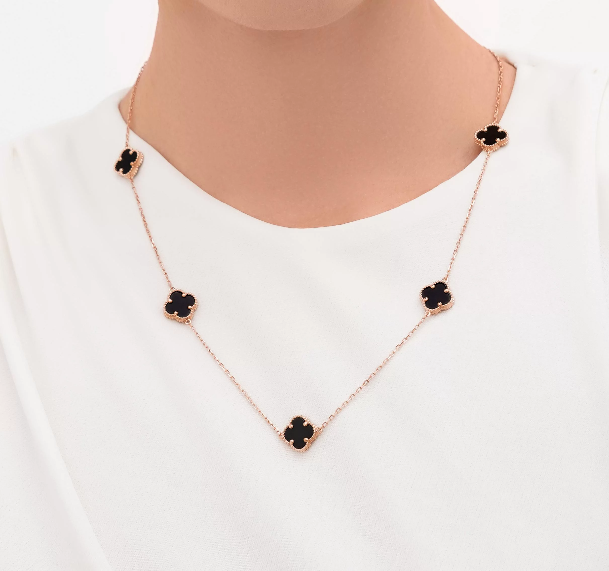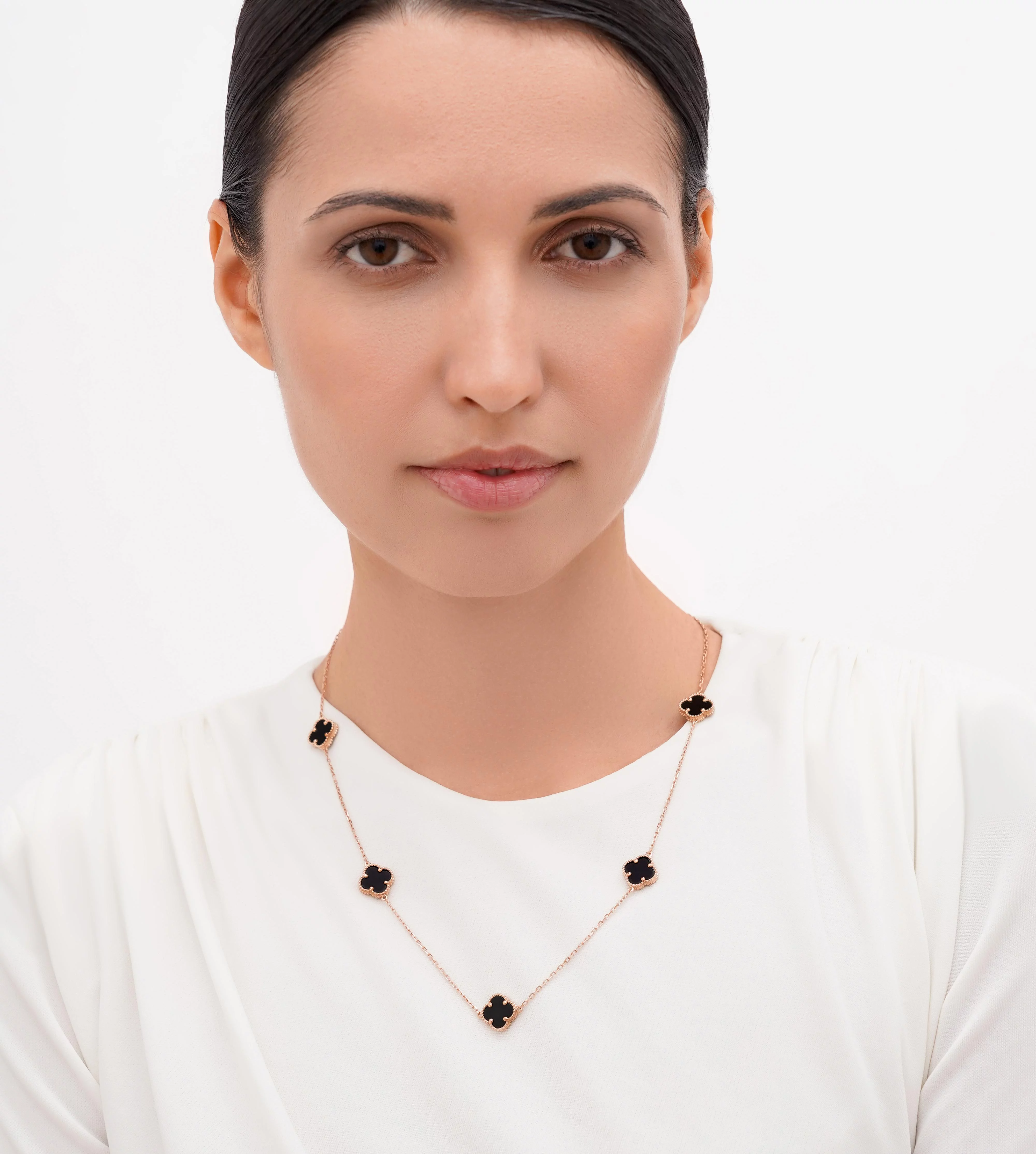 Кольє з червоного золота з підвісами із онікса "Конюшина" у якірному плетінні - 1744970