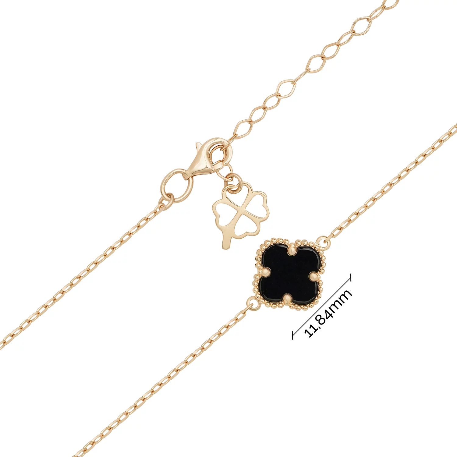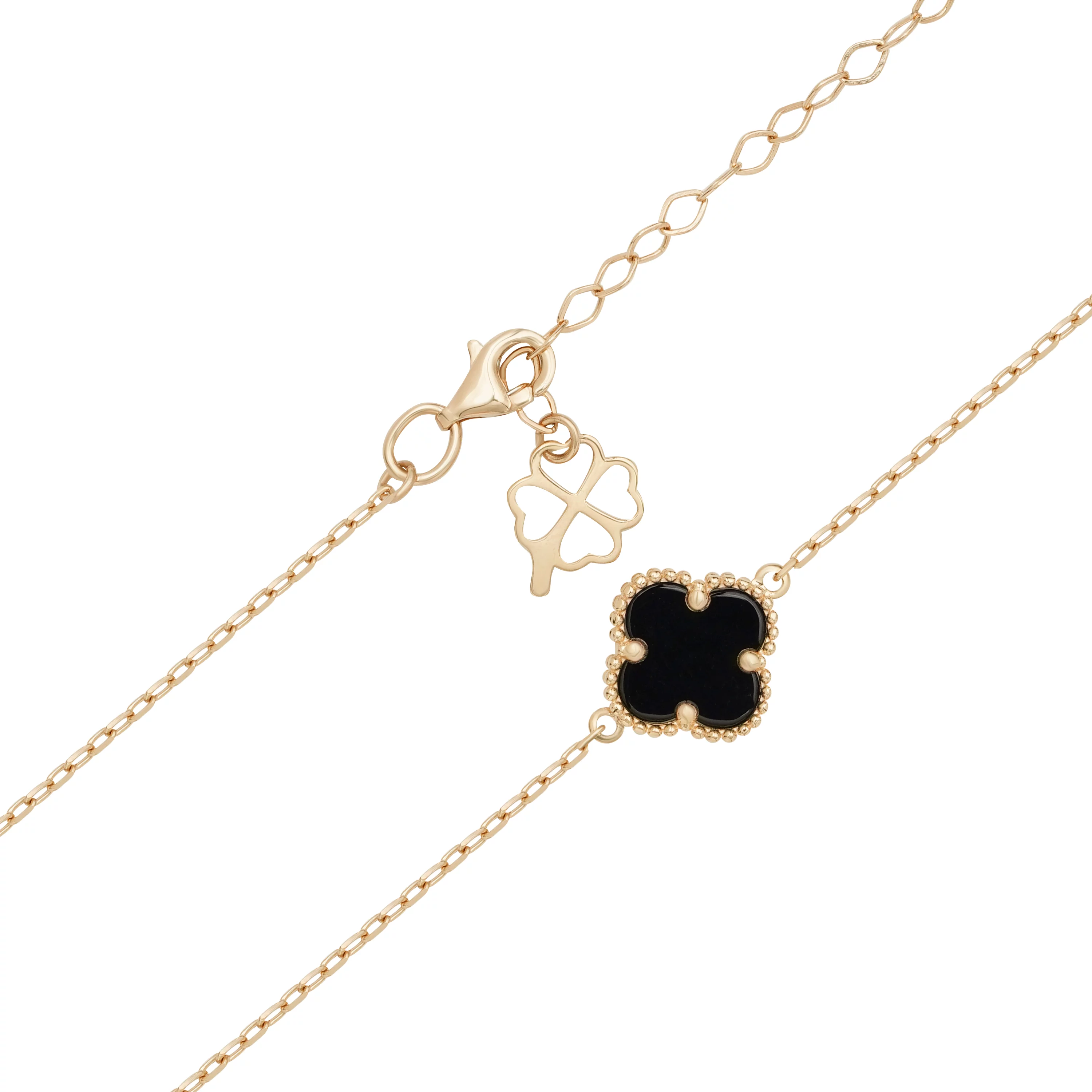 Кольє з підвісом "Конюшина" з червоного золота з оніксом якірне плетіння - 1824374