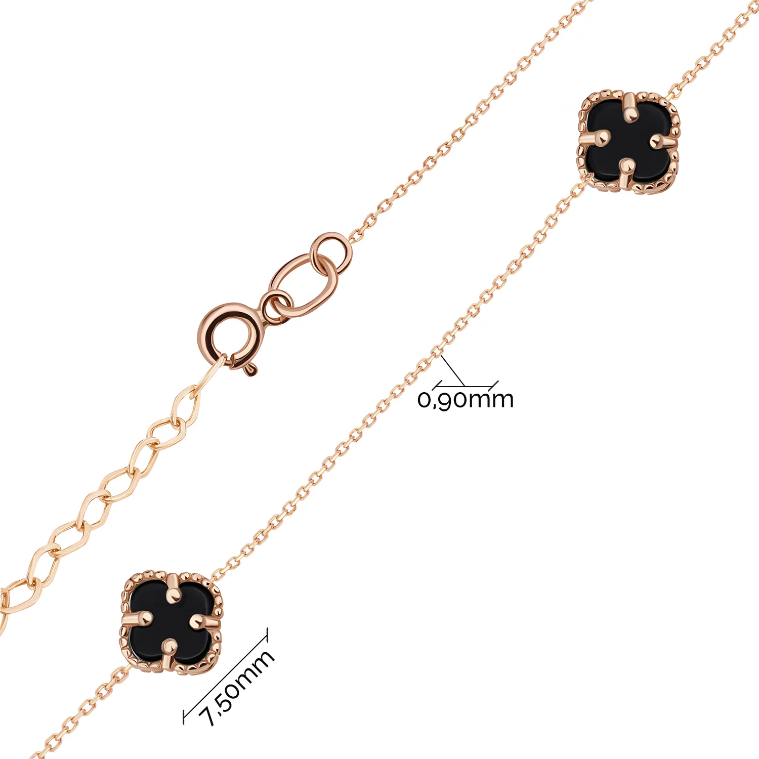 Ланцюжок з підвісом "Конюшина" з червоного золота з оніксом плетіння якір - 1747799