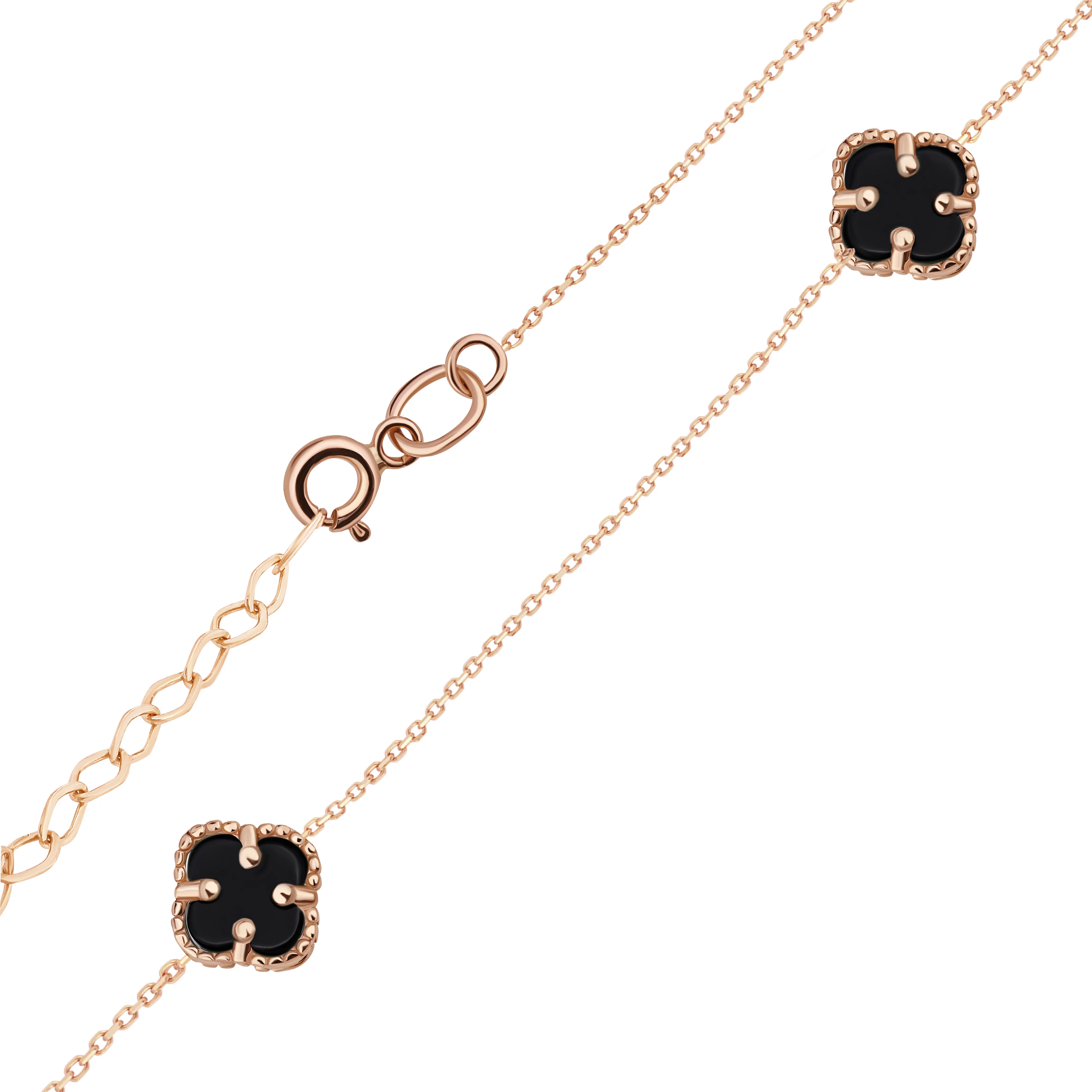 Кольє з підвісом "Конюшина" з червоного золота з оніксом якірне плетіння - 1823258
