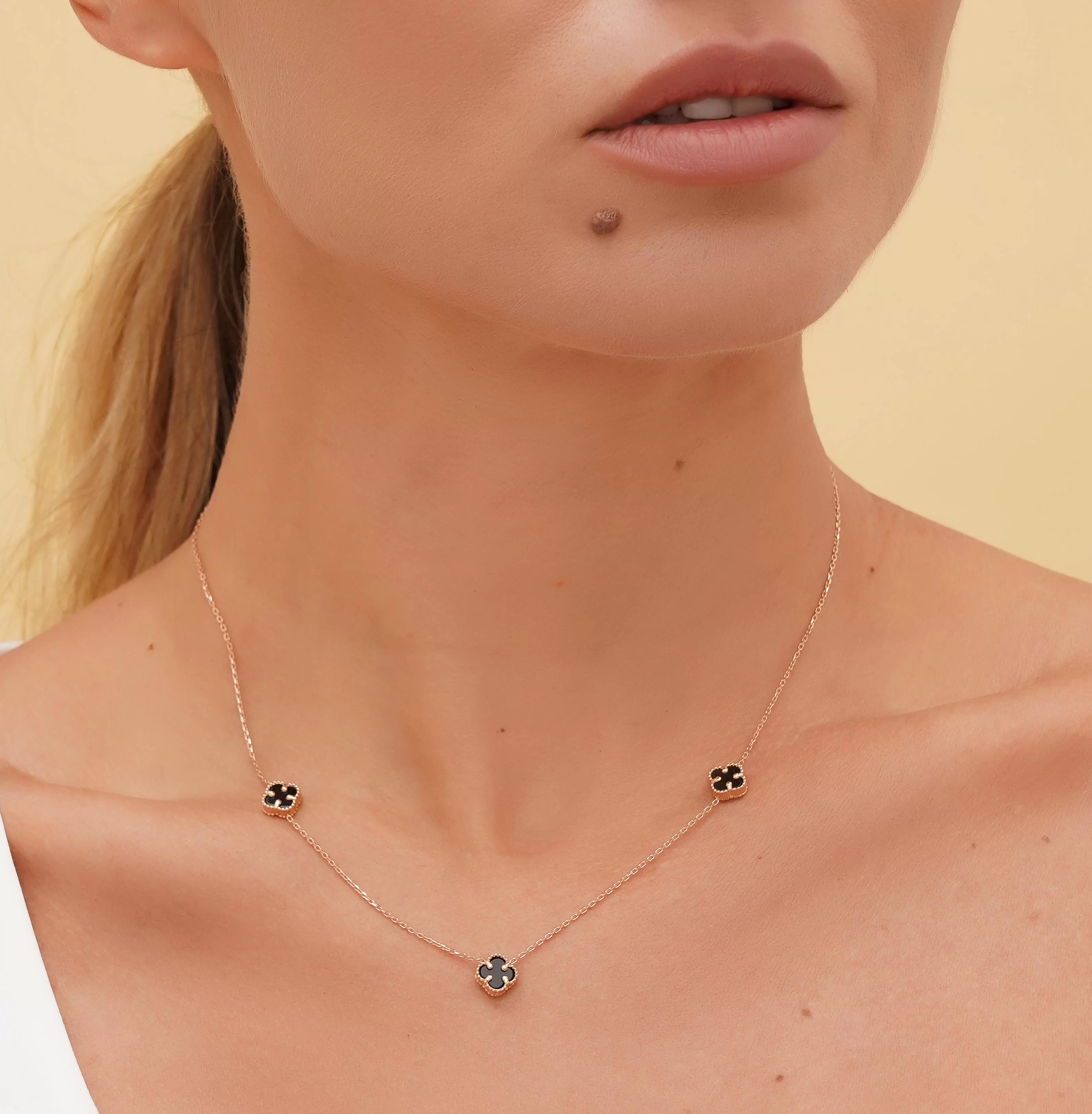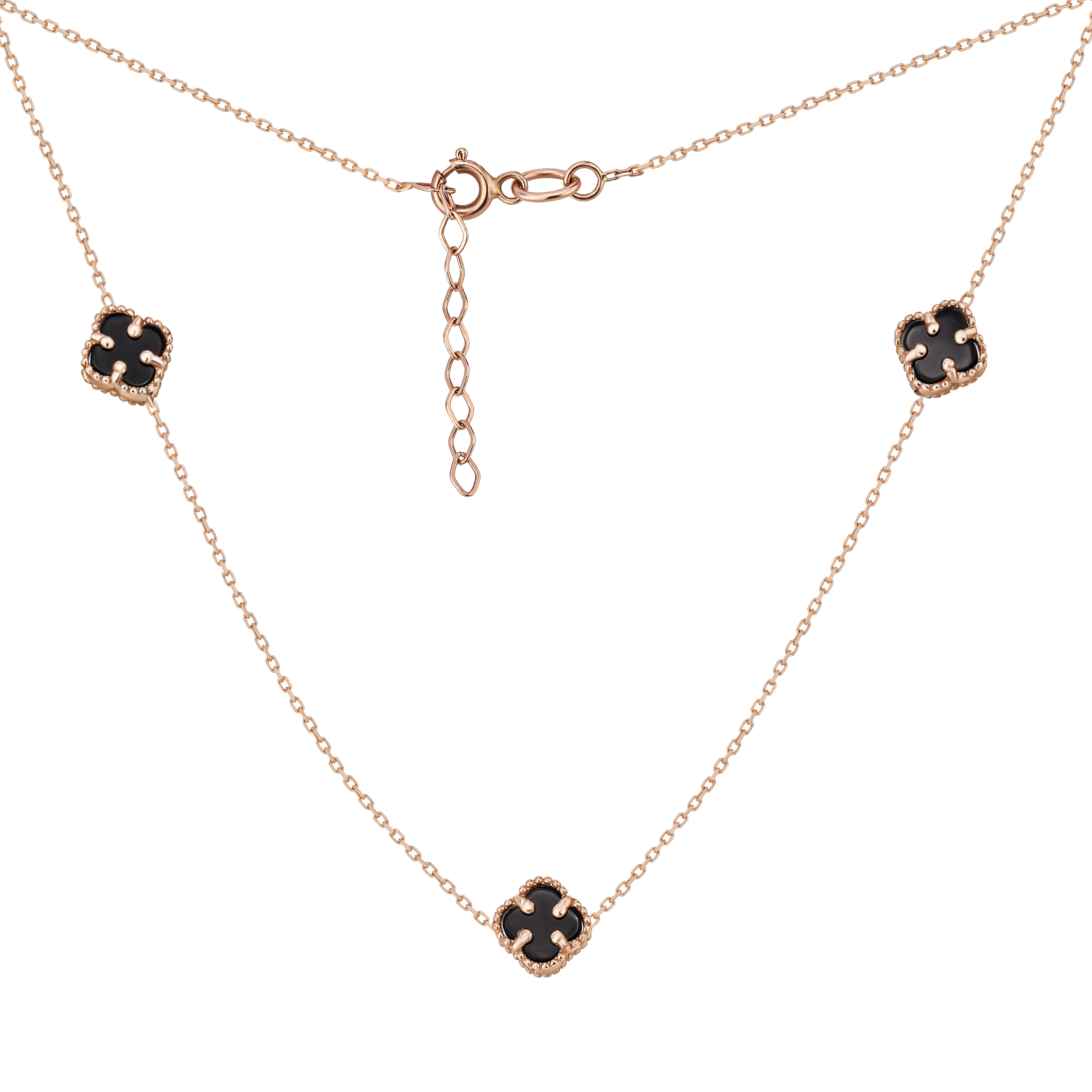 Кольє в червоному золоті з підвісами "Конюшина" з оніксом плетіння якірне - 1567397