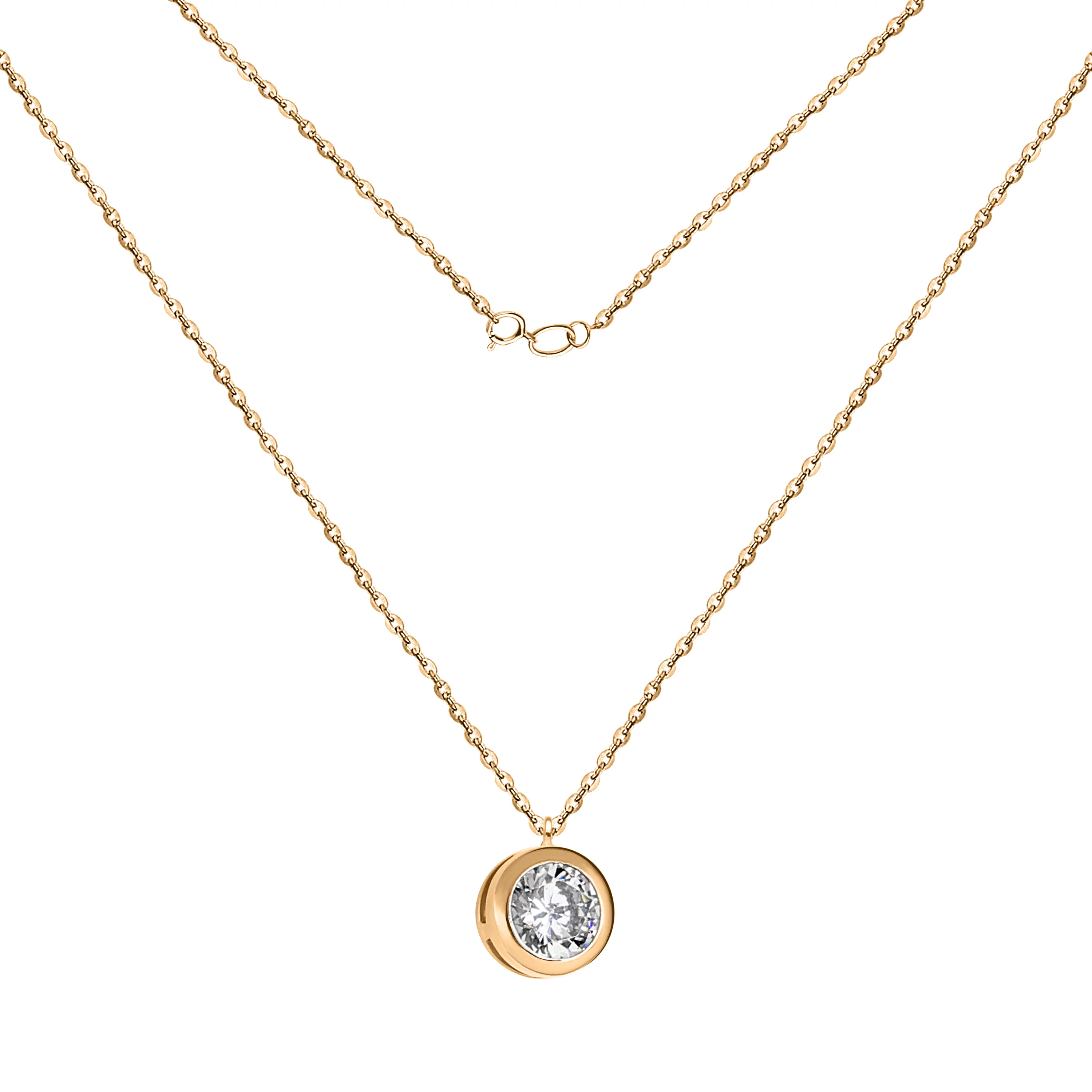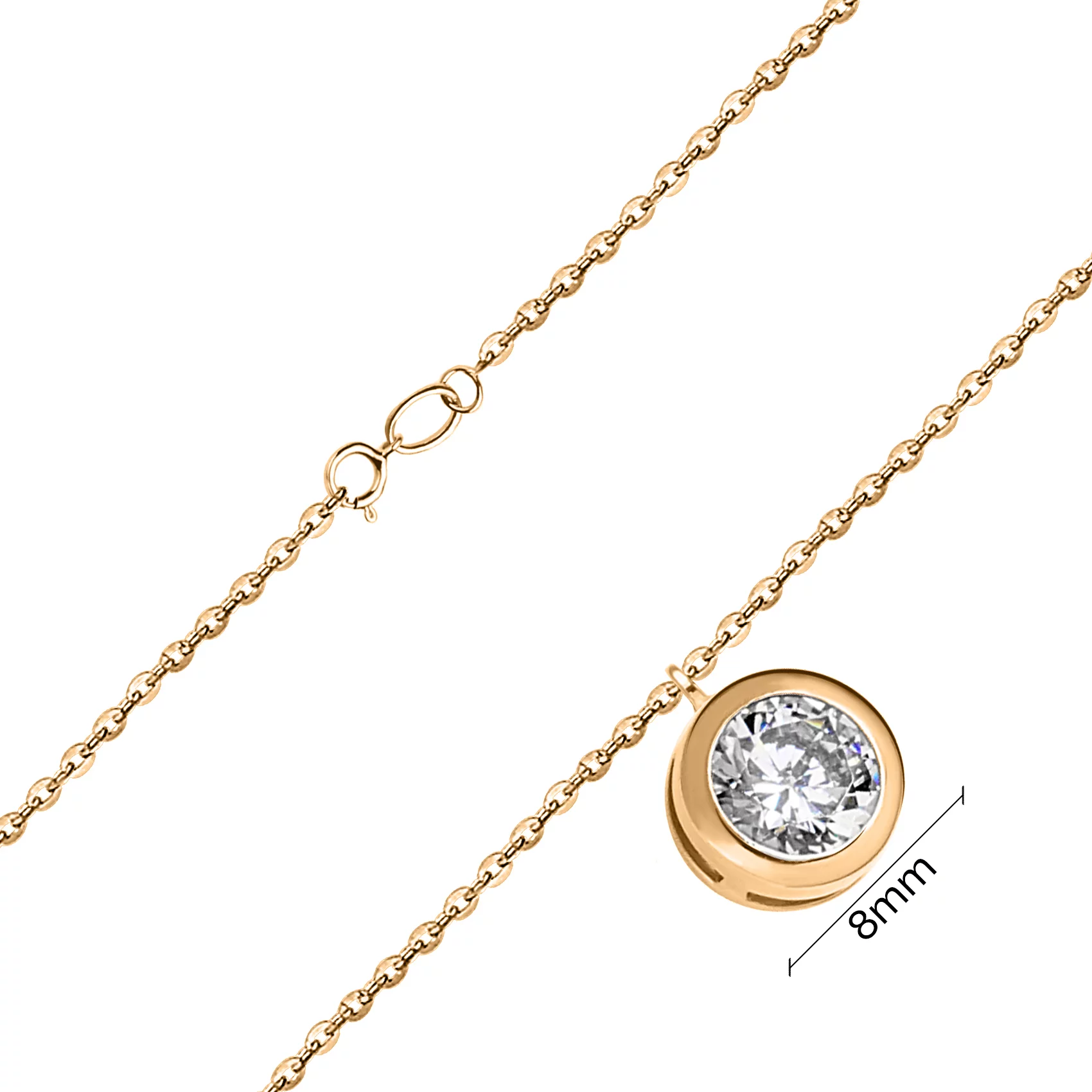 Ланцюг з підвіскою "Коло" з фіанітами з червоного золота якірне плетіння - 1744997