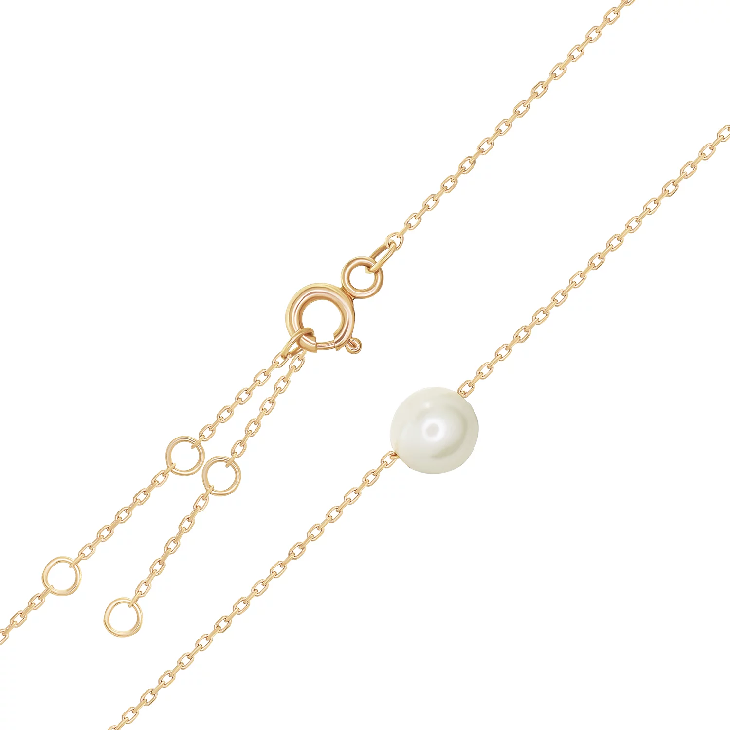 Кольє-краватка "Кулі" у червоному золоті з перлинами та якірним плетінням - 1941366