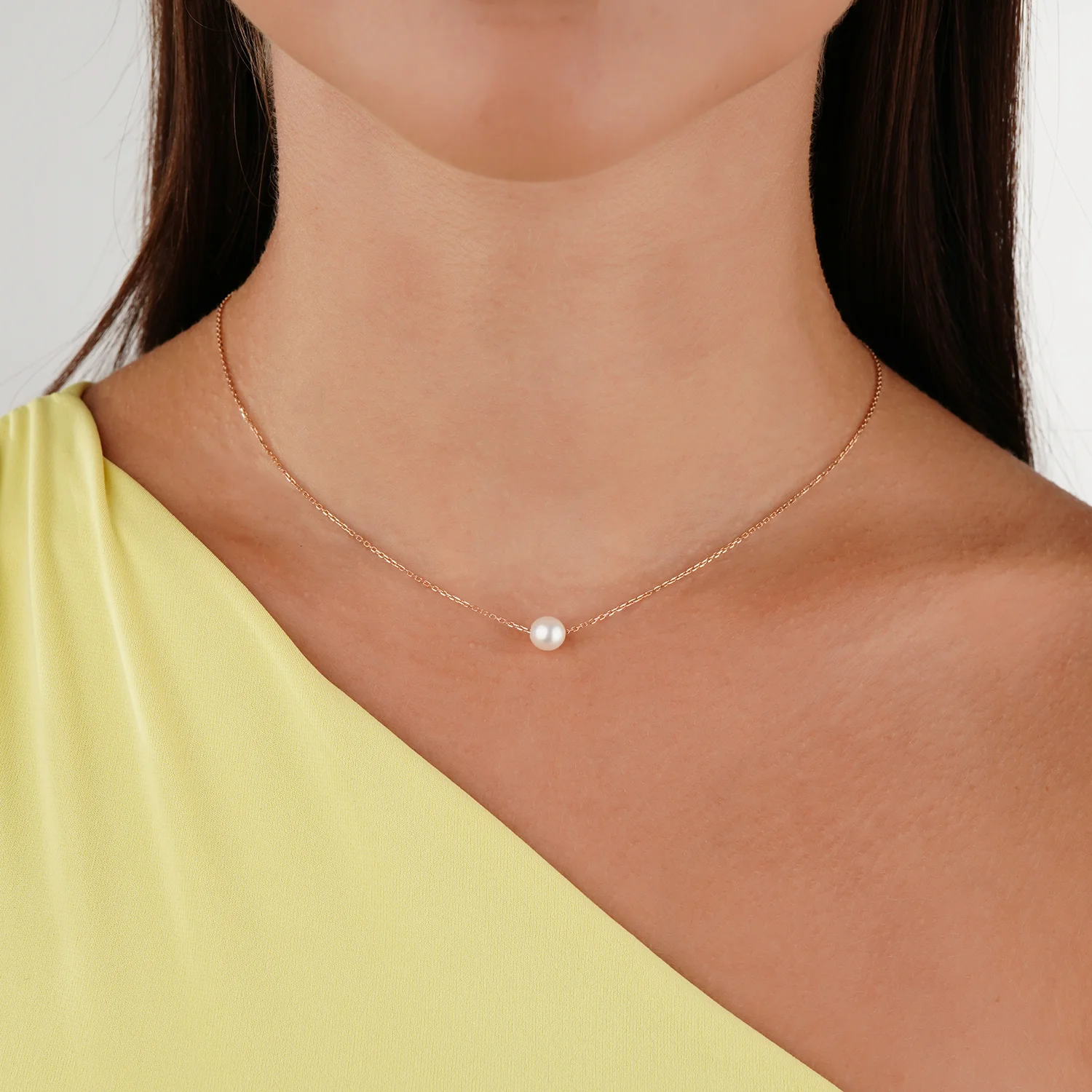 Кольє-краватка у червоному золоті з перлиною та якірним плетінням - 1941258
