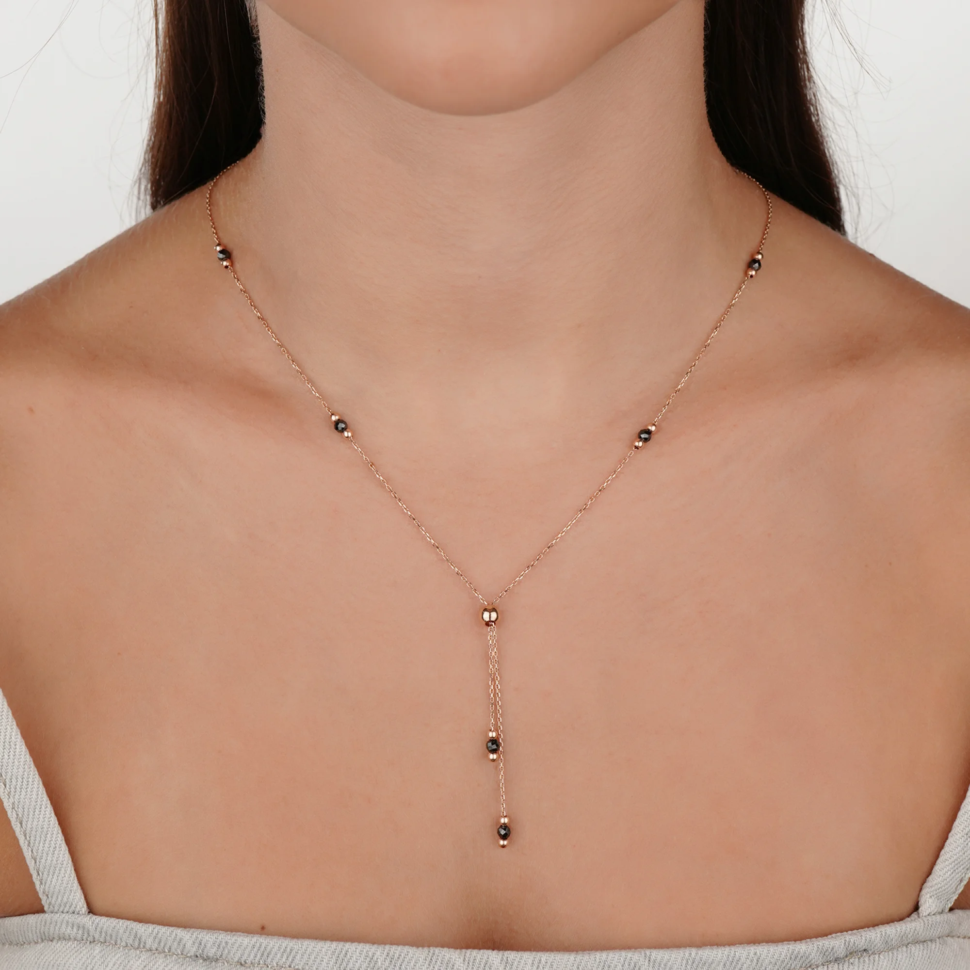 Кольє зпідвісами з оніксом з червоного золота "Конюшина" у якірному плетінні - 1747985