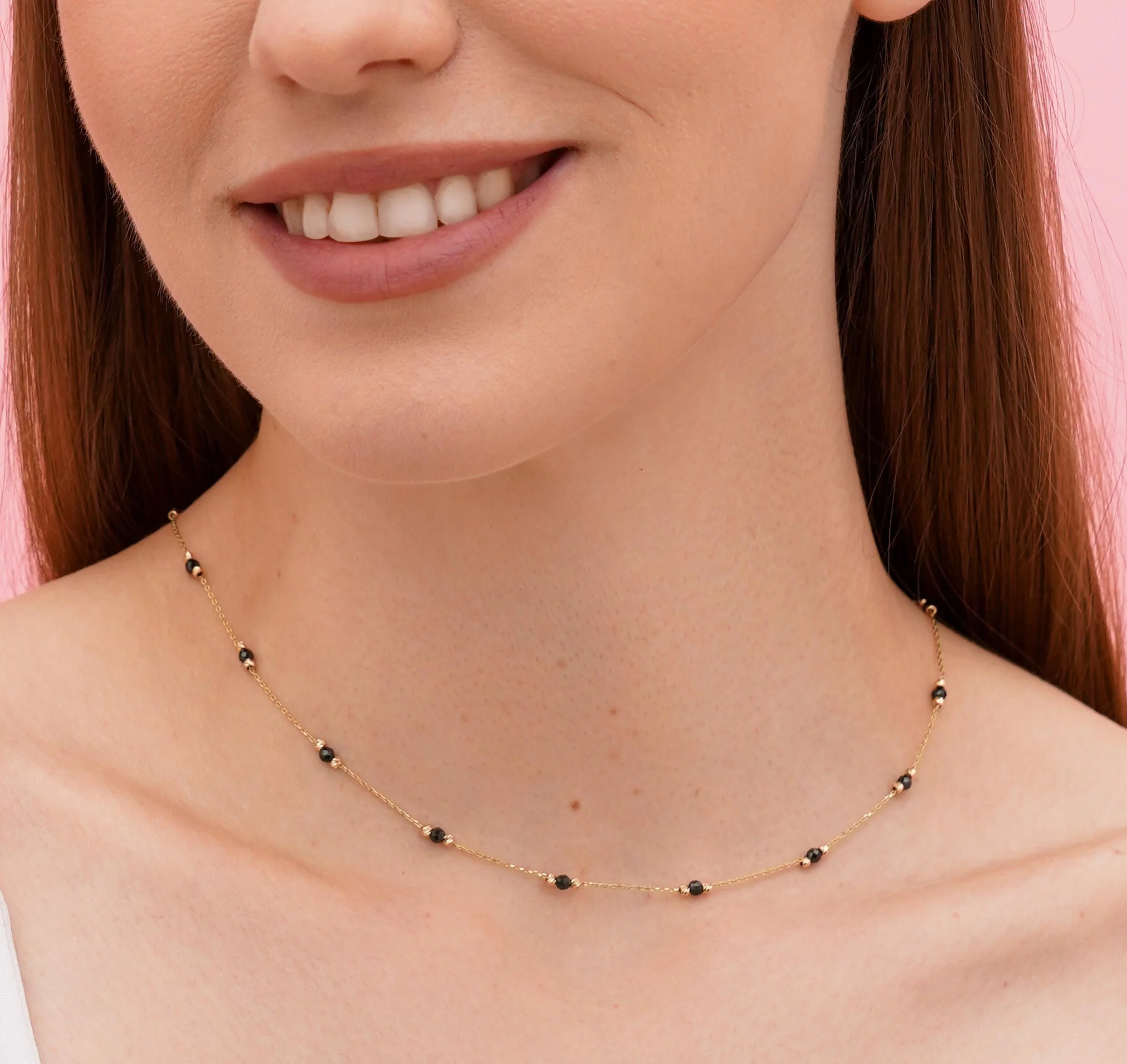 Кольє з підвісом "Конюшина" з червоного золота з оніксом якірне плетіння - 1824374