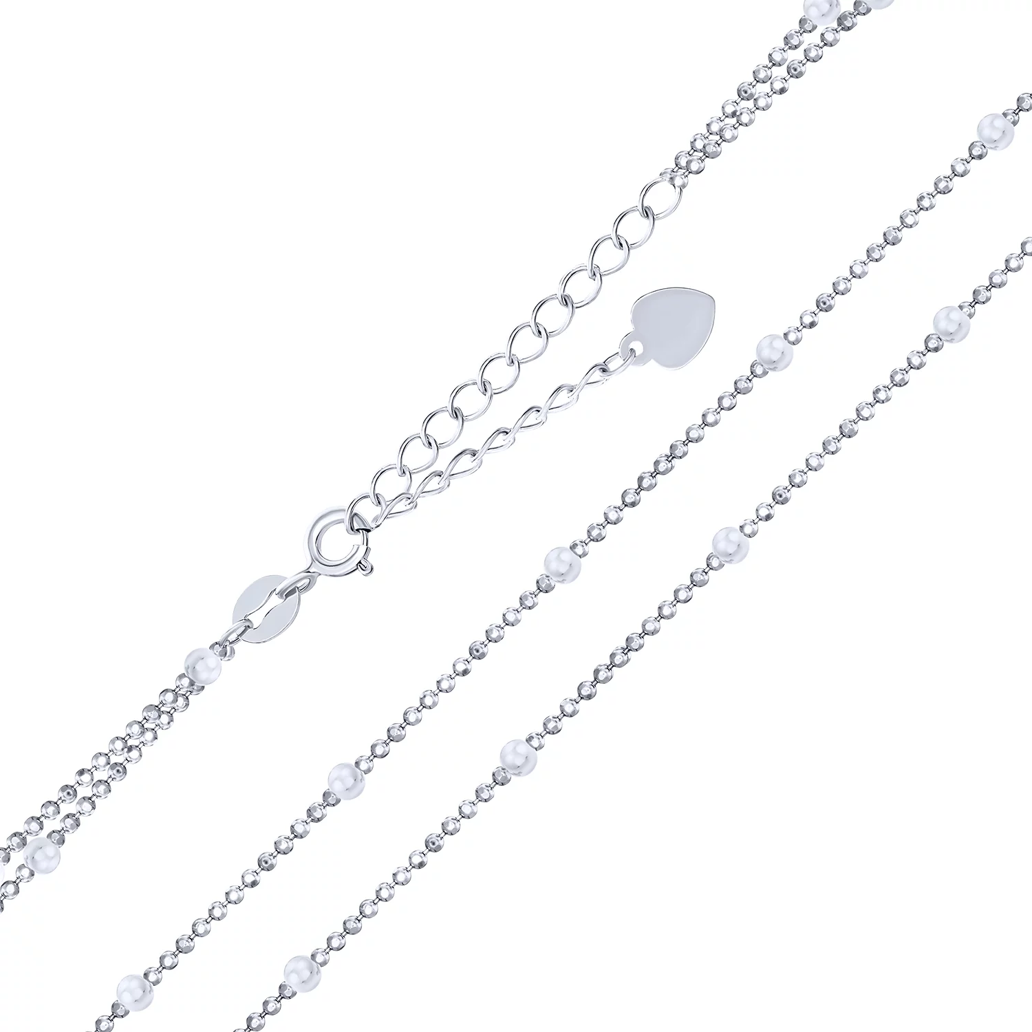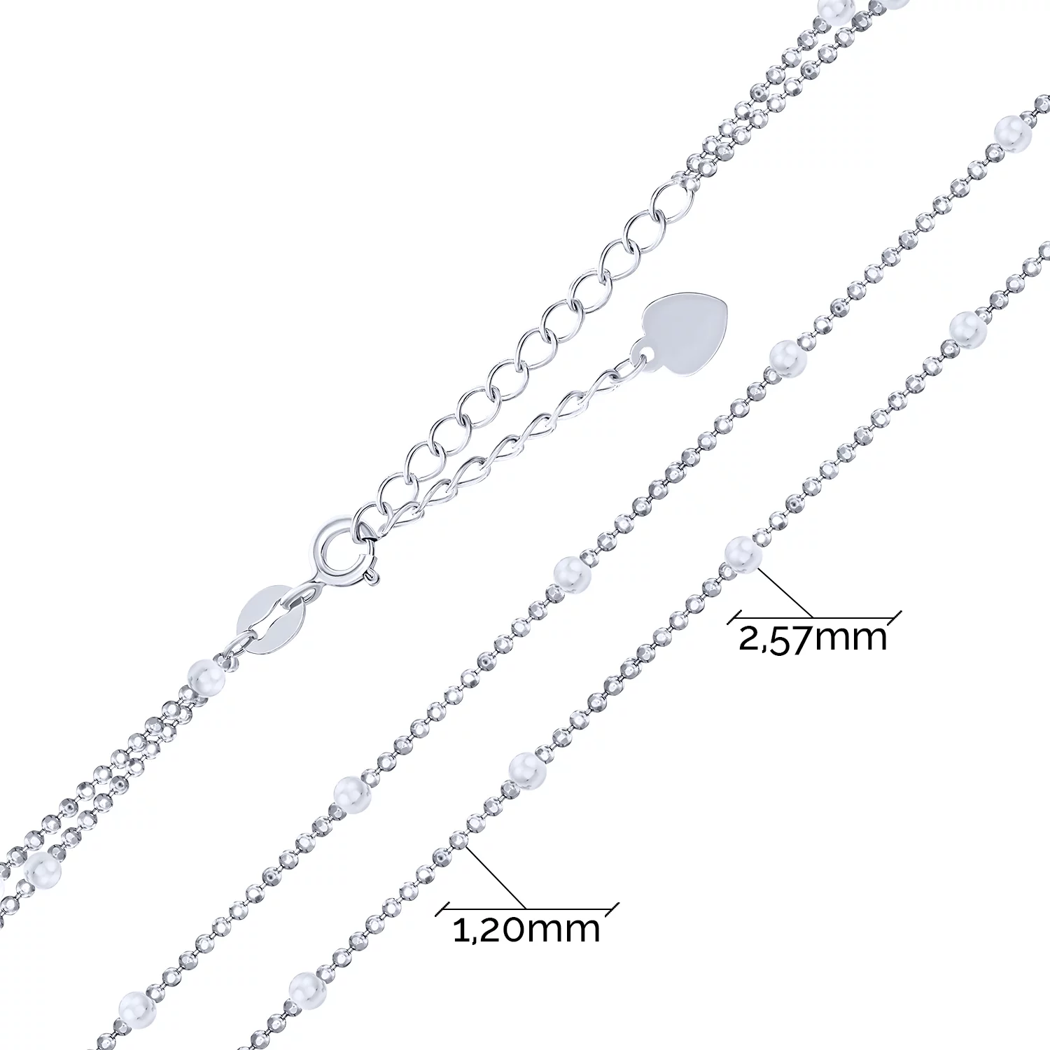 Кольє срібне подвійне з кульками та монеткою з плетінням фантазійне - 970436