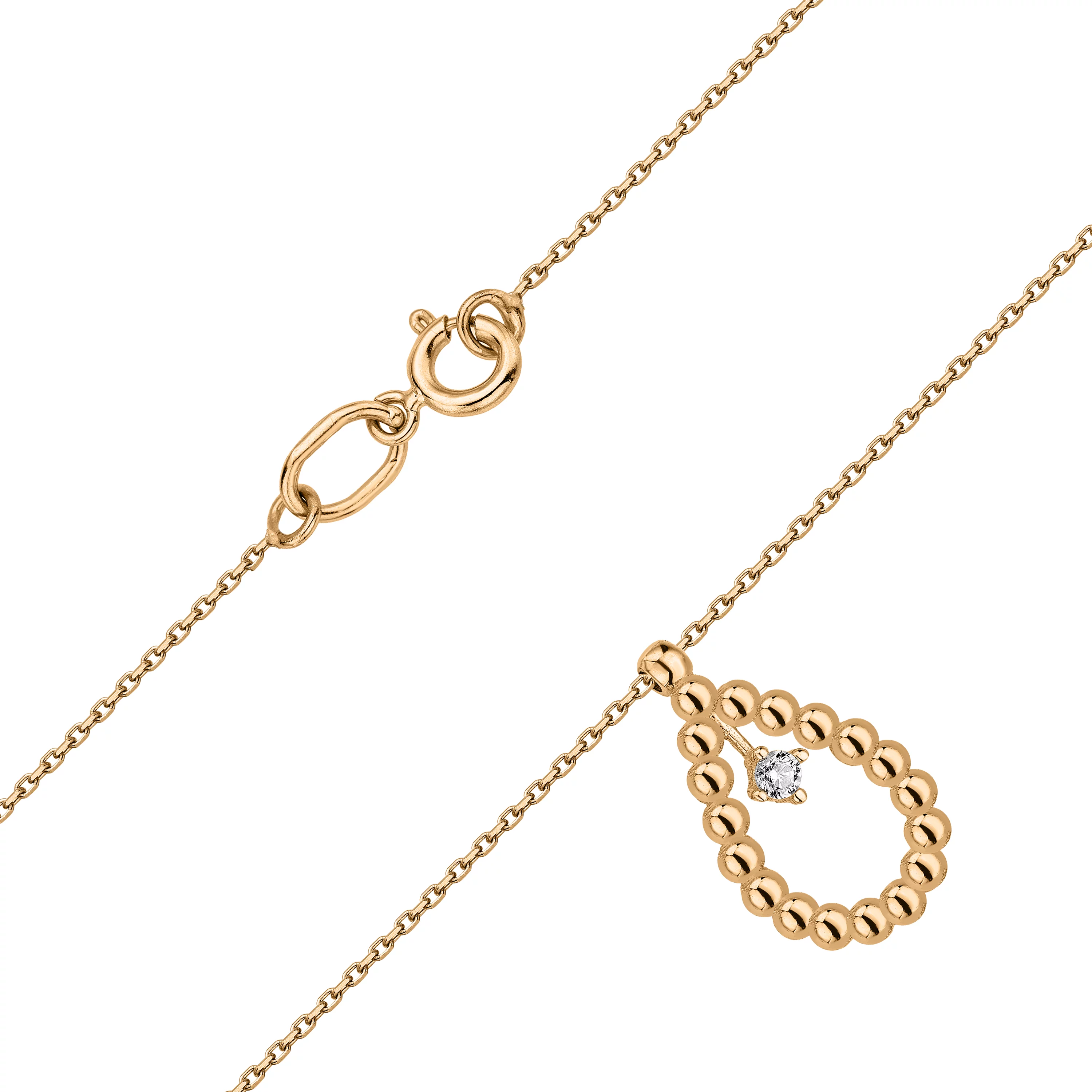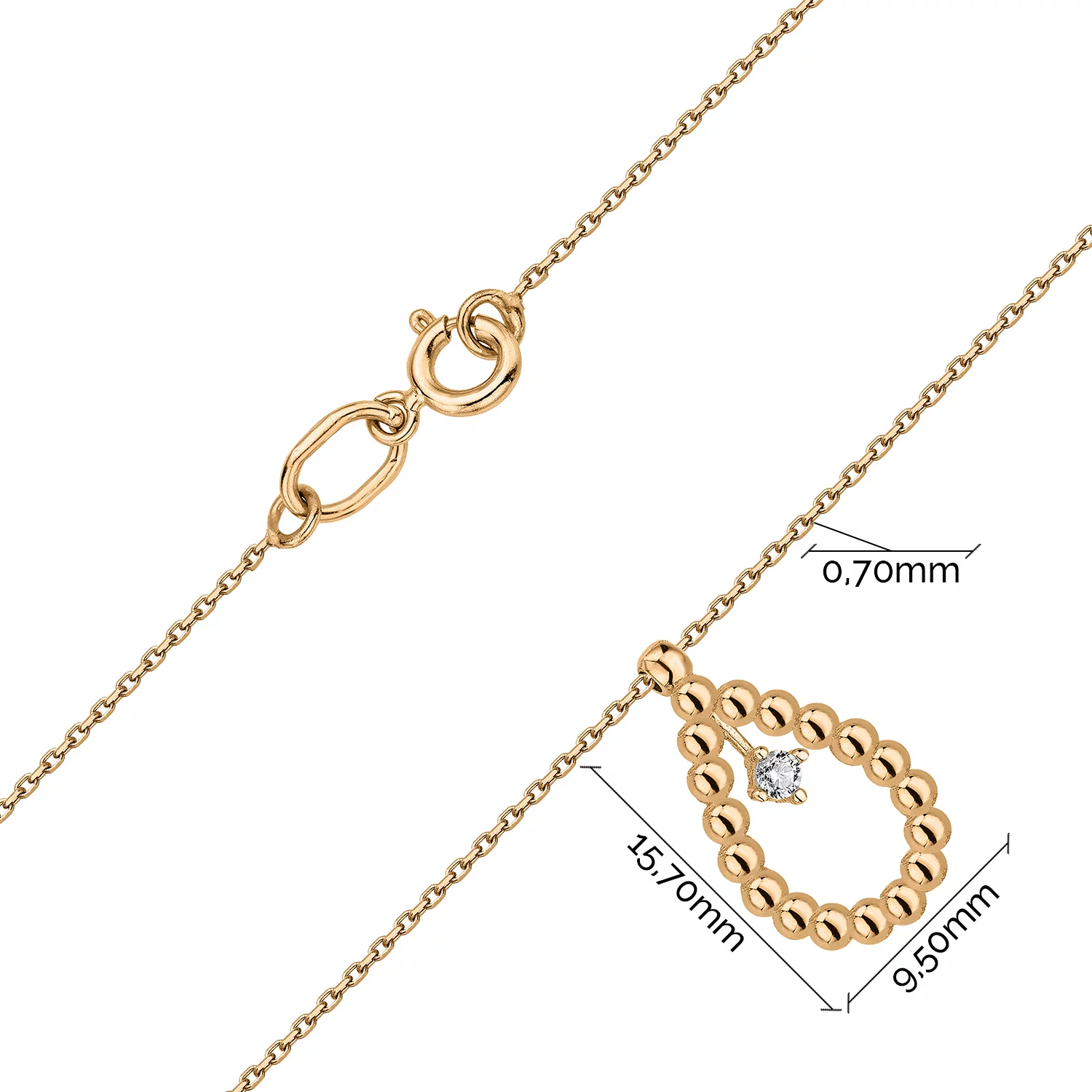Ланцюжок з підвісом "Коло" з червоного золота з фіанітами плетіння якір - 1748054