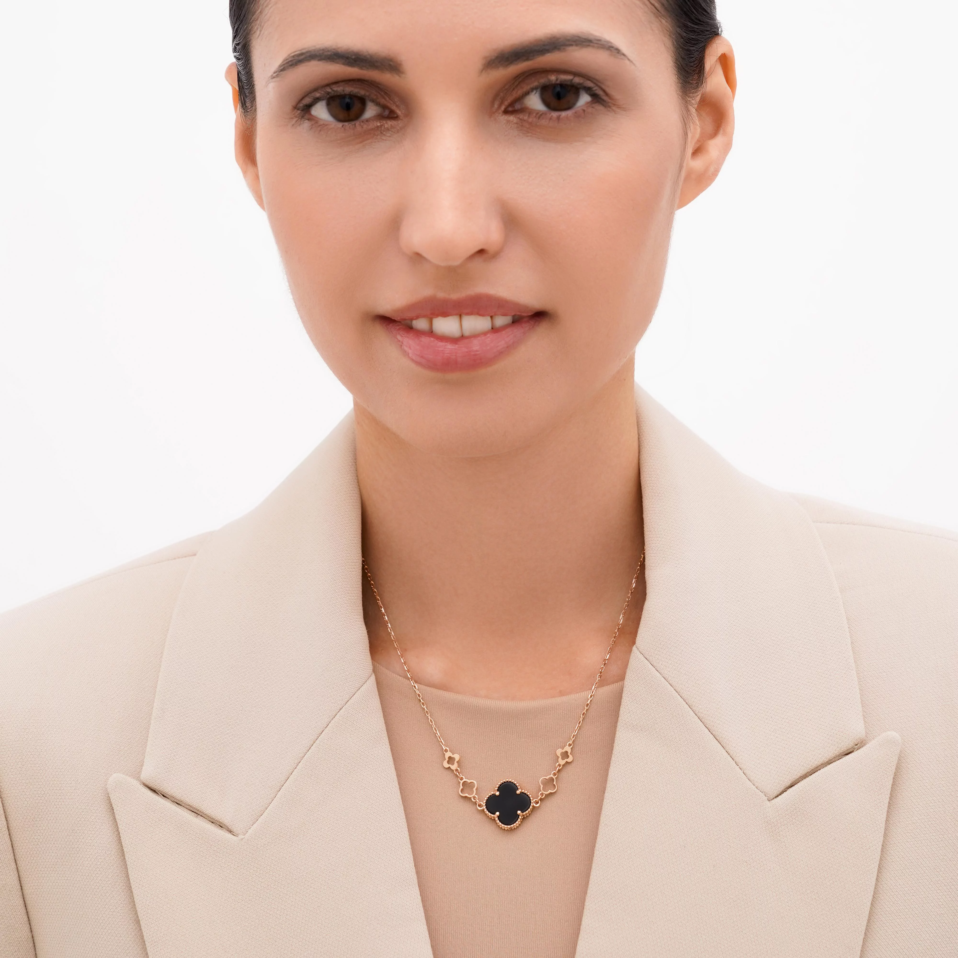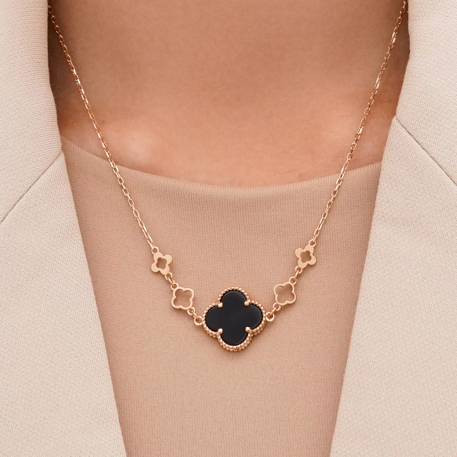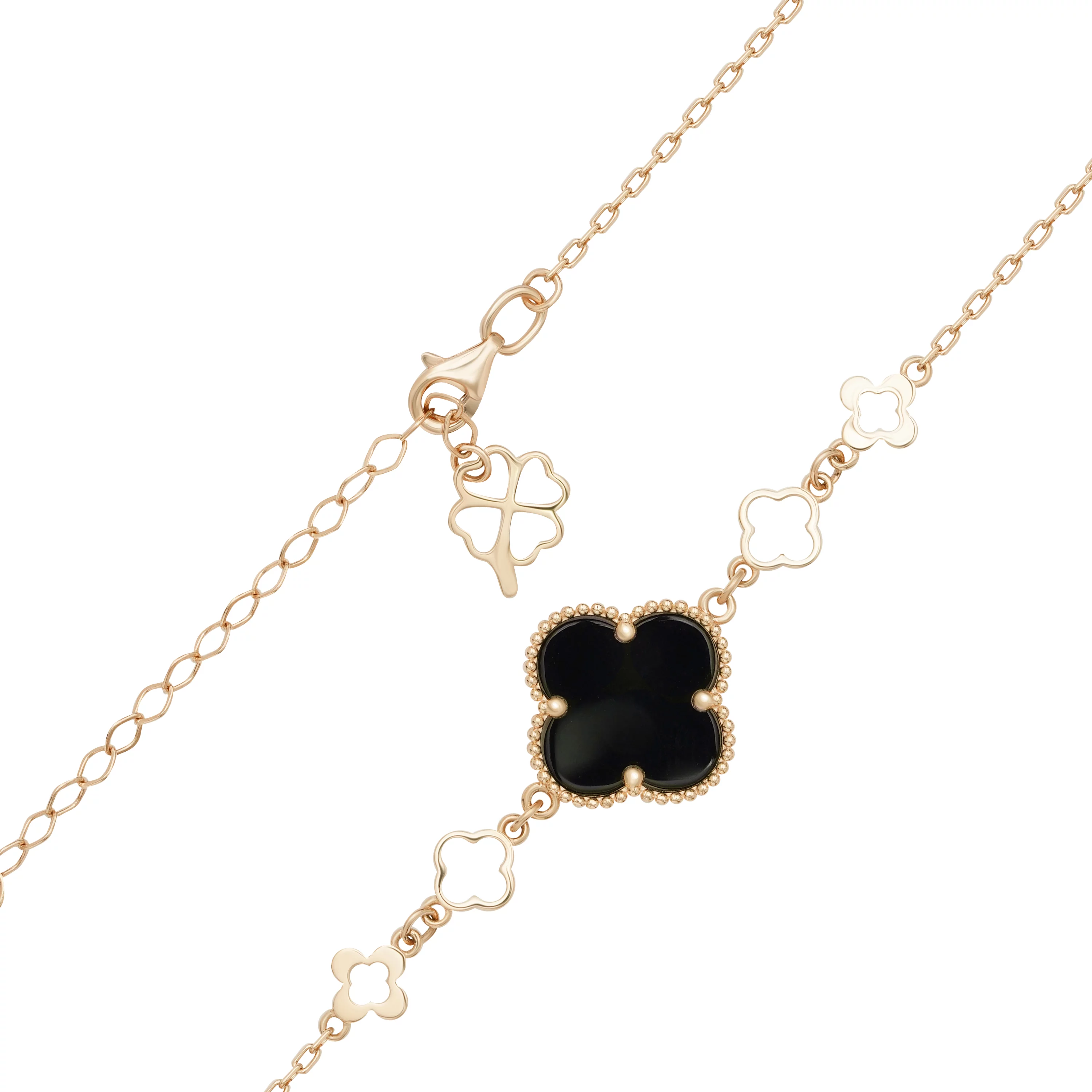 Кольє з підвісом "Конюшина" з червоного золота з оніксом якірне плетіння - 1824374