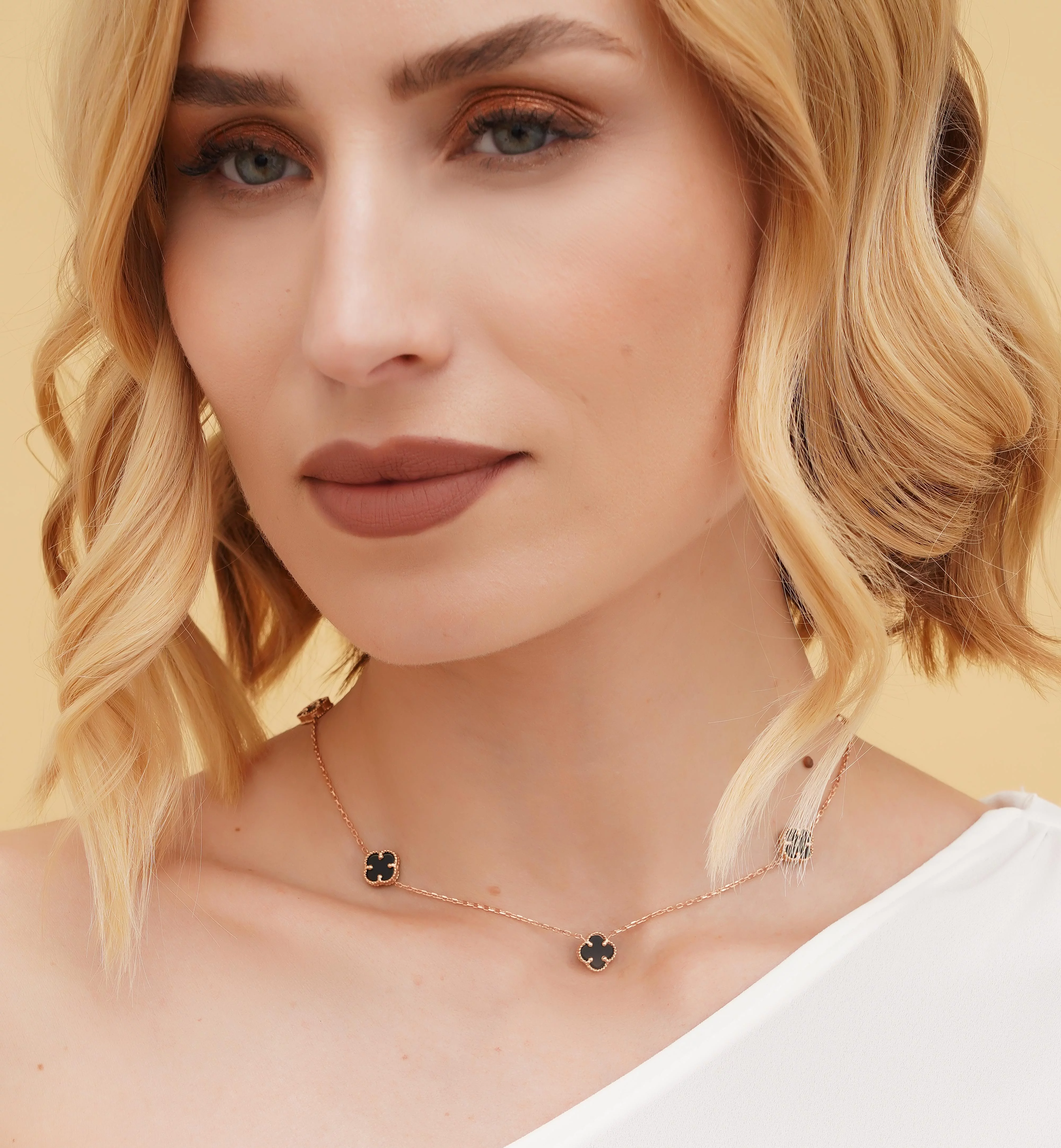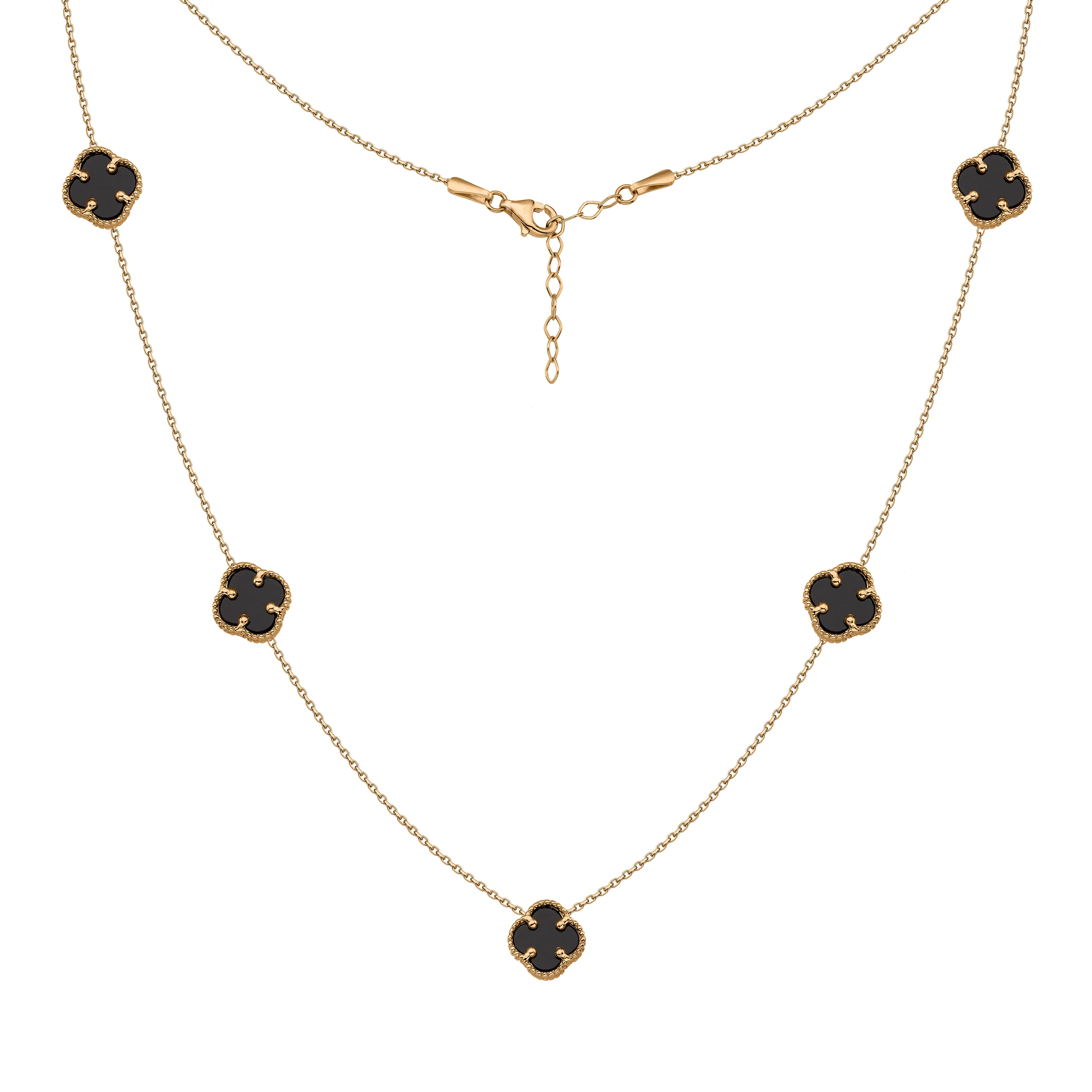 Кольє з червоного золота з підвісами із онікса "Конюшина" у якірному плетінні - 1744970