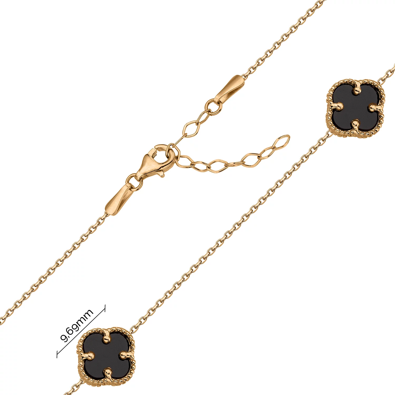 Кольє в червоному золоті з підвісами "Конюшина" з оніксом плетіння якірне - 1567397
