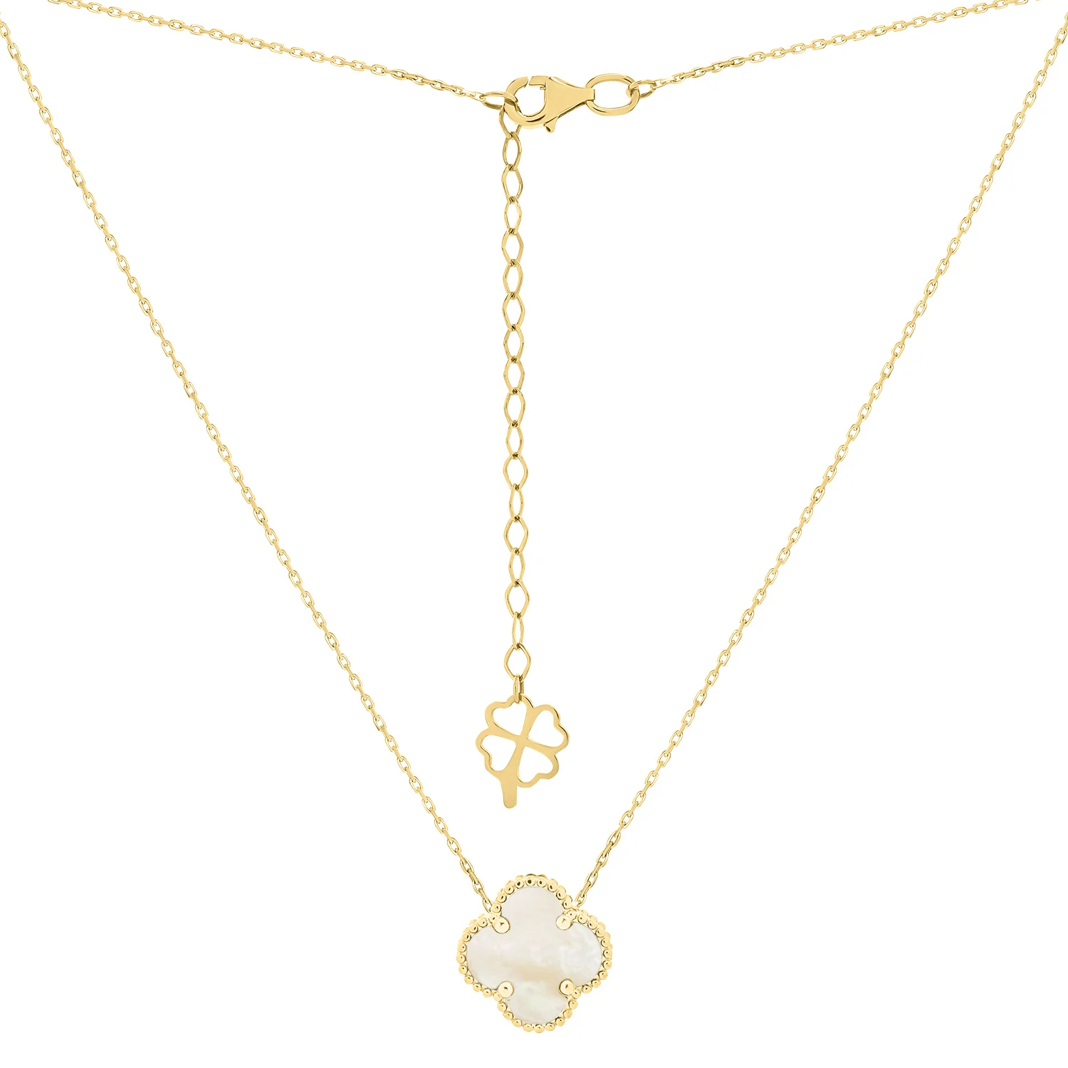 Кольє у жовтому золоті "Конюшина" з перламутром в якірному плетінні - 1658151
