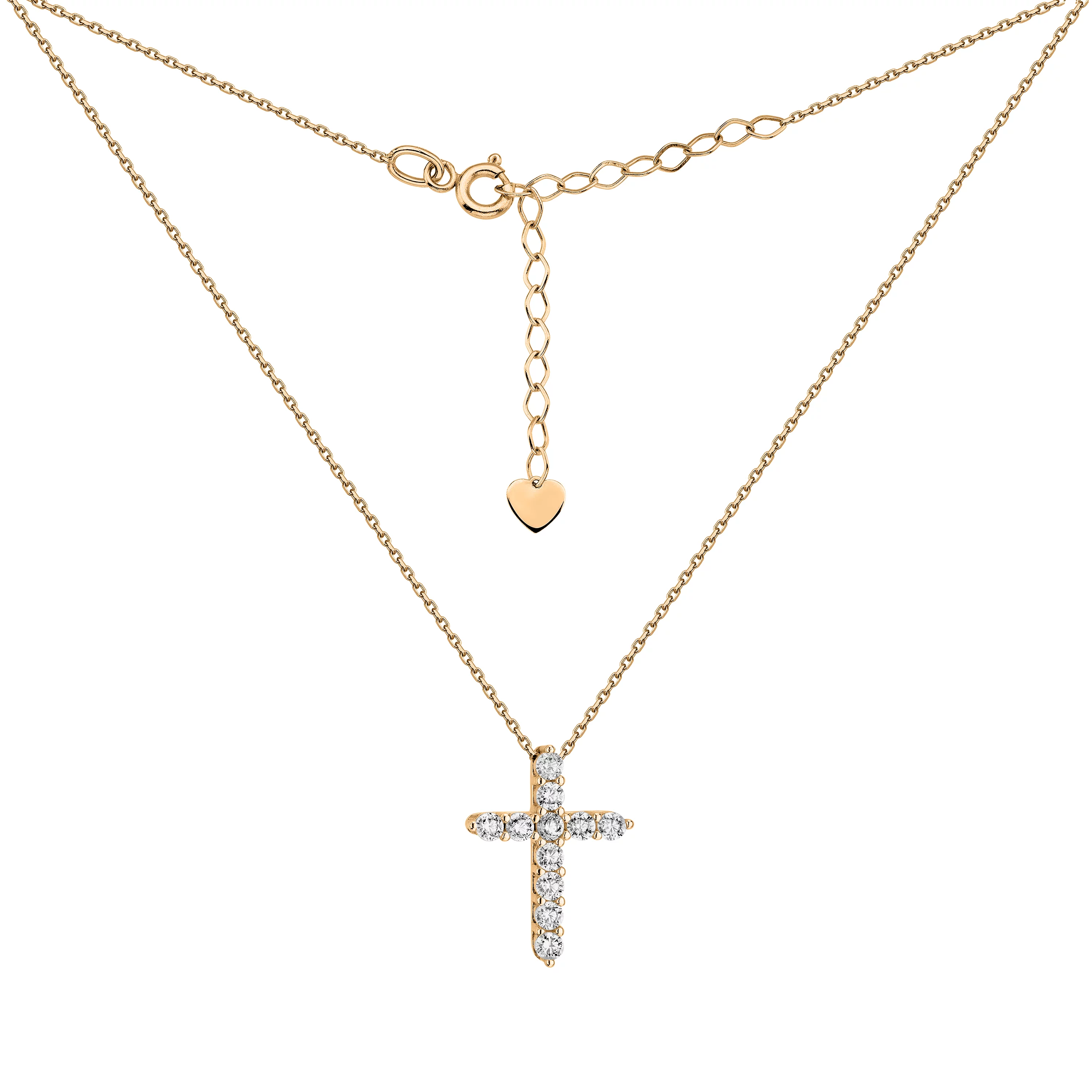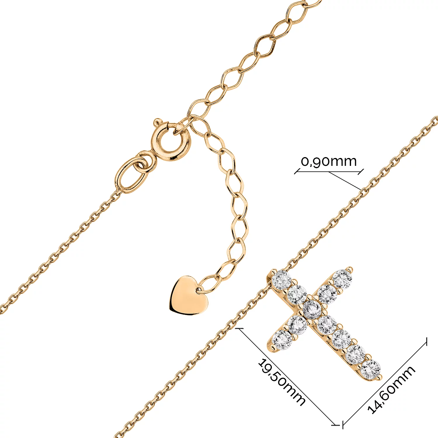 Ланцюжок з жовтого золота з підвісом "Хрестик" та фіанітамита з якірним плетінням - 1688851