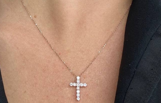 Ланцюжок з підвісом "Хрестик" з білого золота з фіанітами та якірним плетінням - 1858400