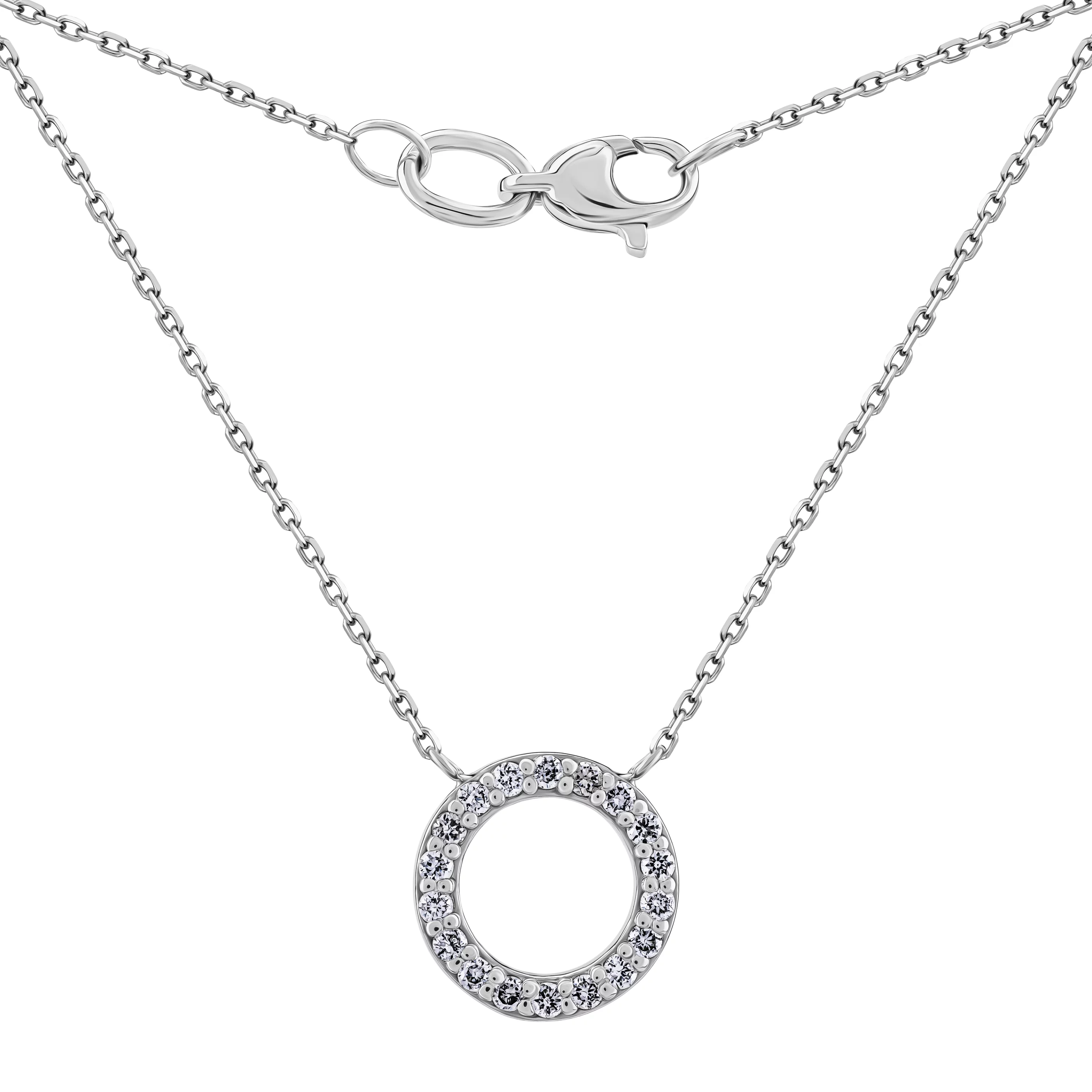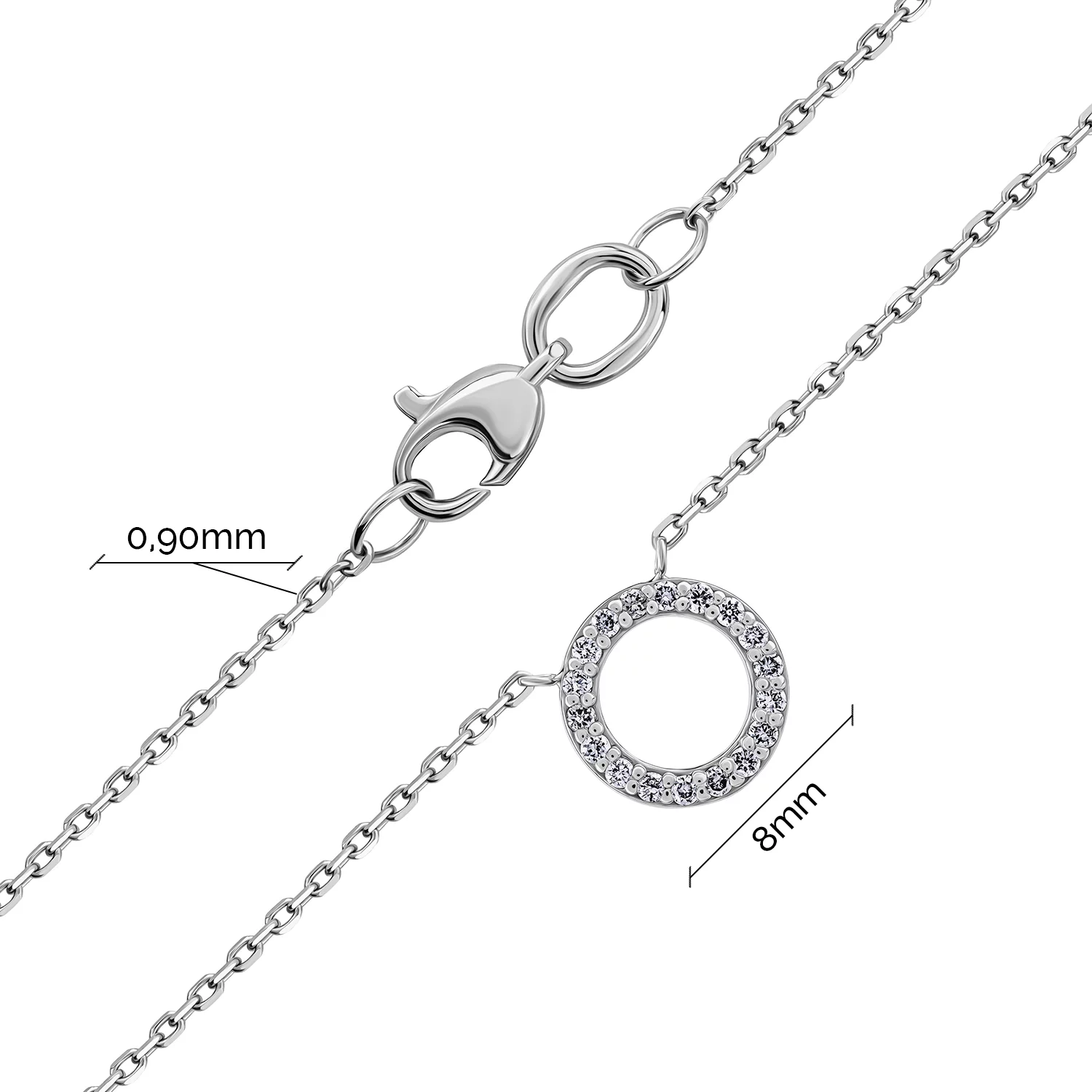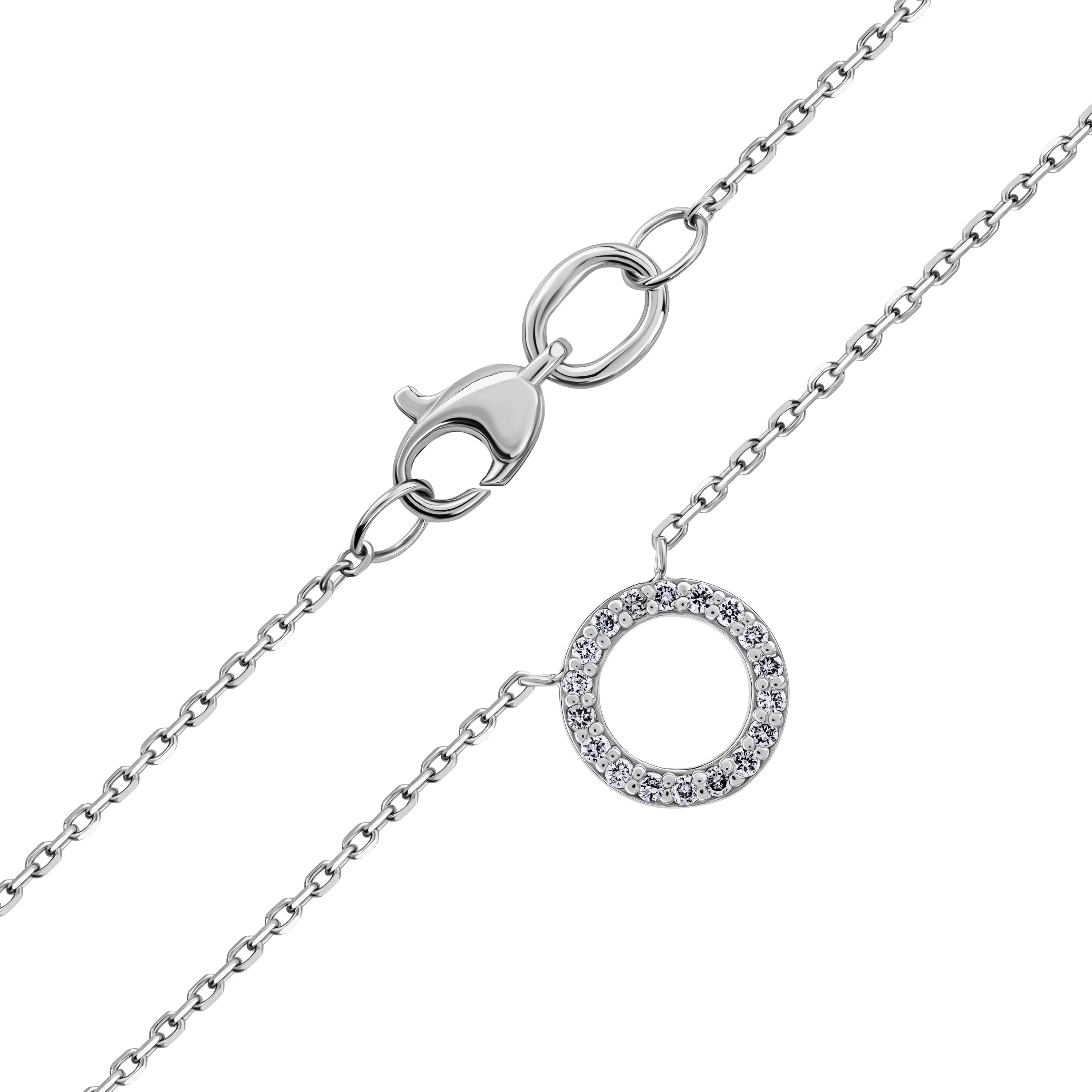 Елегантний ланцюжок з підвісом з білого золота з фіанітами та якірним плетінням - 1870301