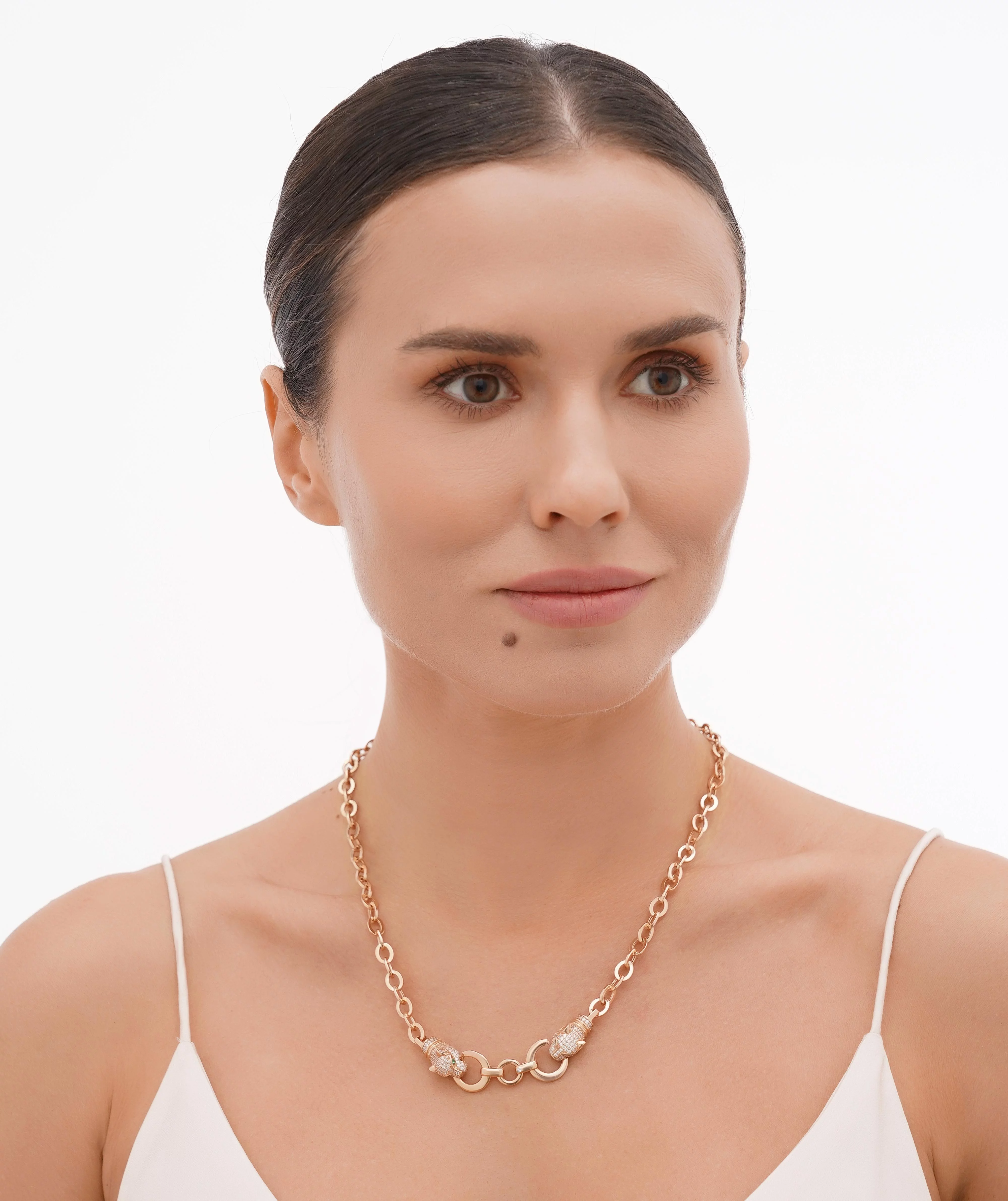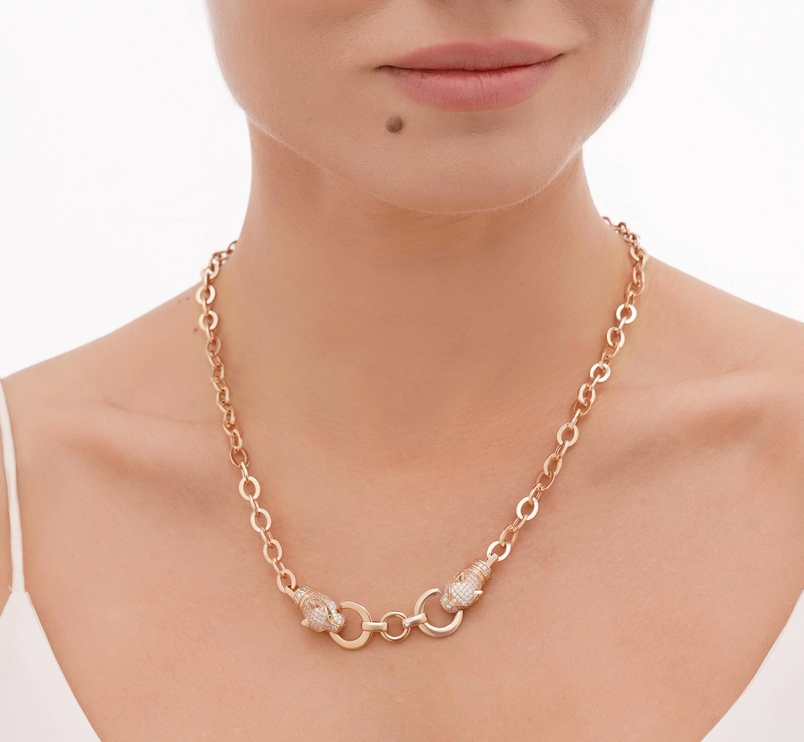 Кольє з підвісом "Пантера" з червоного золота з фіанітами плетіння якір - 1615115