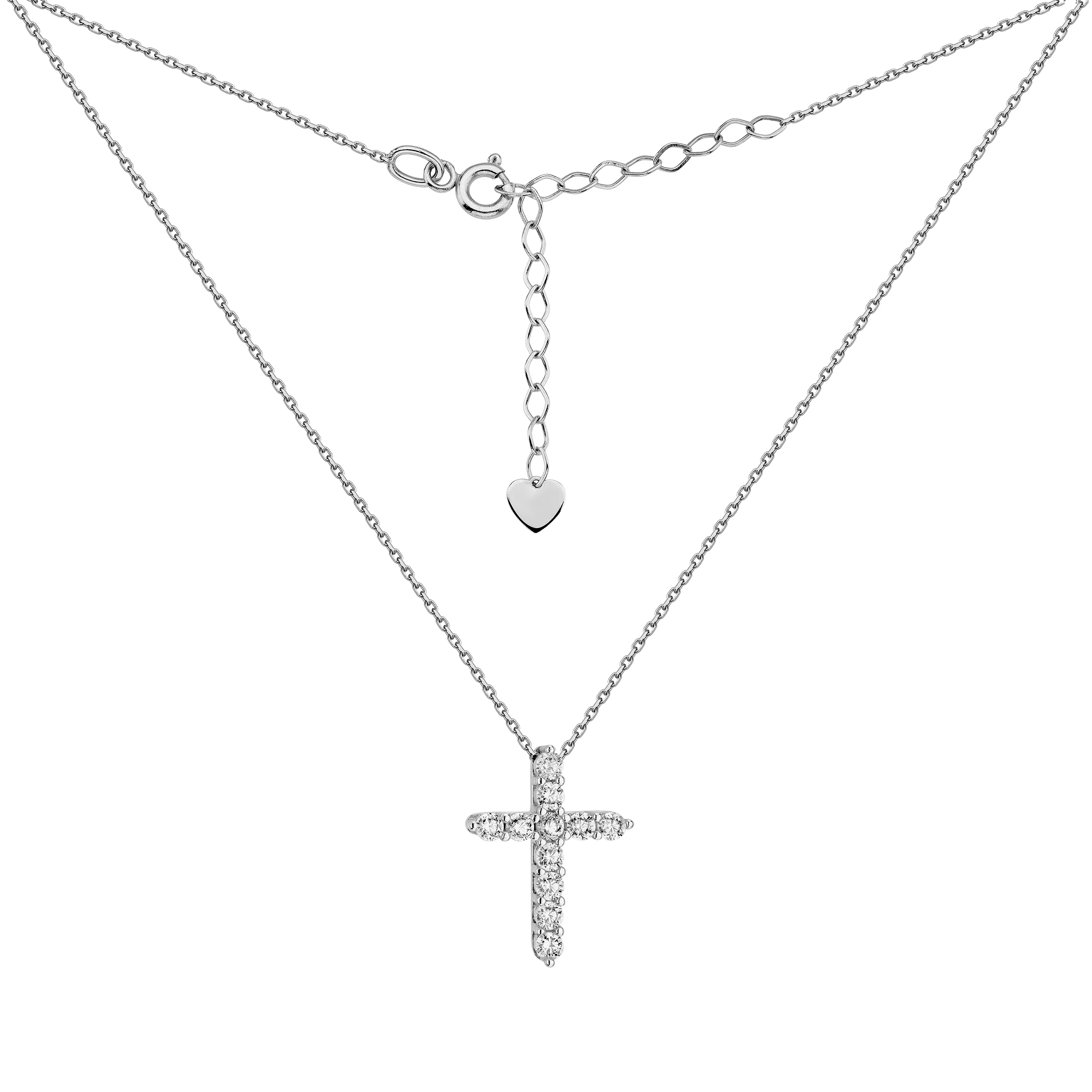 Елегантне кольє із білого золота з підвіскою "Серце" з плетінням шопард та якір і фіанітами - 1878821