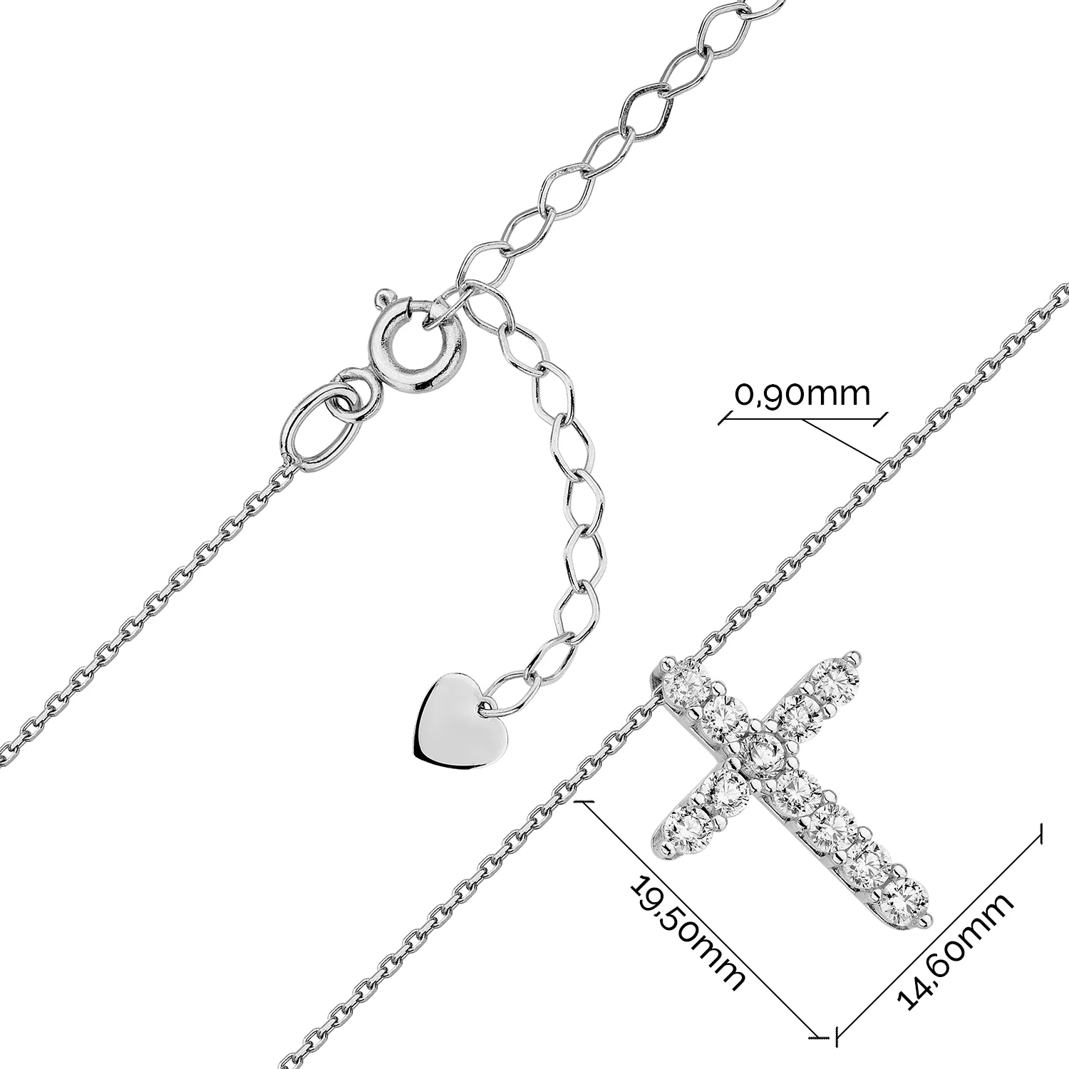 Ланцюжок із підвіскою з білого золота з фіанітом якірне плетіння - 890860