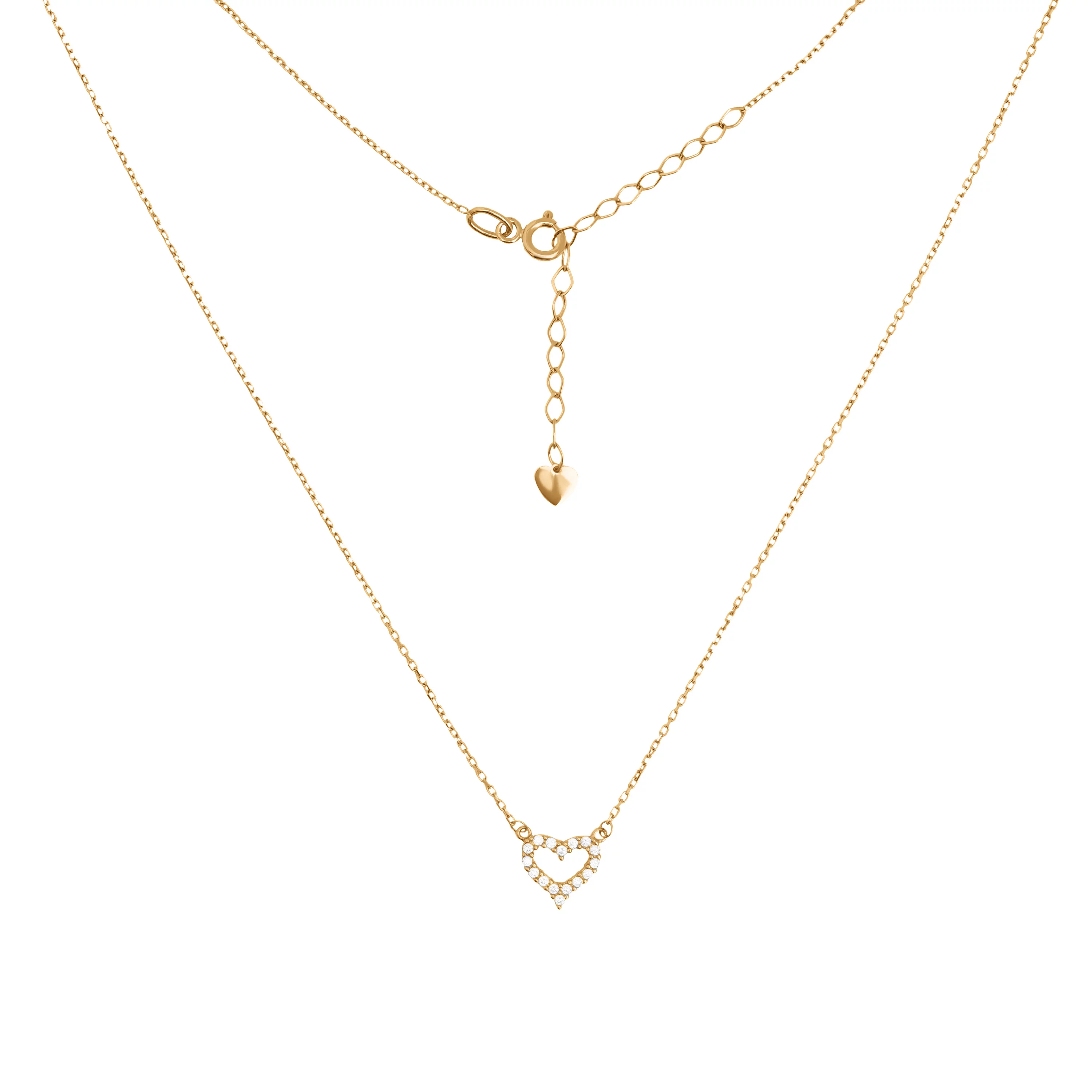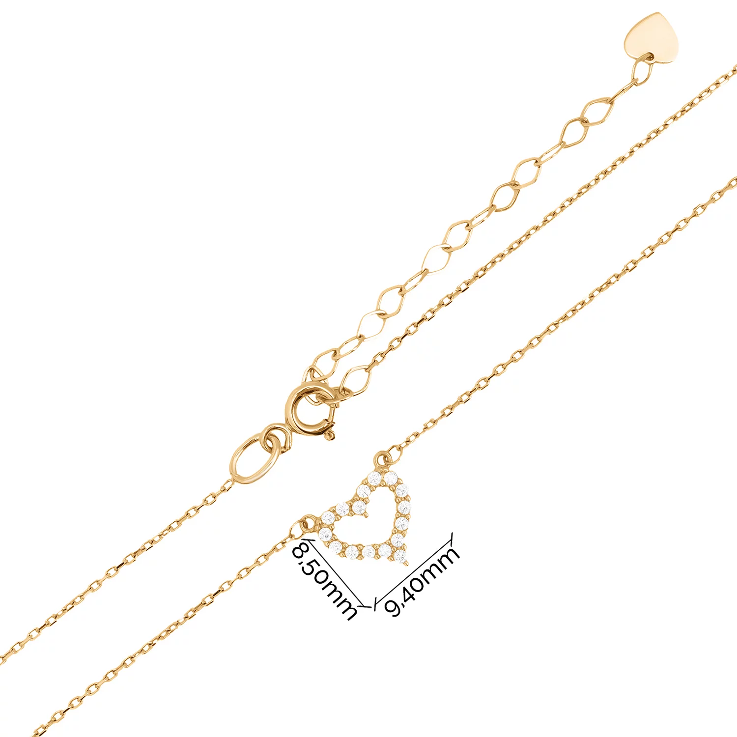 Кольє з підвісом "Серце" з жовтого золота з доріжкою з фіанітів з плетінням шопард та якір - 1878844