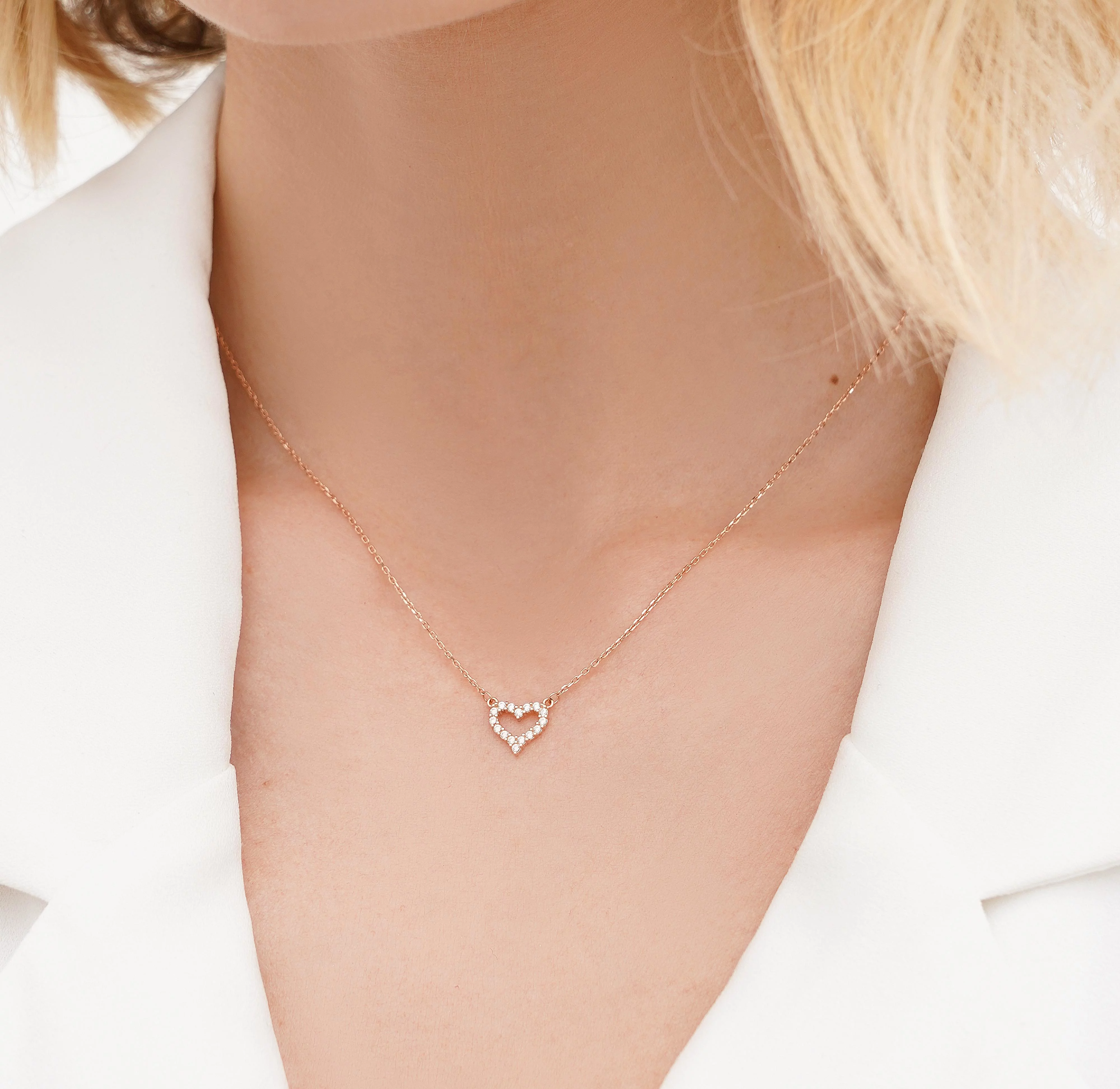 Кольє з червоного золота з підвісом "Серце" з фіанітами з плетінням шопард та якір - 1878746