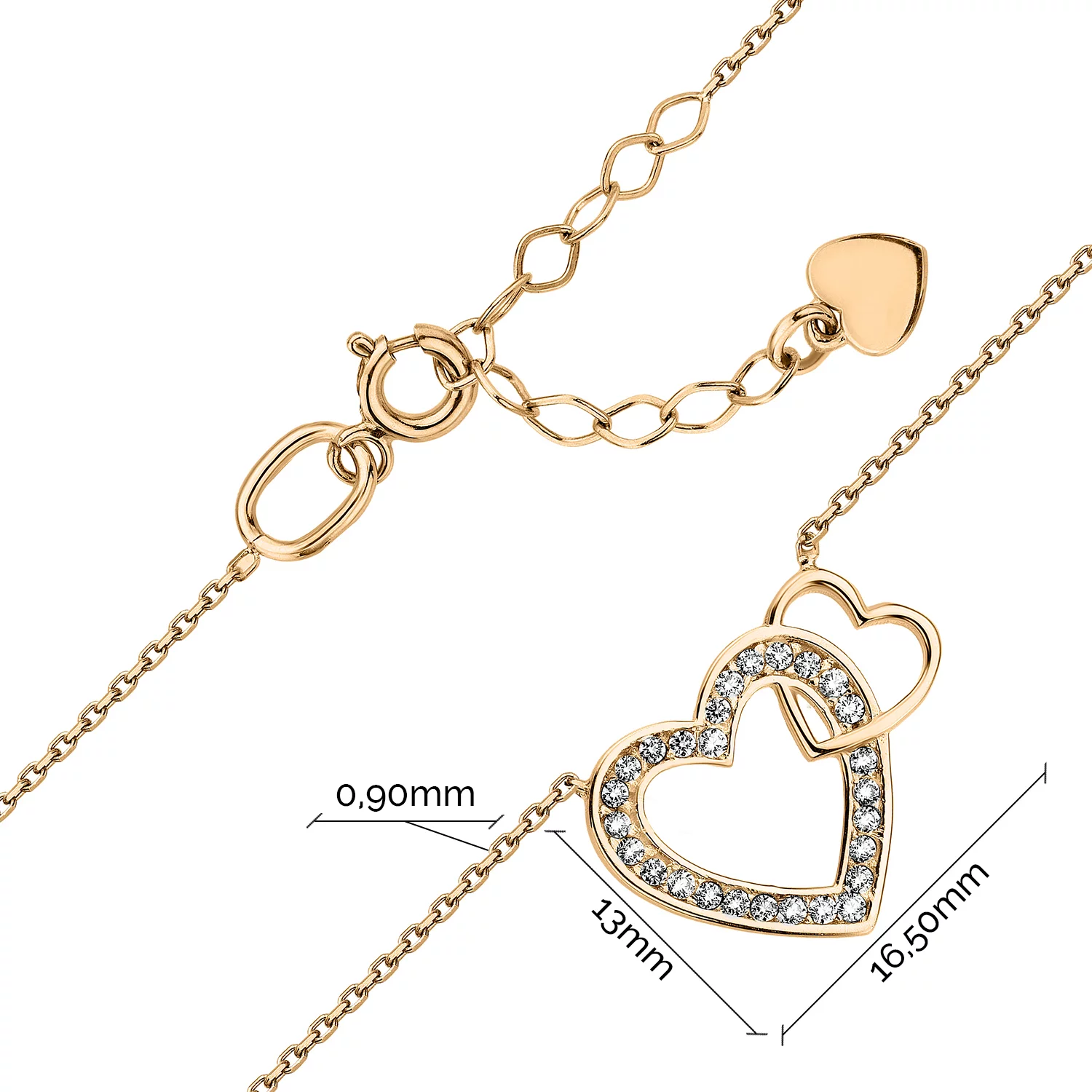 Елегантний ланцюжок з підвісом "Серце" з червоного золота з якірним плетінням та фіанітами - 1923915