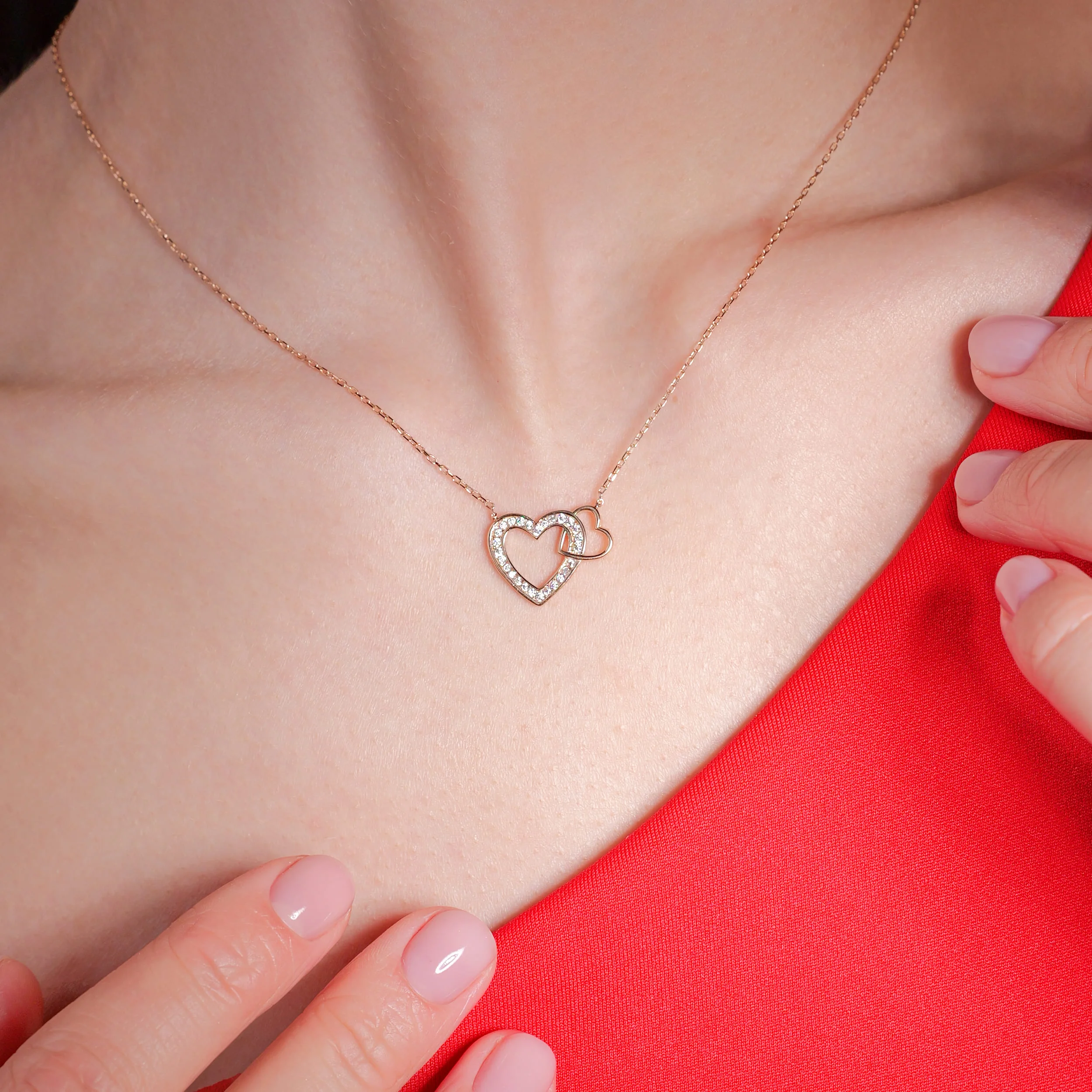 Кольє в червоному золоті з підвіскою "Сердечко" з фіанітами плетіння якір та шопард - 1618795