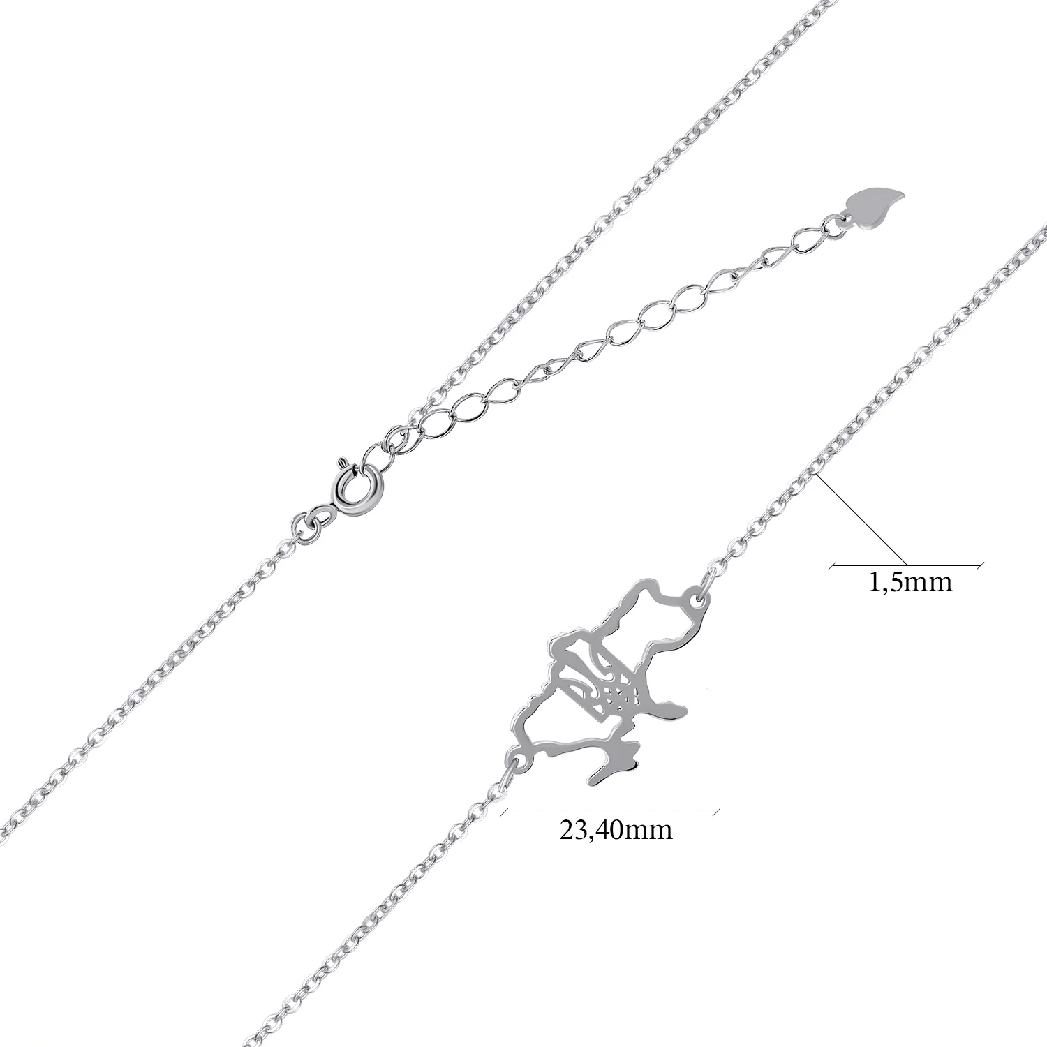 Ланцюжок зі срібла з підвіскою "Тризуб - Герб України" якірне плетіння - 1680237