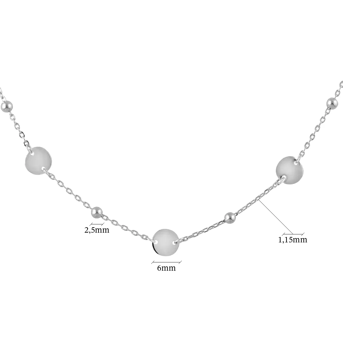 Кольє срібне з кульками та монетками у плетінні якір - 963963