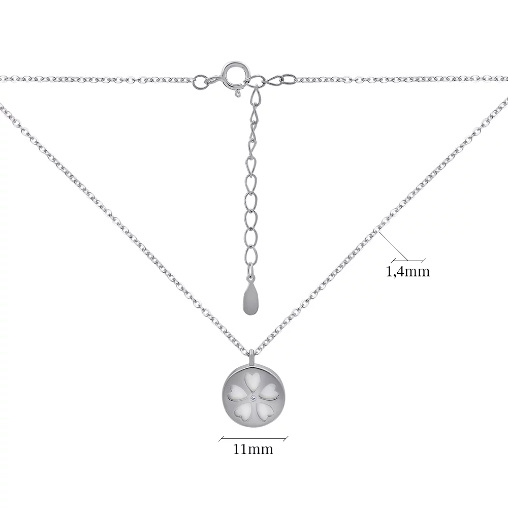 Ланцюжок зі срібла з підвіскою "Квіточка" з фіанітом і перламутром у якірному плетінні - 1265176