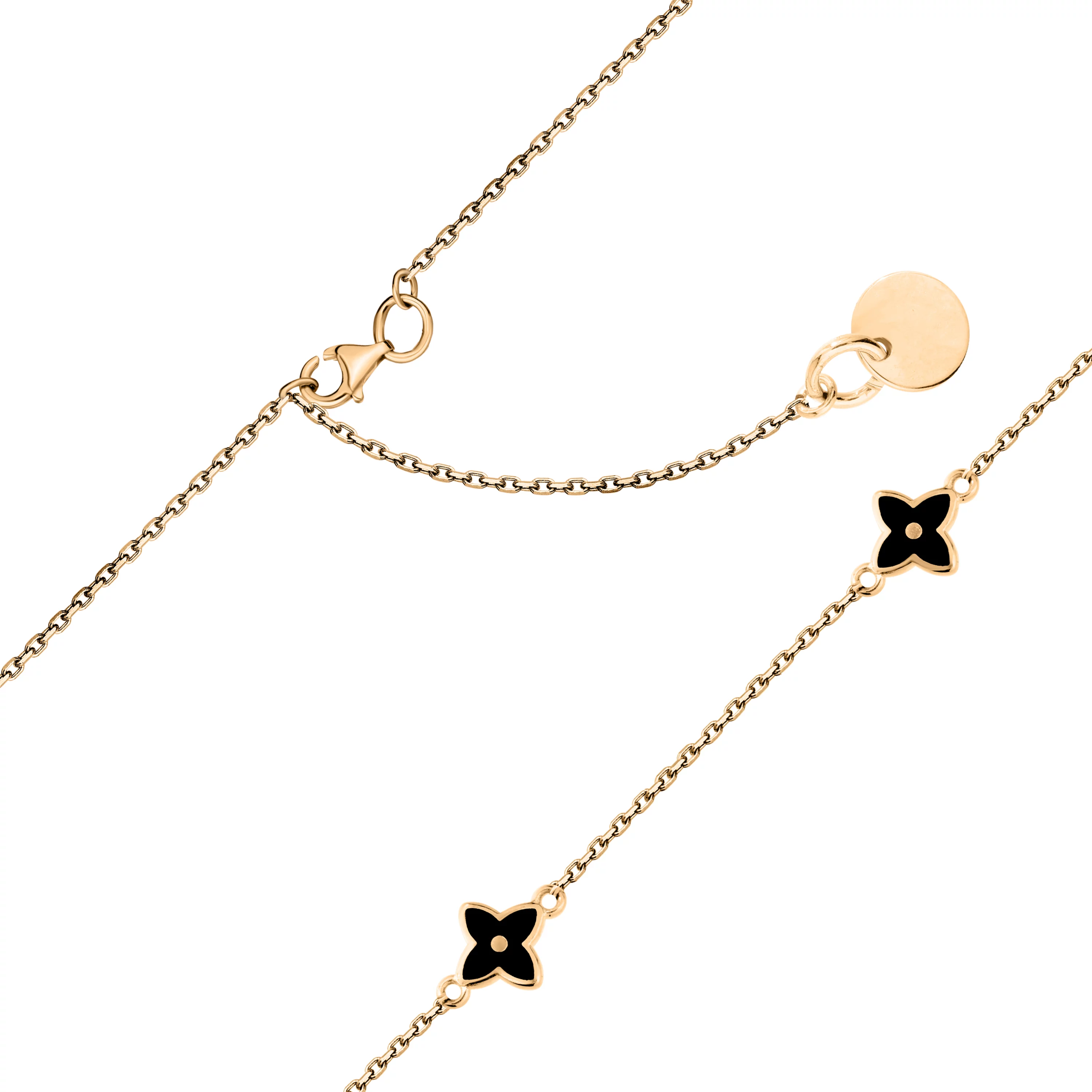 Кольє з підвісами "Конюшина" з червоного золота з якірним плетінням та емаллю - 1918229