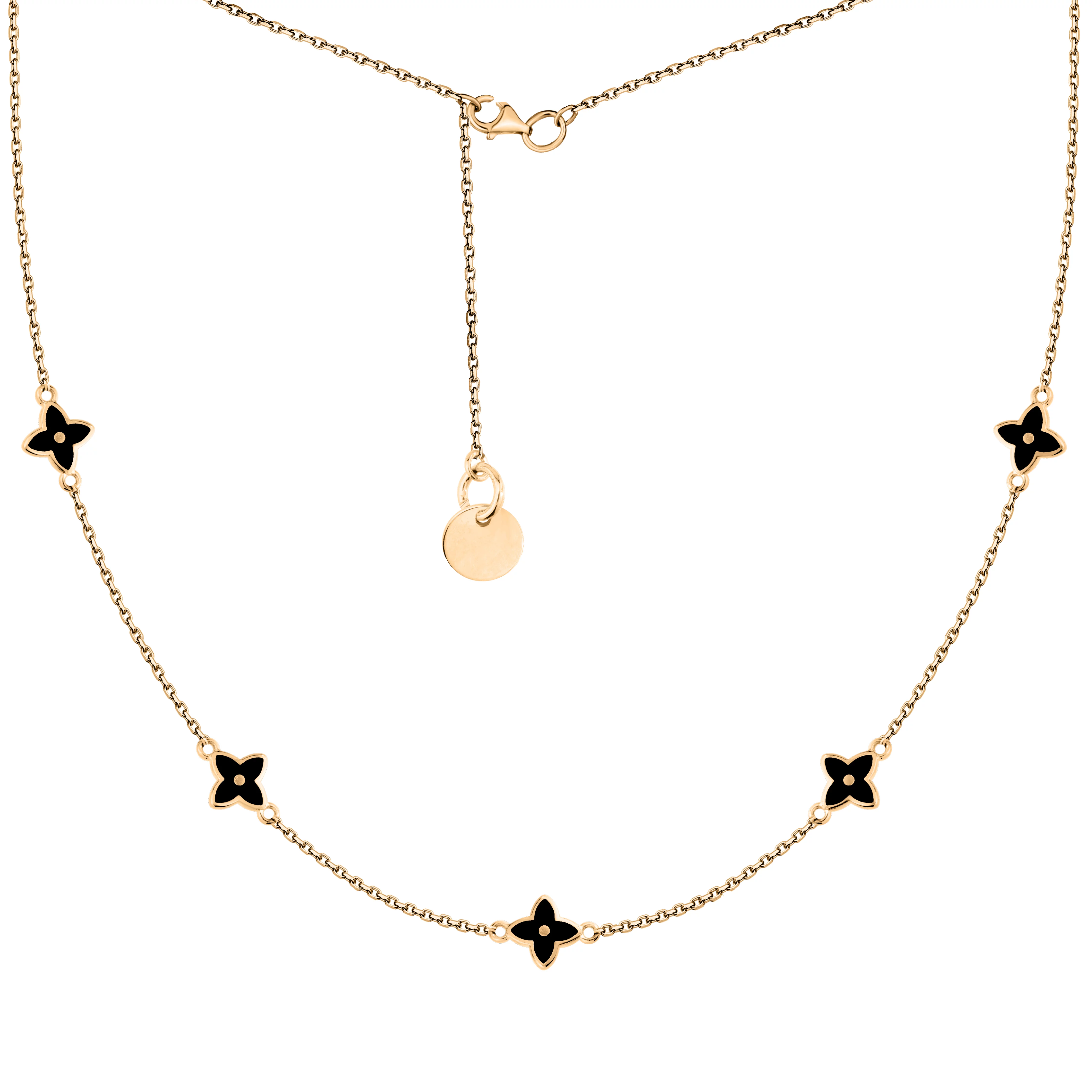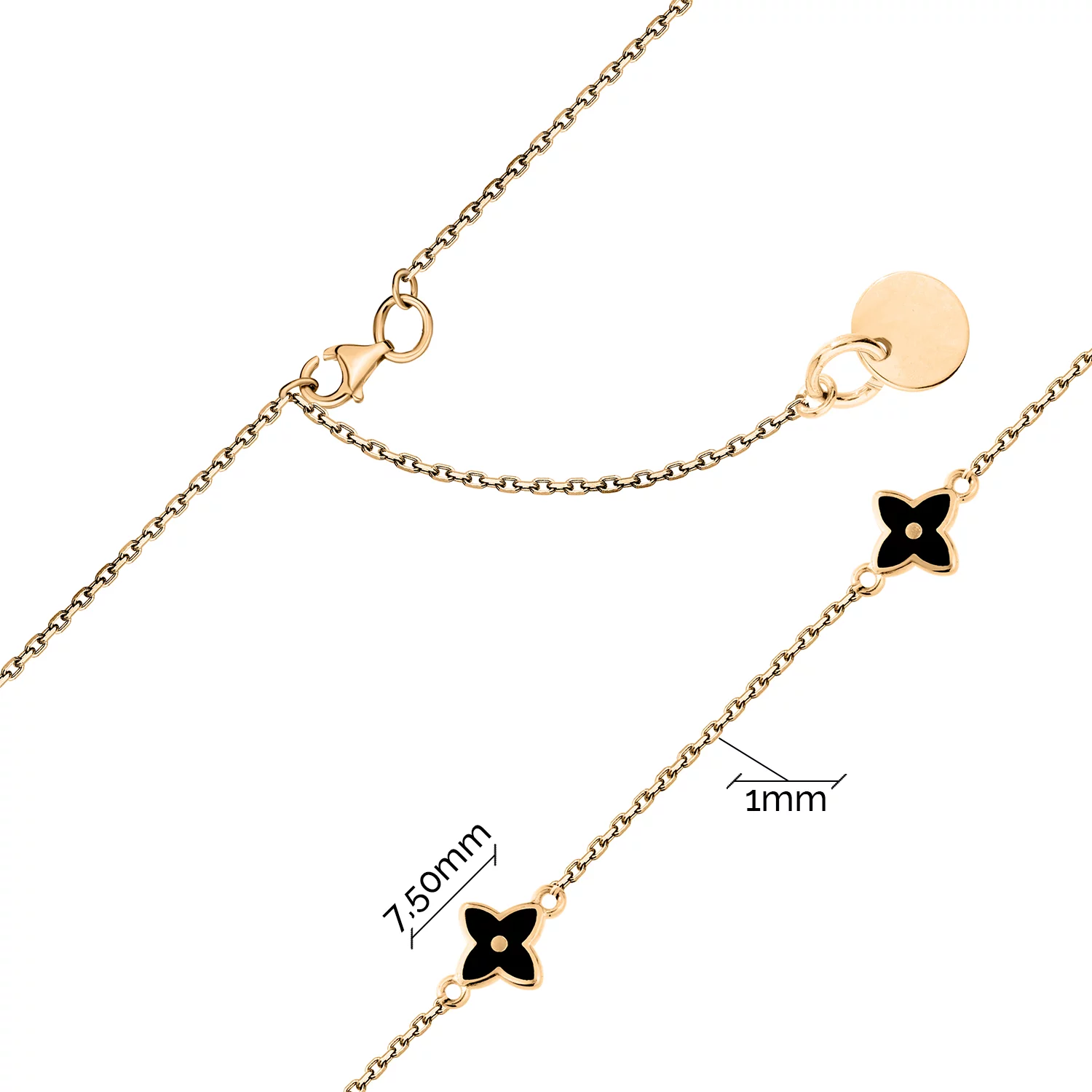Стильне кольє з підвісами "Квіти" в жовтому золоті з емаллю та якірним плетінням - 1879339
