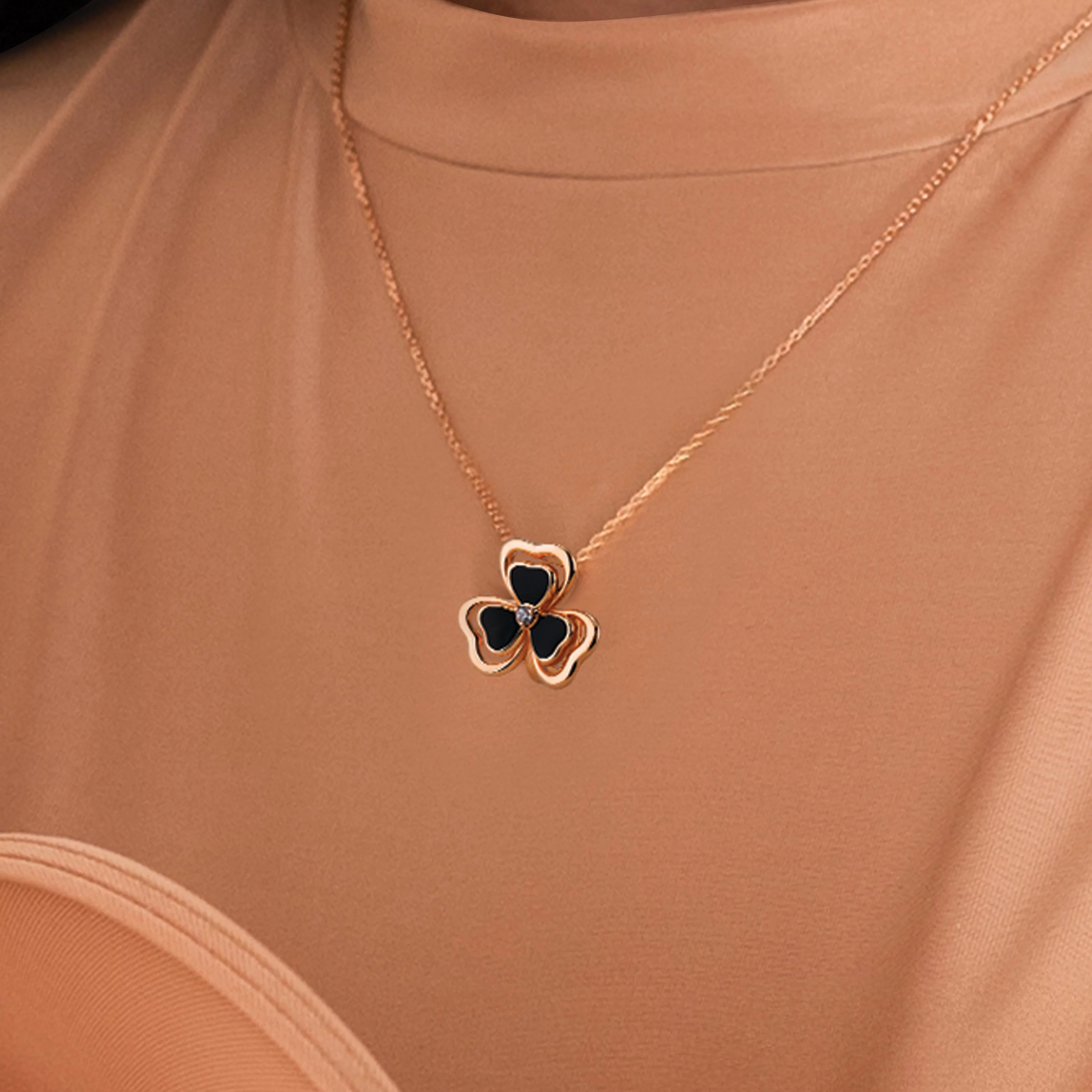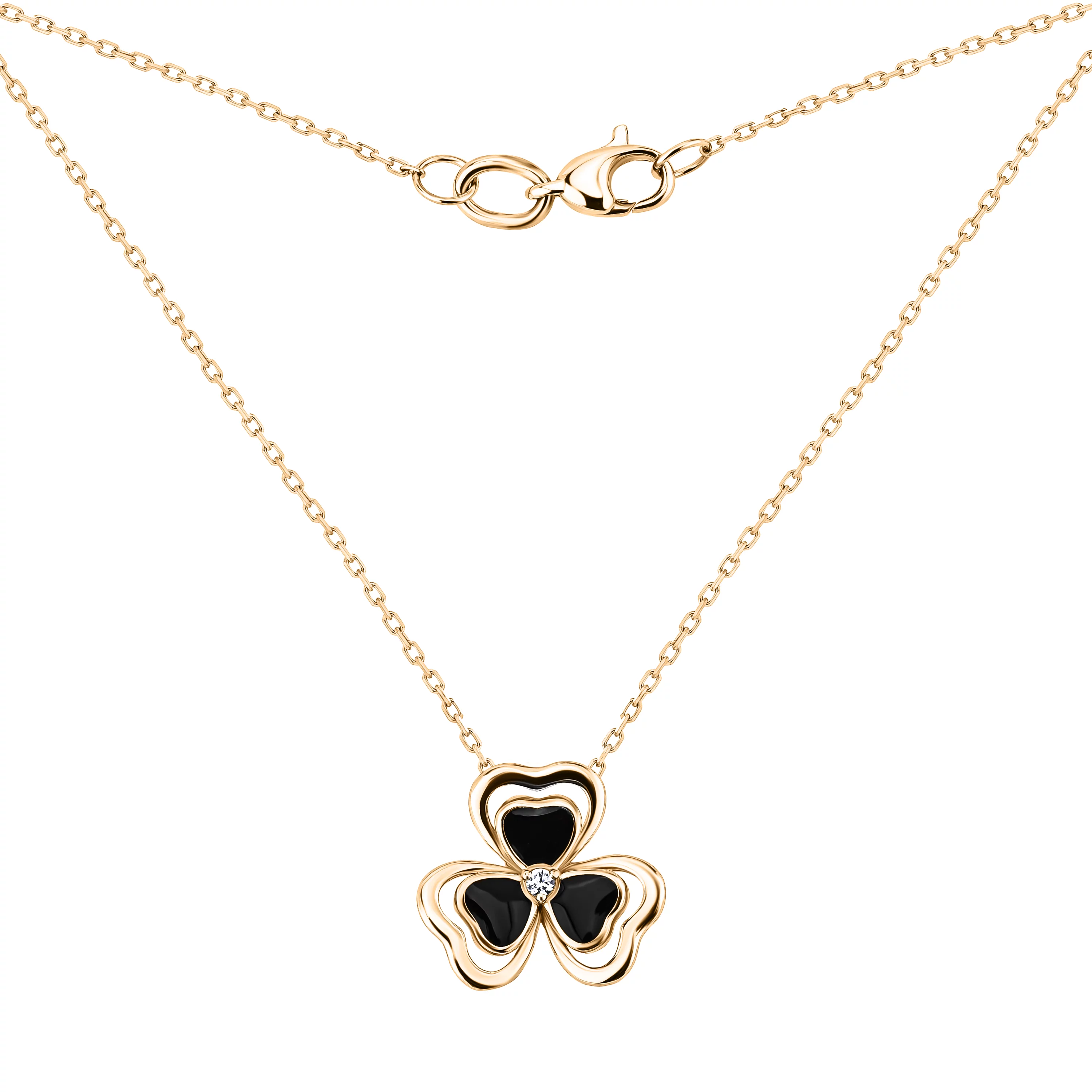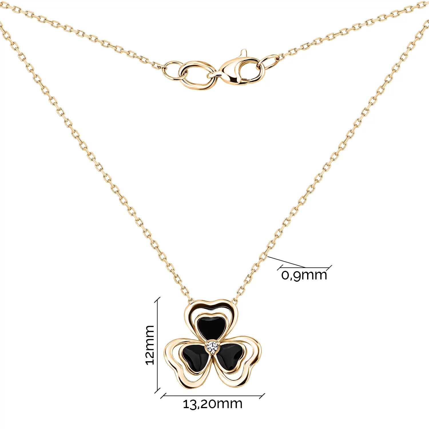 Кольє з червоного золота з підвісом "Конюшина" з фіанітом якірне плетіння - 1688537