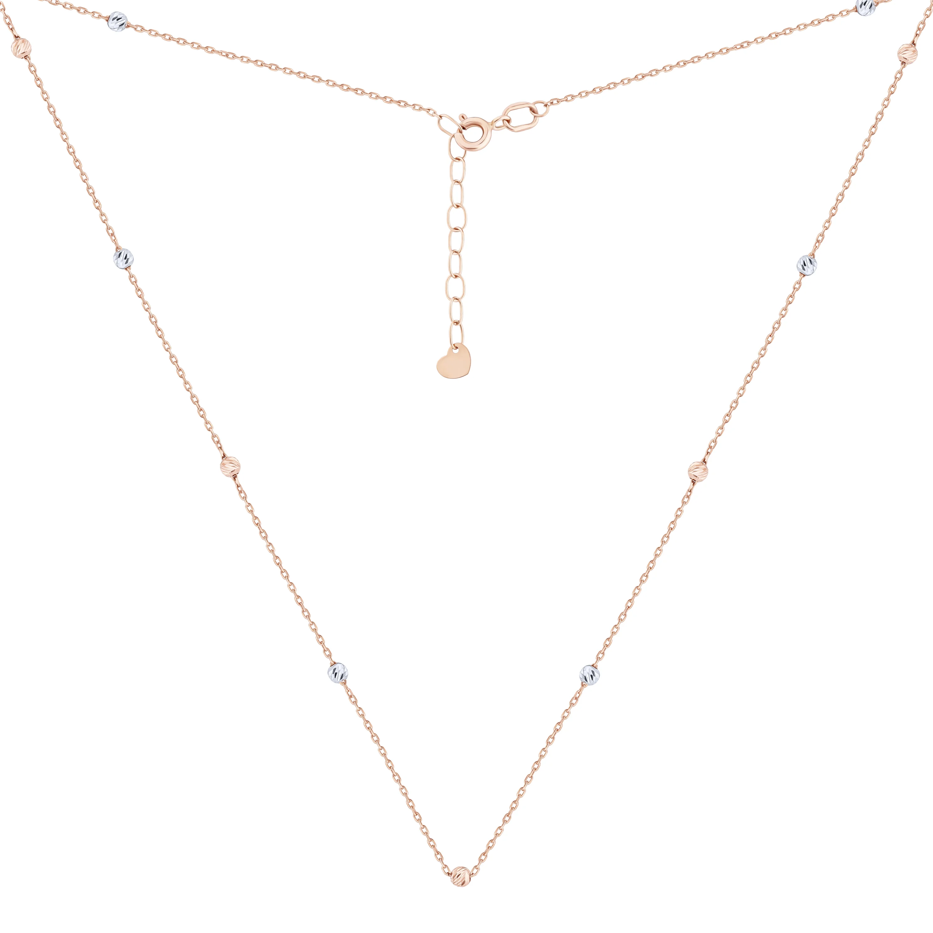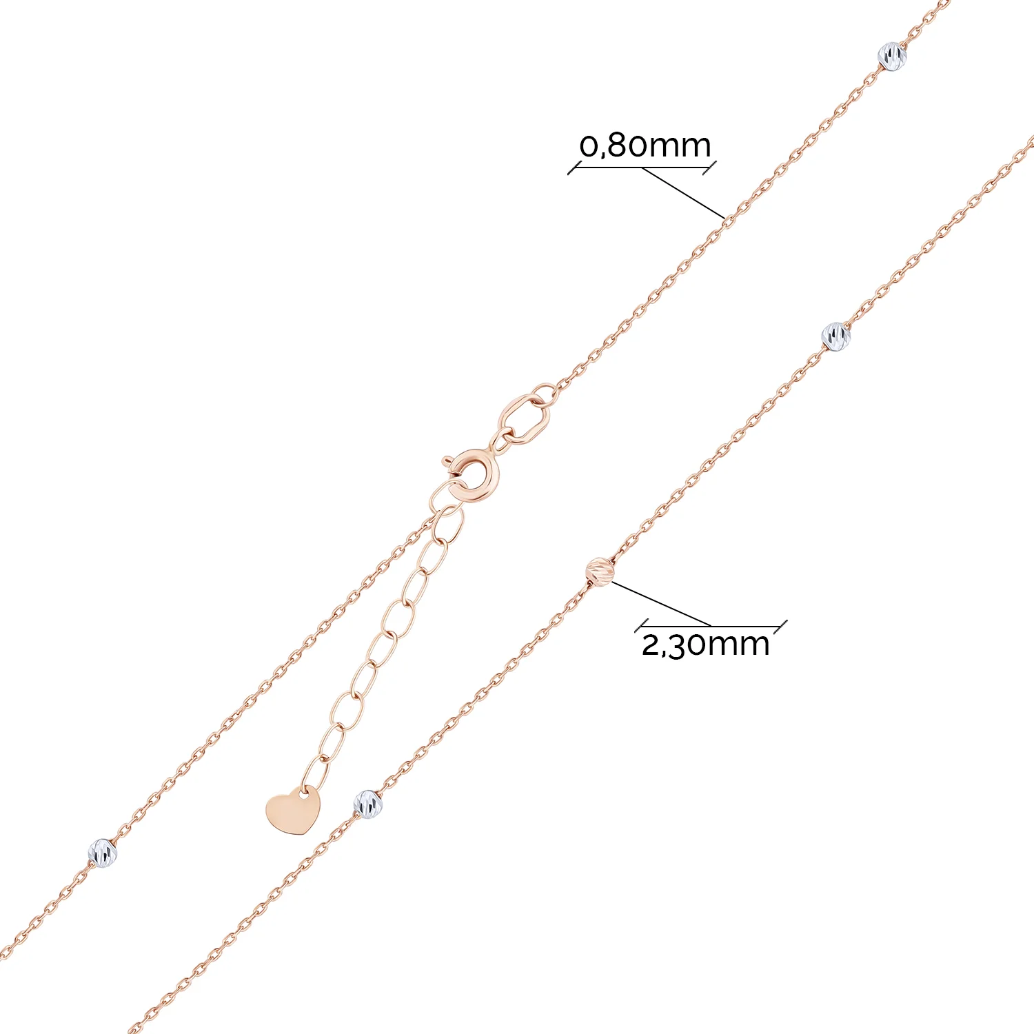 Кольє-краватка з червоного золота з кульками у плетінні якір - 1688503