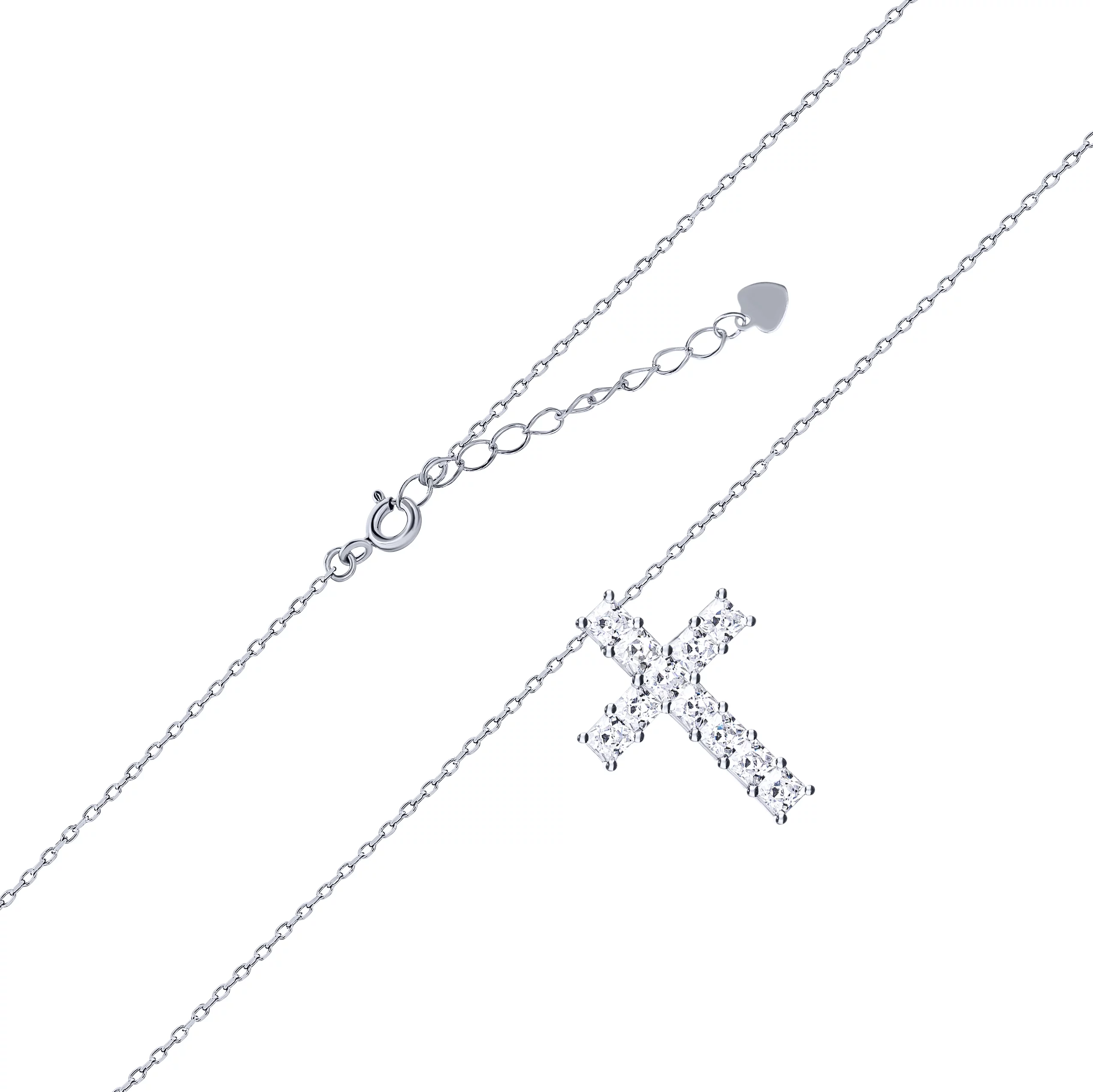 Ланцюжок з підвісом зі срібла "Хрестик" з фіанітами плетіння якір - 1820130