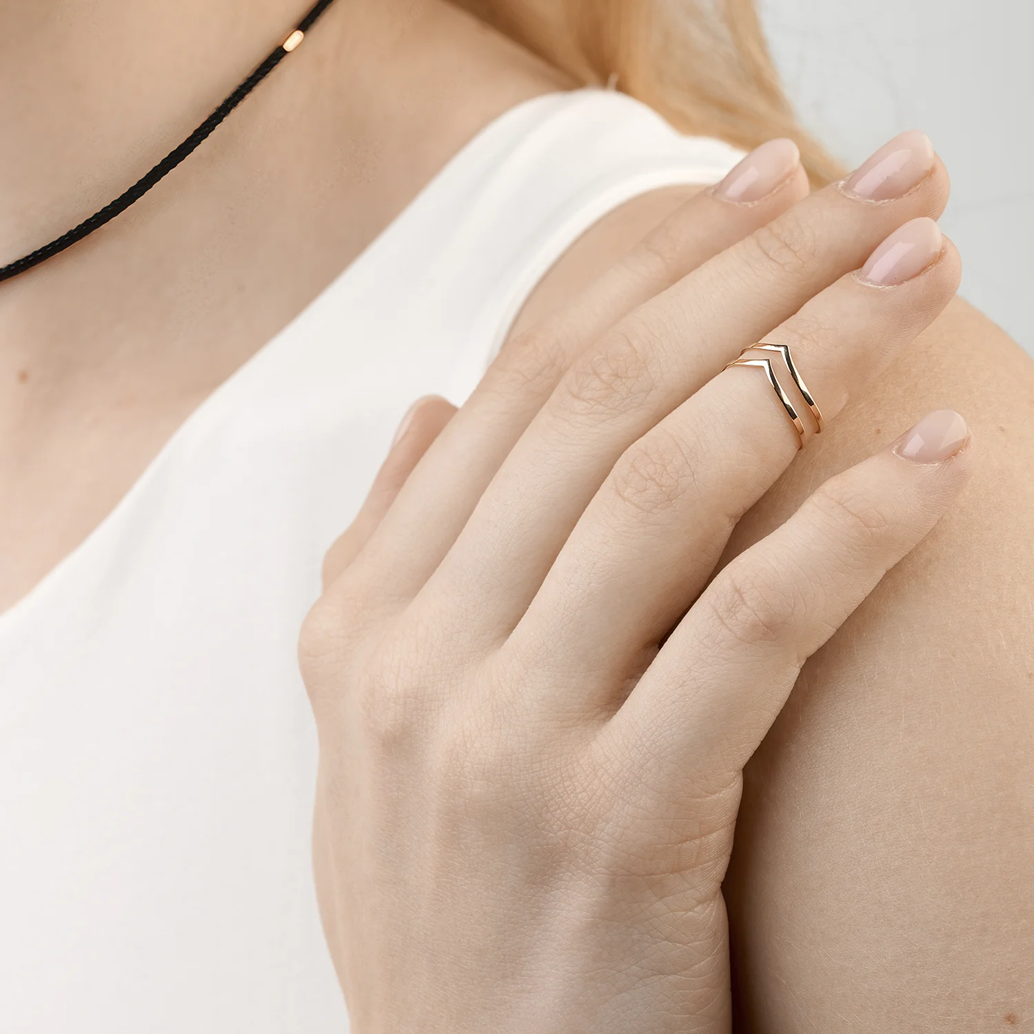 Прикраса без надмірностей, але від цього не менш помітна та оригінальна. Подвійна каблучка допоможе вам бути у тренді, наголосити на індивідуальності. Витончена модель виконана в мінімалістичному стилі. Складається з двох однакових за товщиною та формою каблучок, які носять на середній фаланзі у парі. Зроблена з червоного золота, теплий відтінок якого зігріває. Родзинка витонченого виробу – в оригінальній формі. Каблучку-міді можна носити як самостійну прикрасу або разом з іншими, схожими за дизайном. Вона практично не відчувається на пальці та не заважає.
