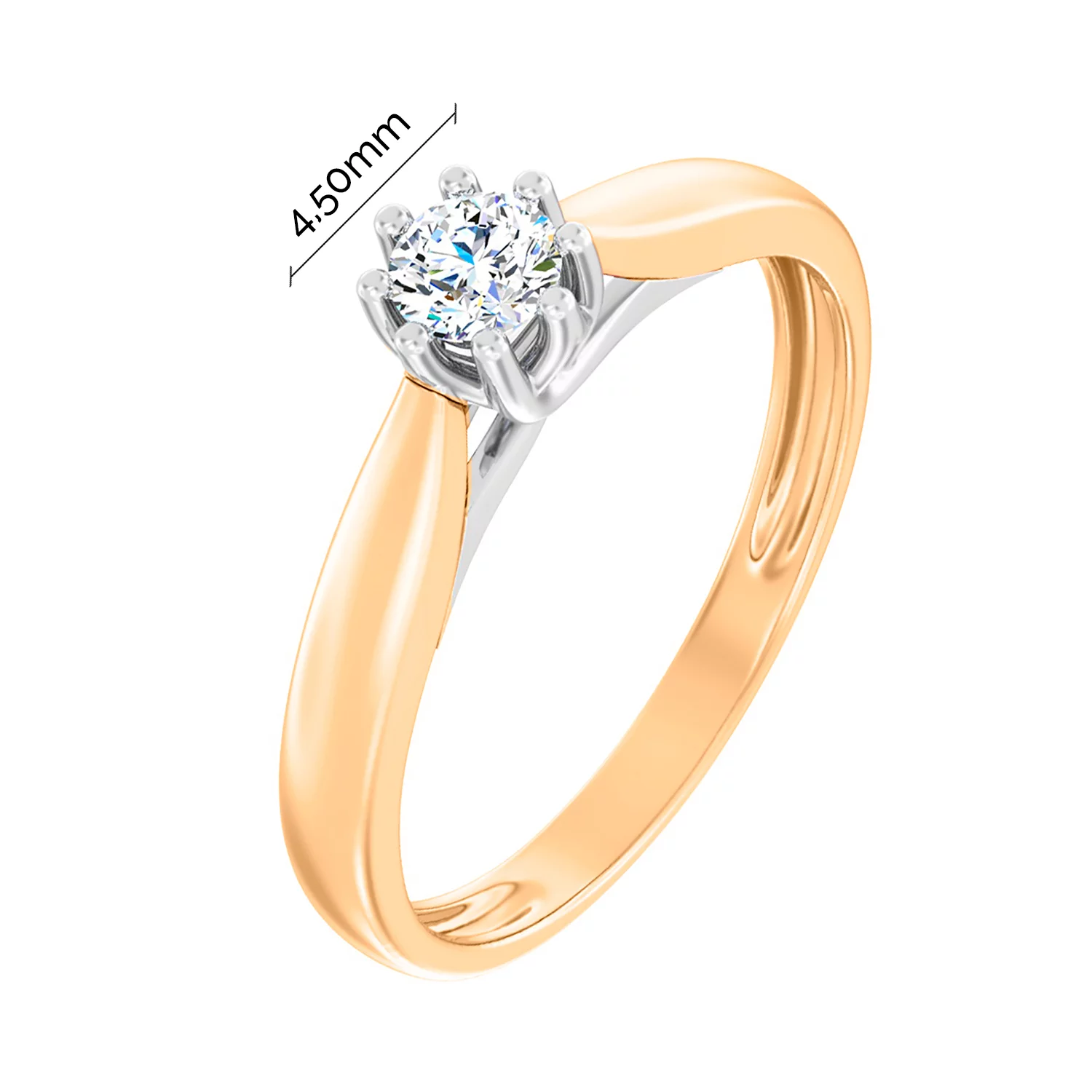 Каблучка в мінімалістичному стилі в комбінованому золоті з діамантом - 1875485