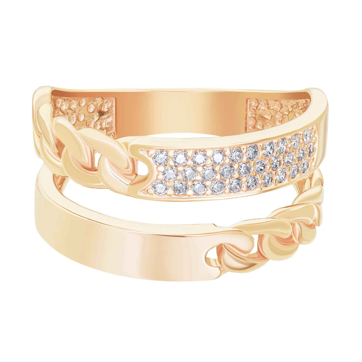 Подвійна каблучка "Переплетіння" з фіанітами з червоного золота - 1736141