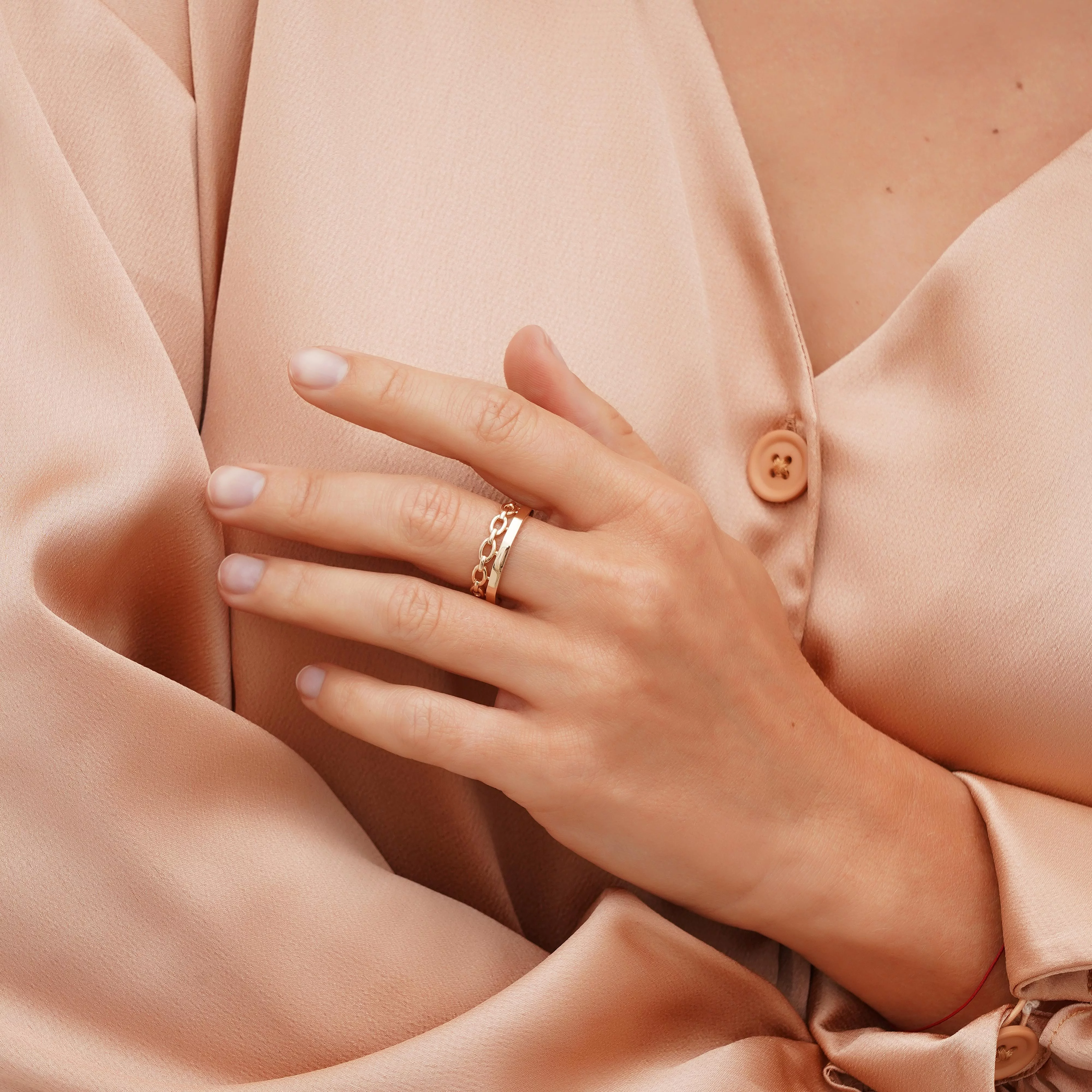 Каблучка подвійна "Ланки" в червоному золоті - 1743094