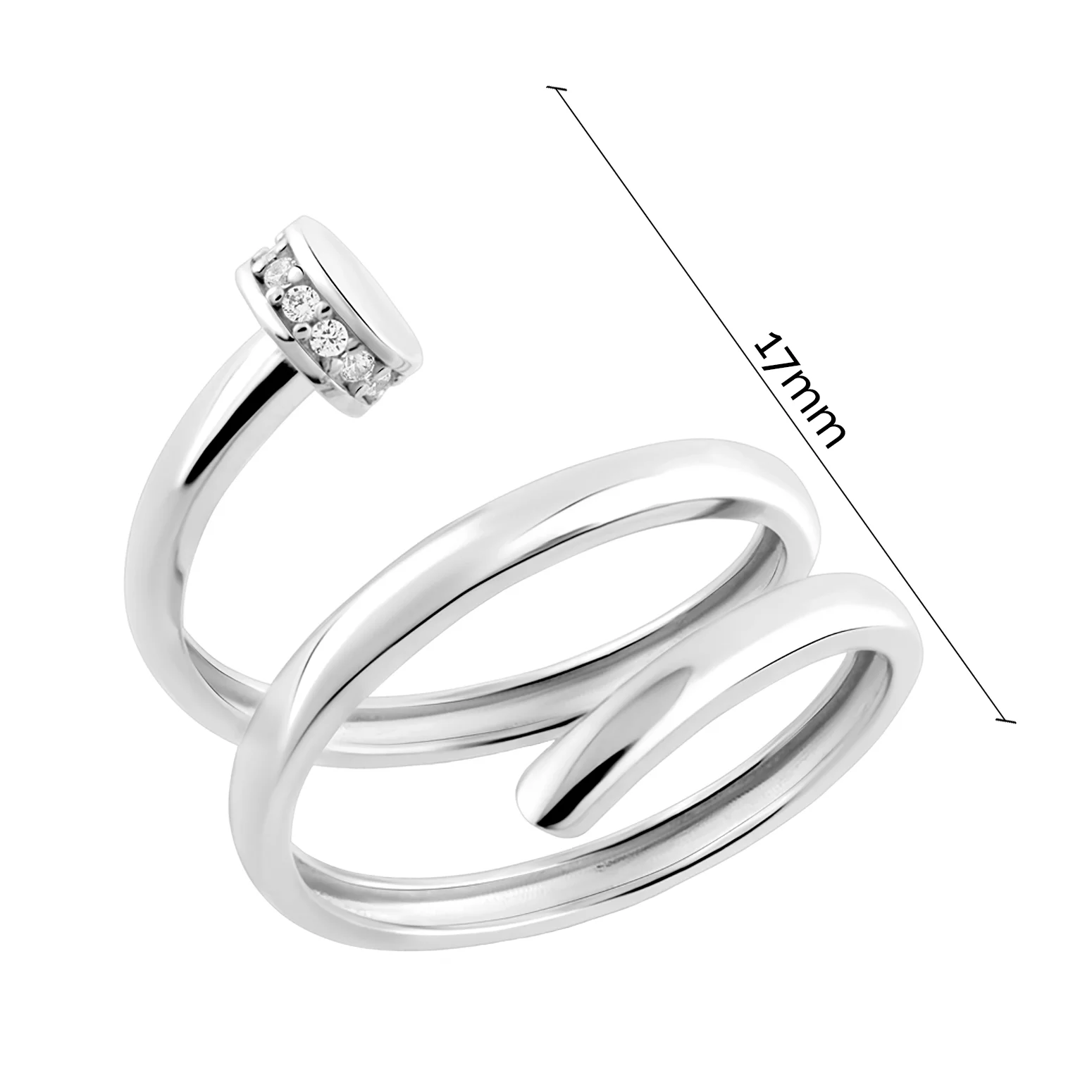 Каблучка "Цвях" із білого золота з фіанитами незамкнута - 1838837