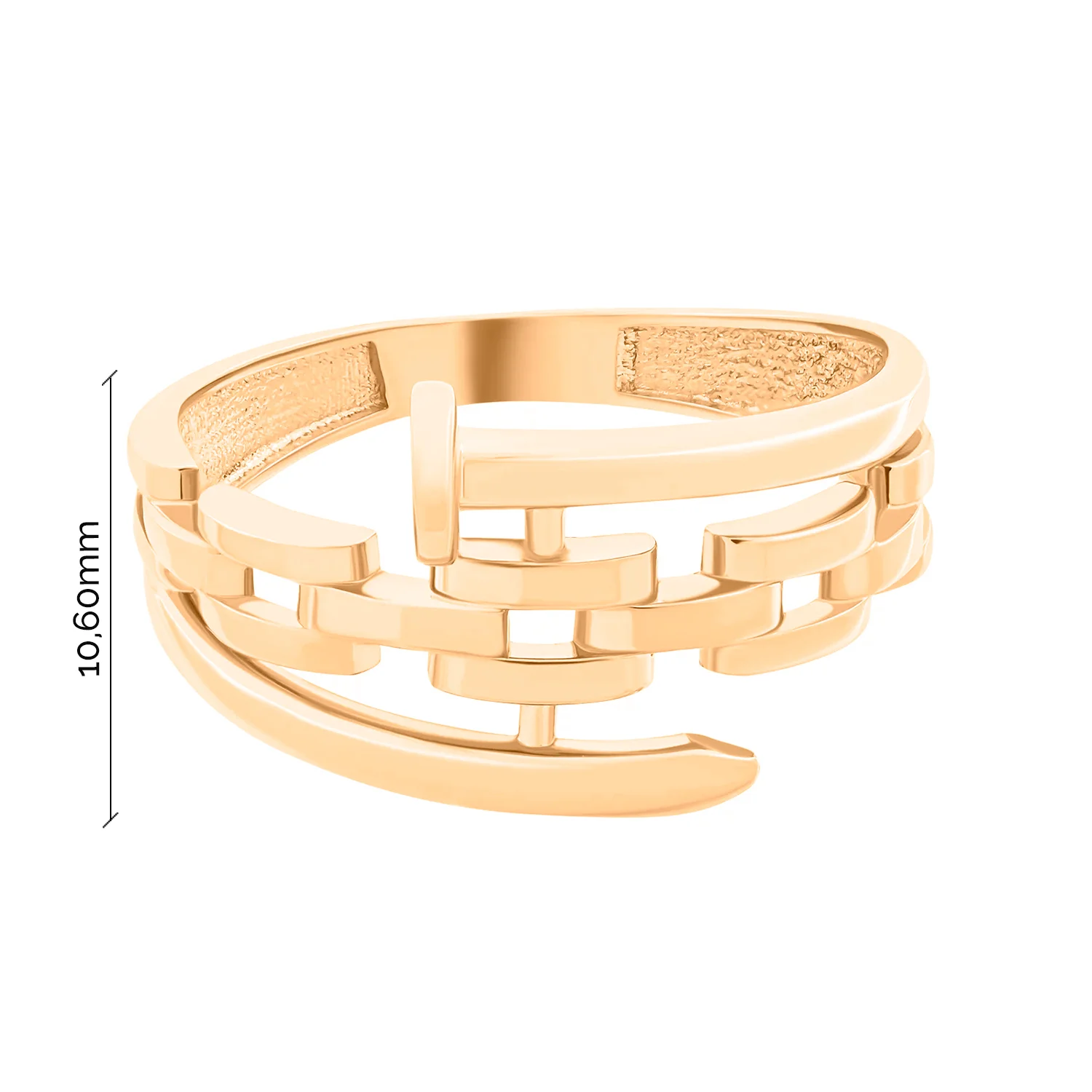 Якщо шукаєте неординарну прикрасу, яка допоможе виділитися з натовпу, ця модель для вас. Каблучка в культовому урбаністичному стилі Cartier — оригінальне втілення незвичайних предметів в ювелірній майстерності. Цвях і ланцюг, обвиті навколо пальця, створять ту саму родзинку, яка відрізнить вас від інших. Каблучка з червоного золота. Сплав 585 проби відрізняється яскравим кольором і теплим блиском, тому не залишиться непоміченим. Вдалу пару такій каблучці складе великий золотий якірний ланцюжок або сережки-цвяшки.